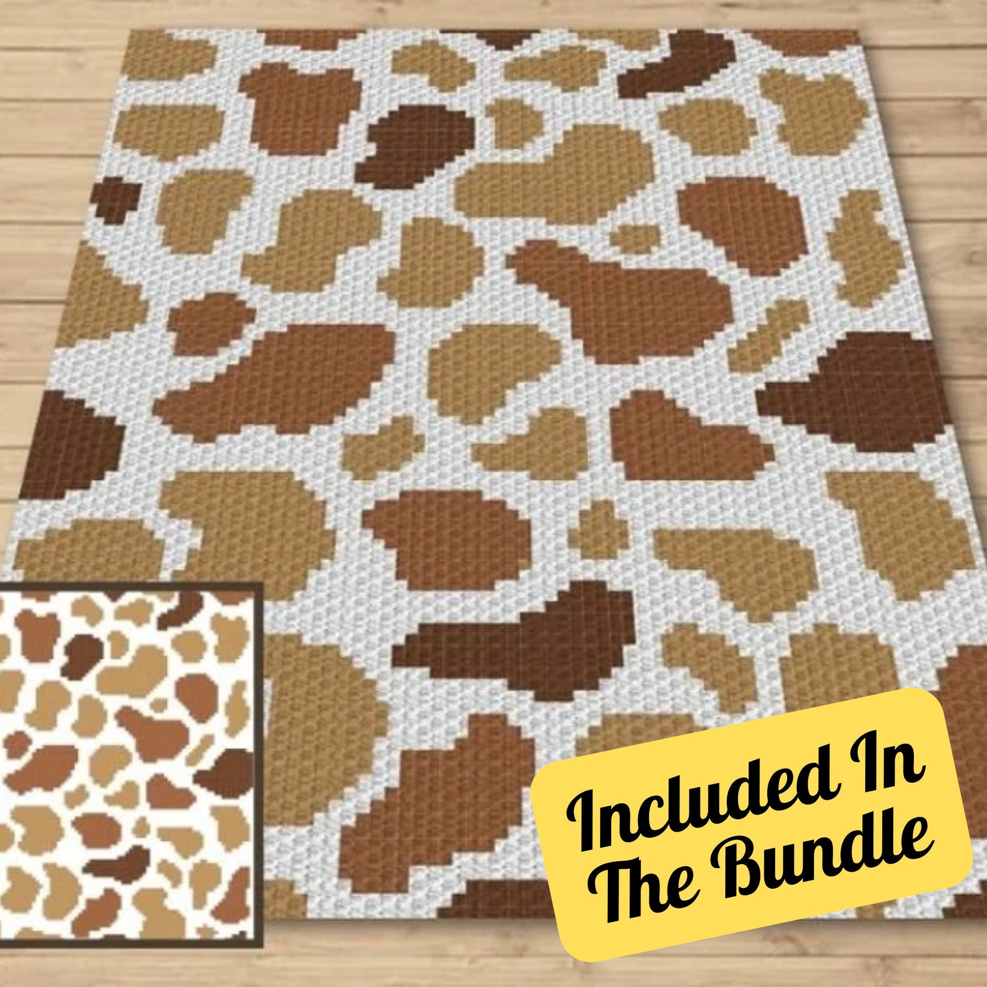 4 Patterns Bundle C2C Cow Print (Written Patterns & Graphs) - Brown Spotted Cow Hide Print Strawberry Cow Print C2C Crochet Blanket Patterns