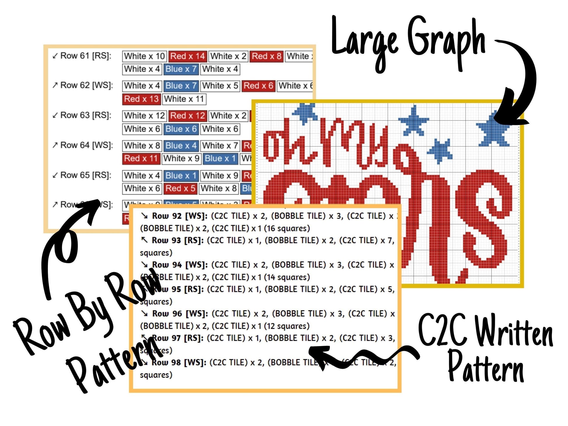 4Th Of July Oh My Stars Graph and Pattern C2C & Tapestry Crochet - Quote C2C Graphgan - Crochet Star Blanket - Patriotic Crochet C2C Blanket