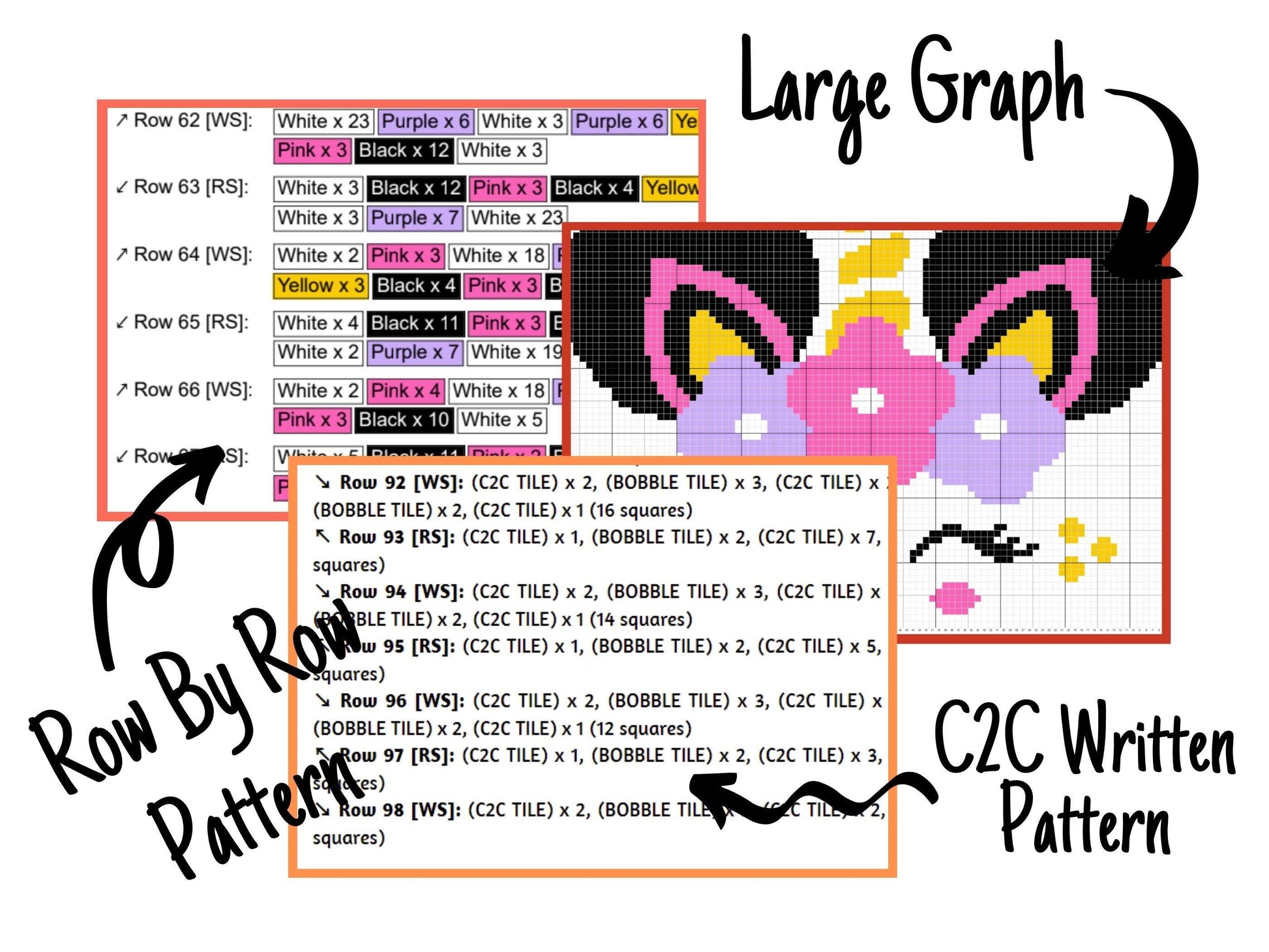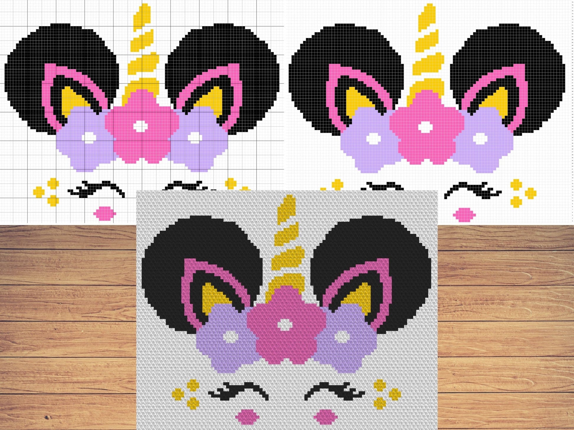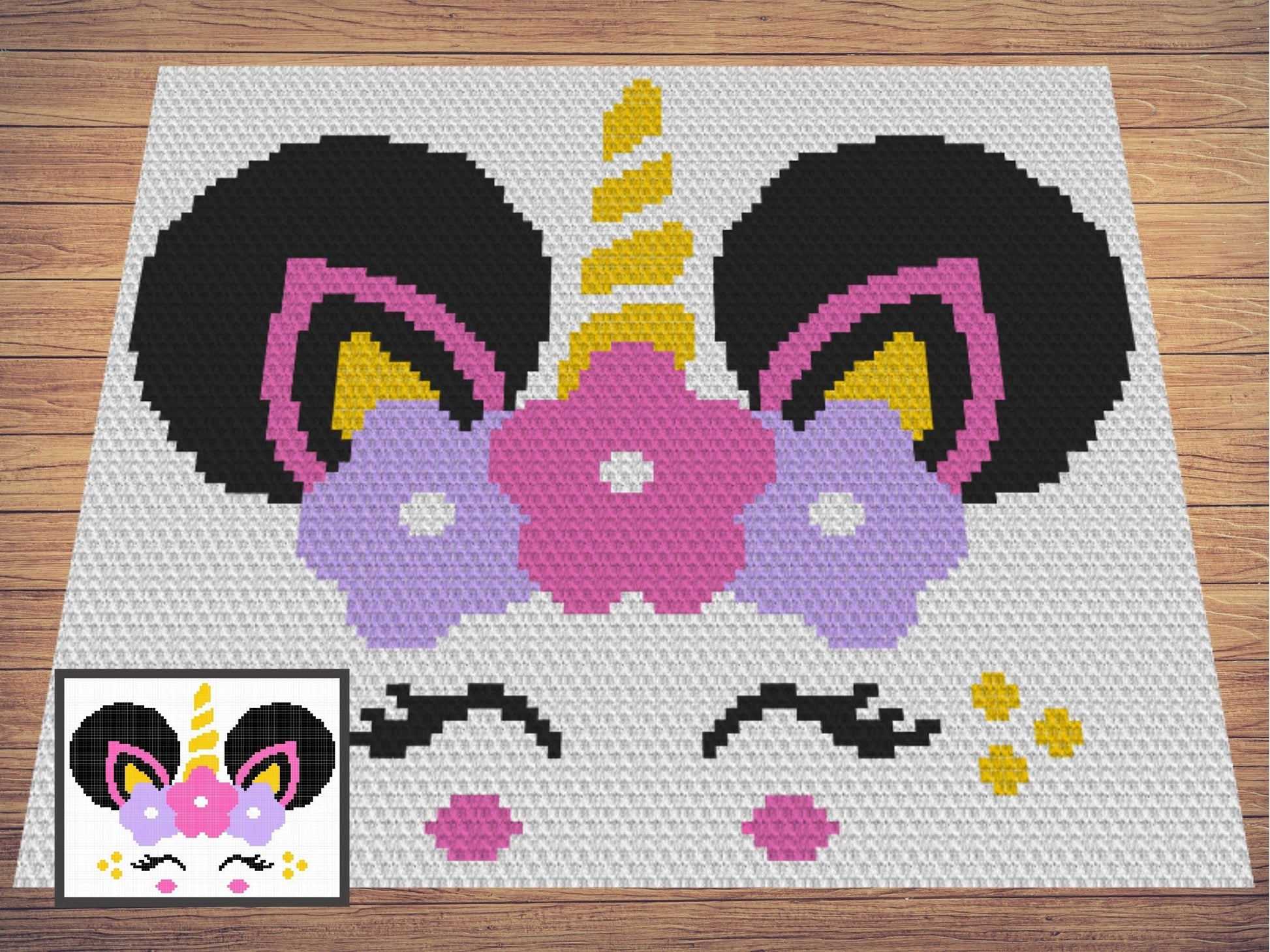 Afro Puff Unicorn Girl Graph and Pattern C2C & Tapestry Crochet - Unicorn C2C Graphgan - Unicorn Flower Crochet - Afro Unicorn Baby Blanket