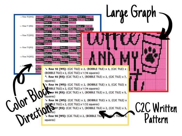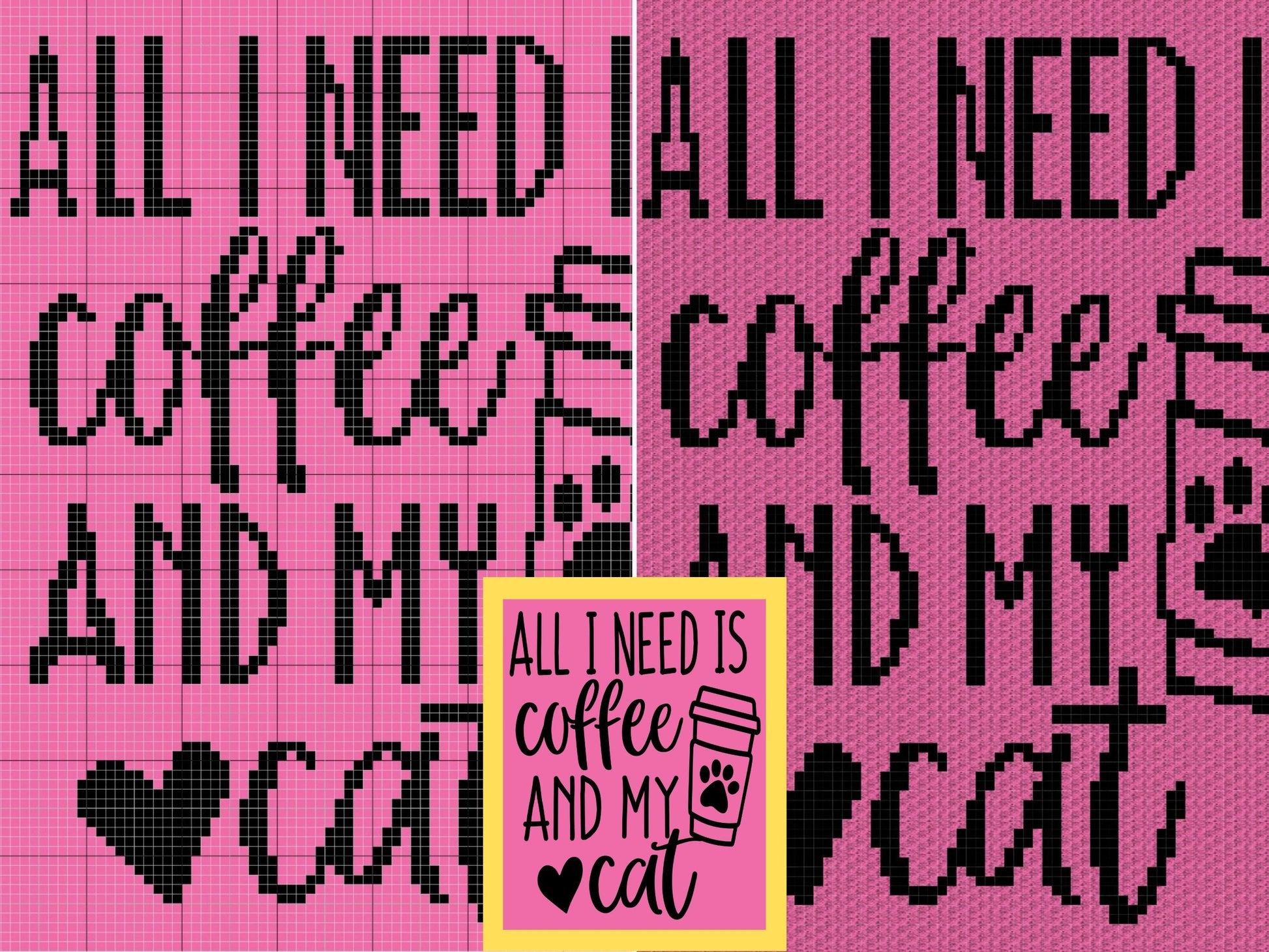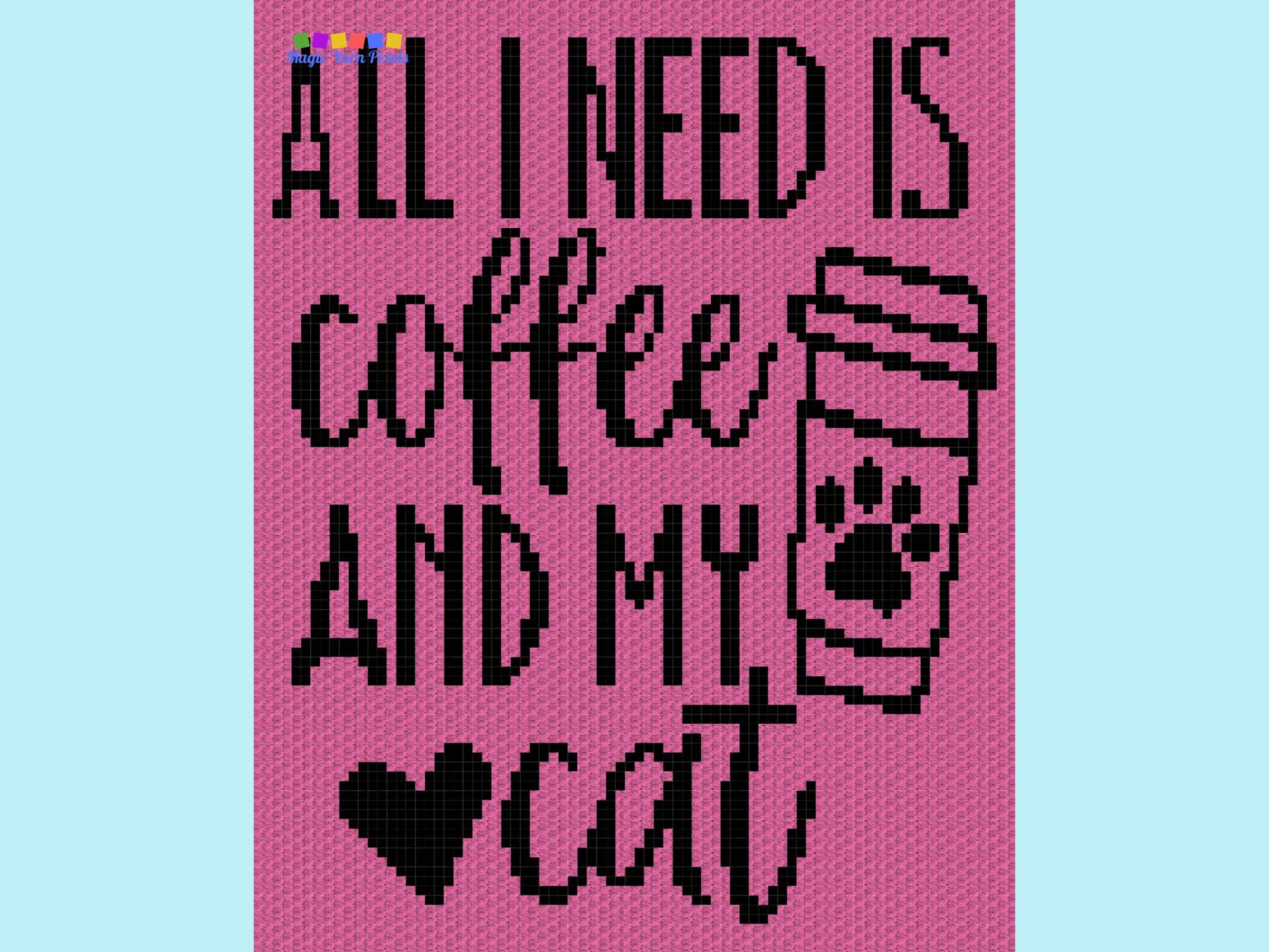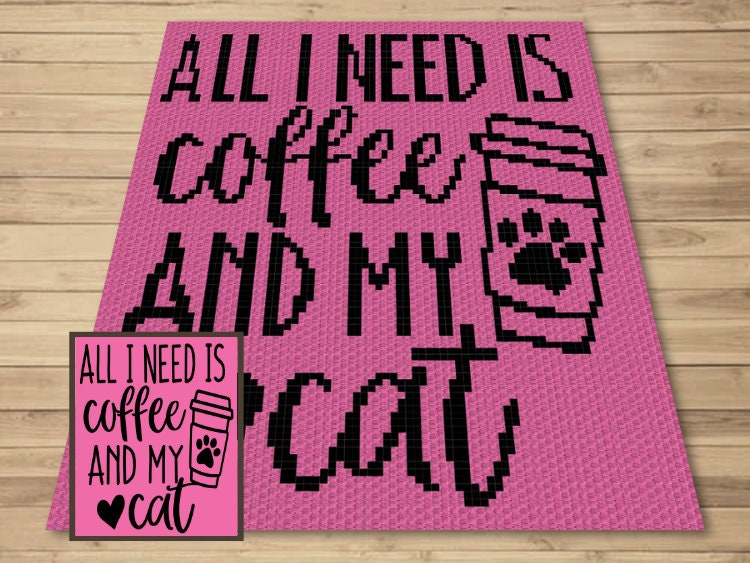 All I Need Is Coffee And My Cat Graph + Written Pattern For C2C & Tapestry Crochet - C2C Crochet Cat Graphgan Quote C2C Cat Crochet Blanket