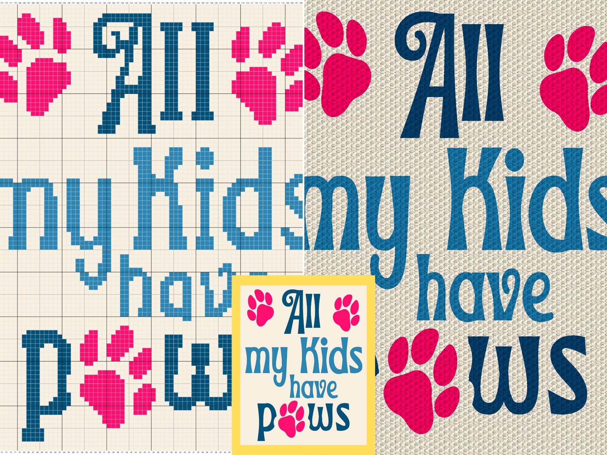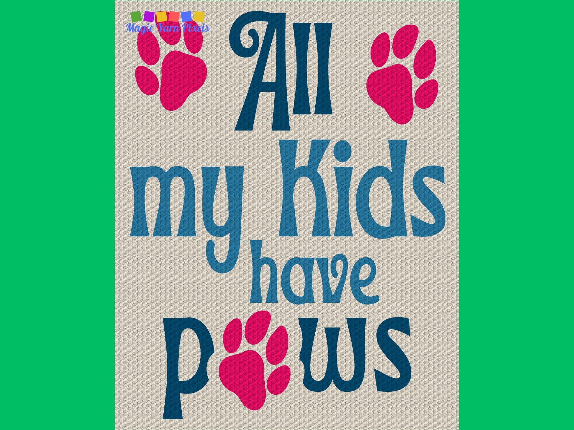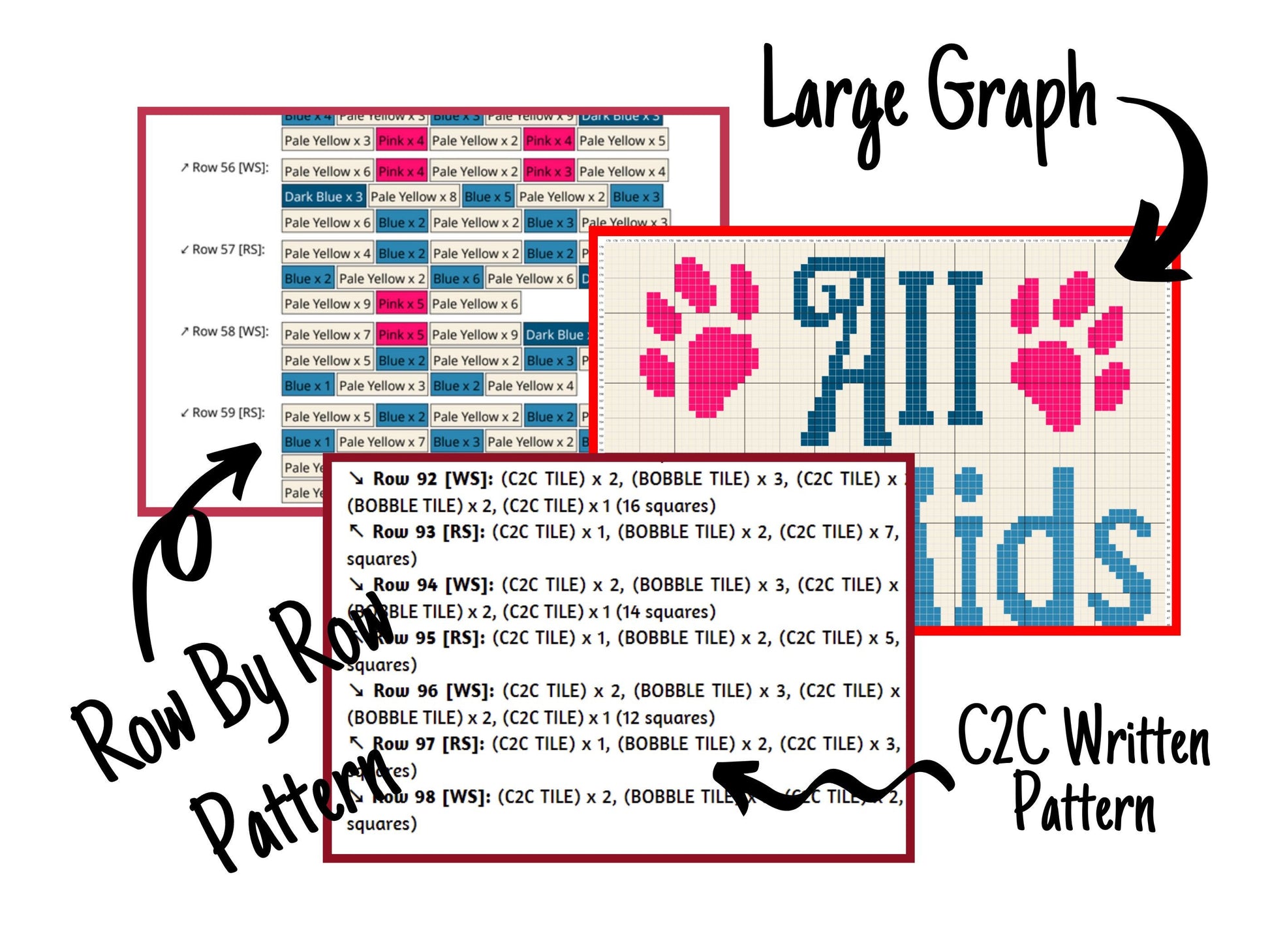 All My Kids Have Paws Graph + Written Pattern For C2C & Tapestry Crochet - Dog Moms C2C Graphgans Dog Lovers Crochet Blankets - C2C Dog Paws