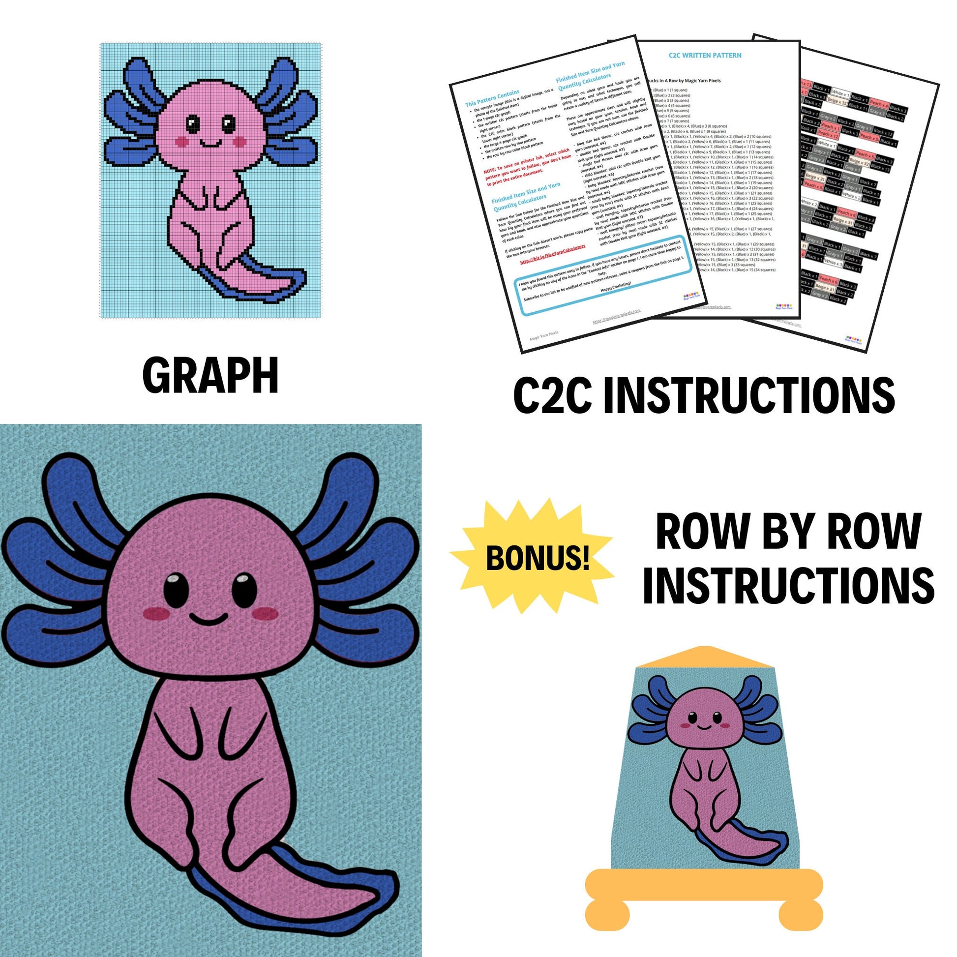 Baby Axolotl Graph & Pattern C2C and Tapestry Crochet | Crochet Axolotl Blanket C2C Axolotl Afghan Axolotl Baby Blanket Baby Gifts Birthday