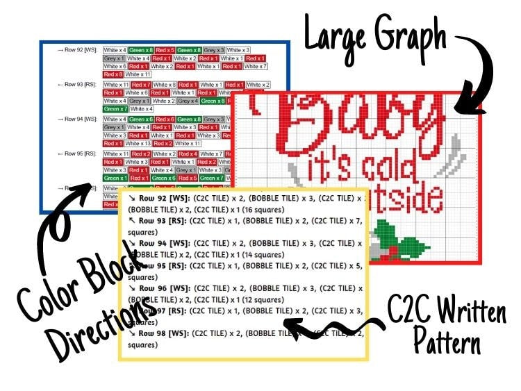 Baby It's Cold Outside Graph + Written Pattern For C2C & Tapestry Crochet - Christmas C2C Pattern - Christmas Crochet Blanket Winter Blanket
