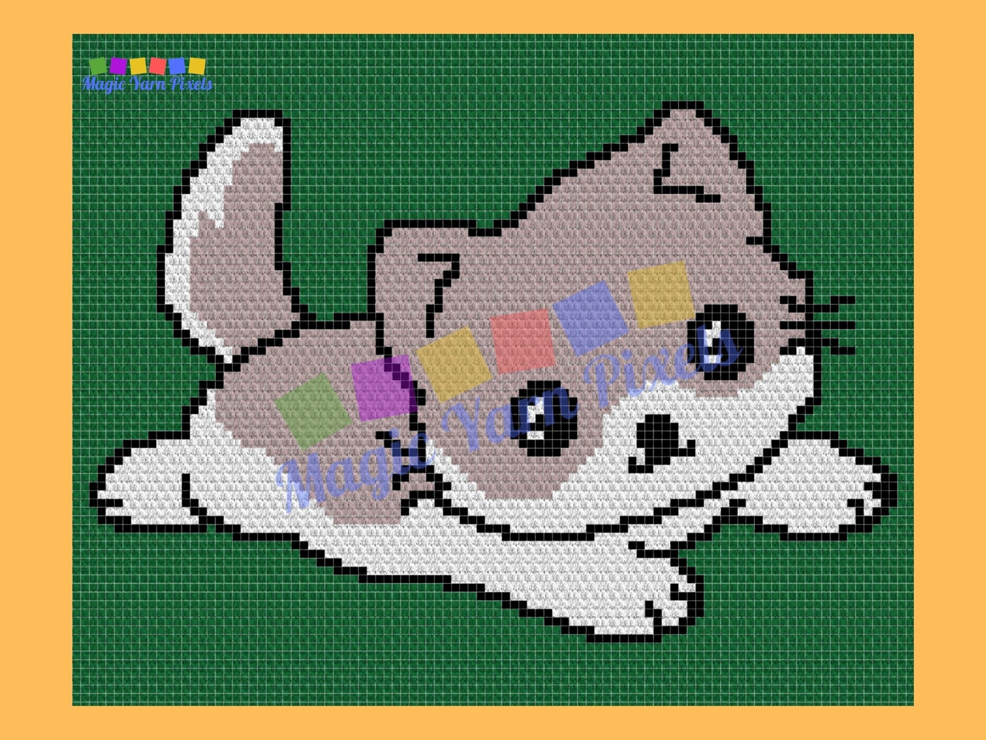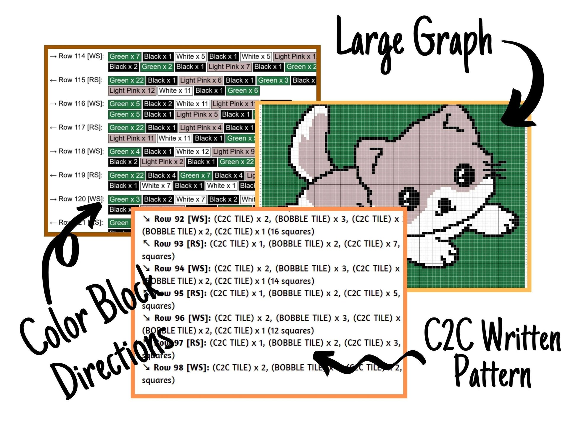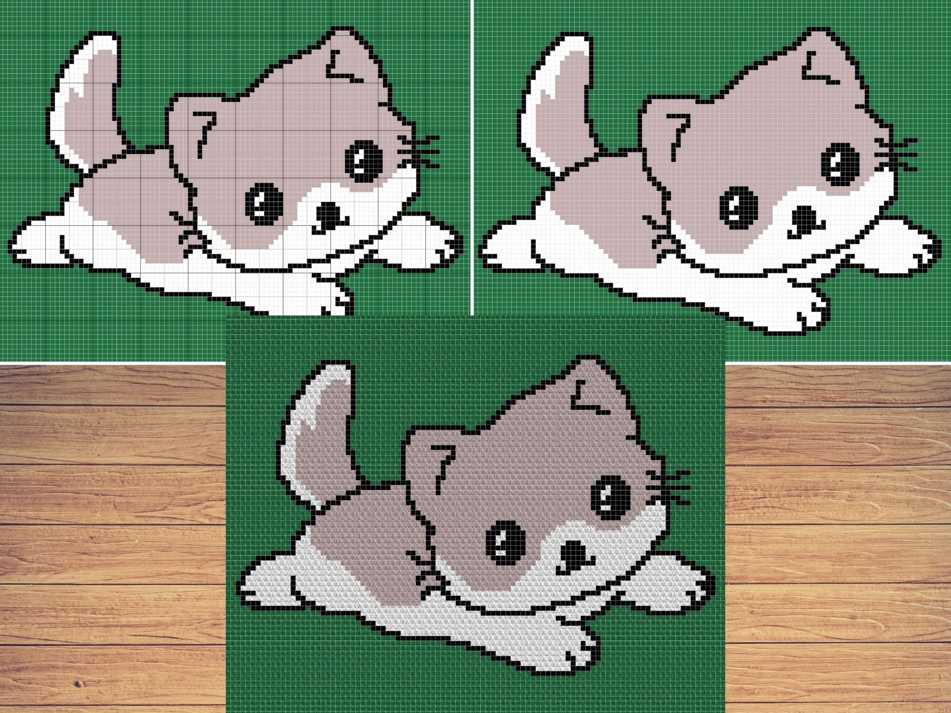 Baby Kitten Graph & Pattern C2C and Tapestry Crochet - Kitty Blanket Graphgan Kitty Cat Crochet Blanket - Crochet Cat C2C Blanket Gift Baby