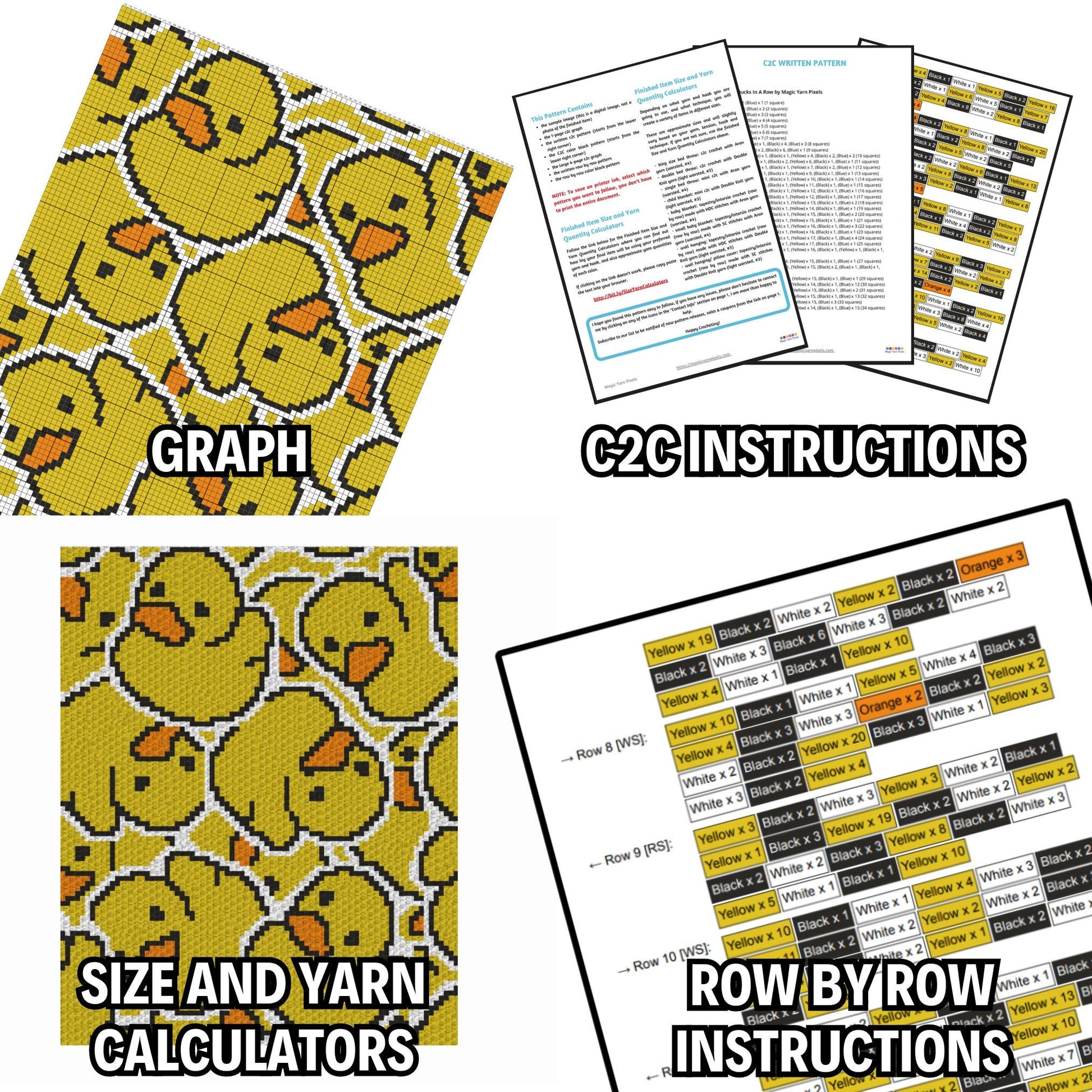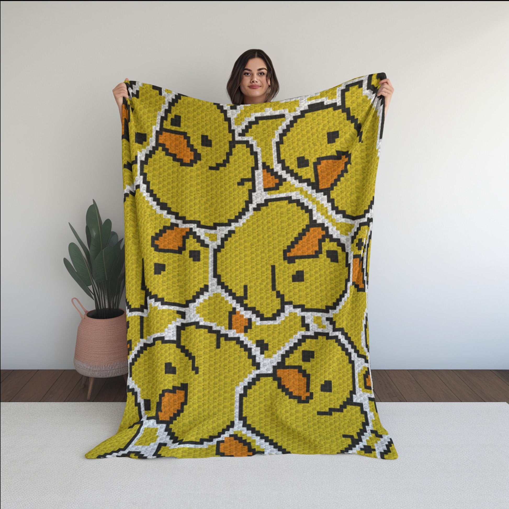 Bathtime Rubber Ducks Crochet Afghan With C2C & Tapestry Written Pattern | Crochet C2C Duck Blanket, Baby Gift Crochet Blanket C2C Ducklings