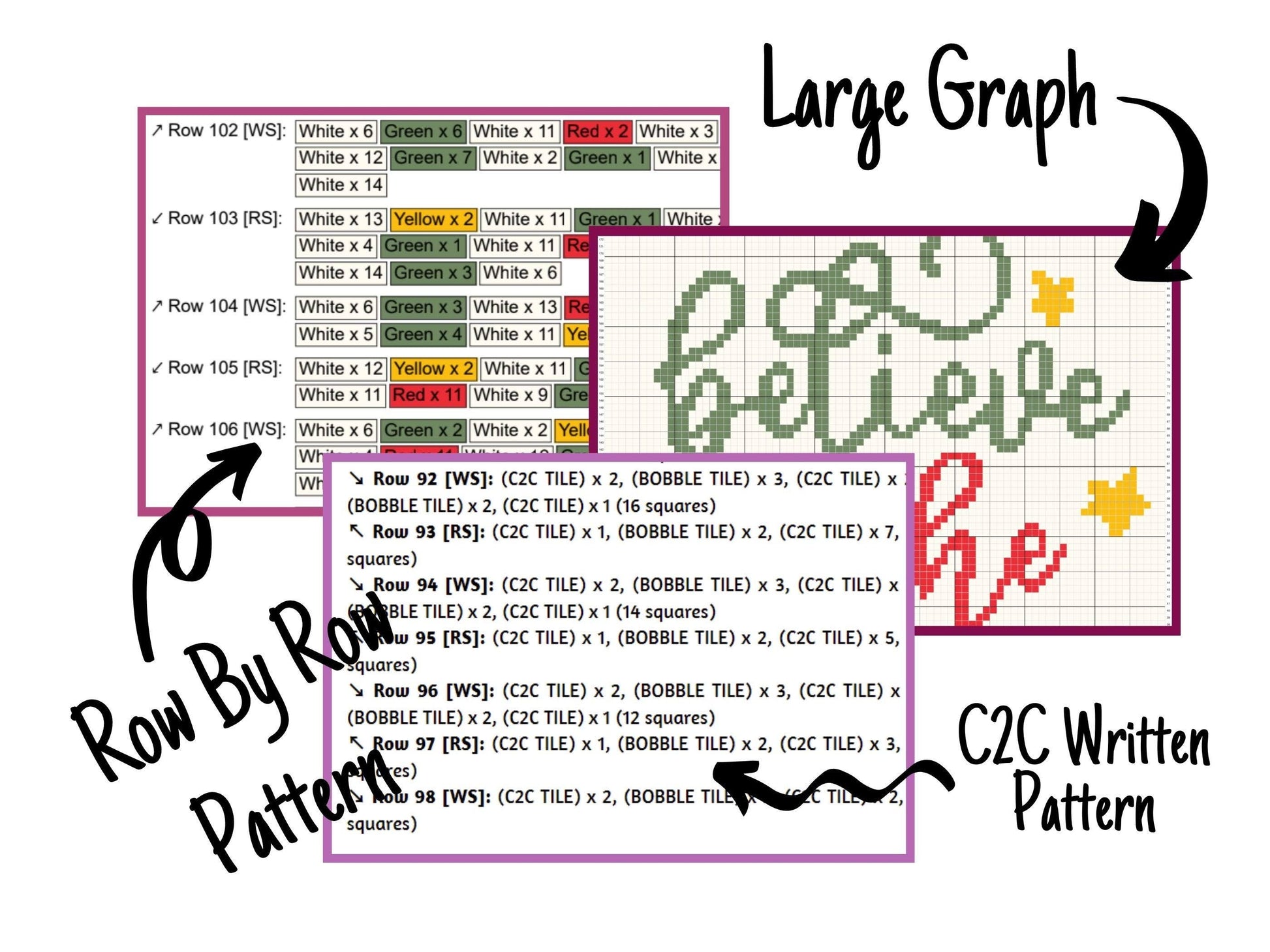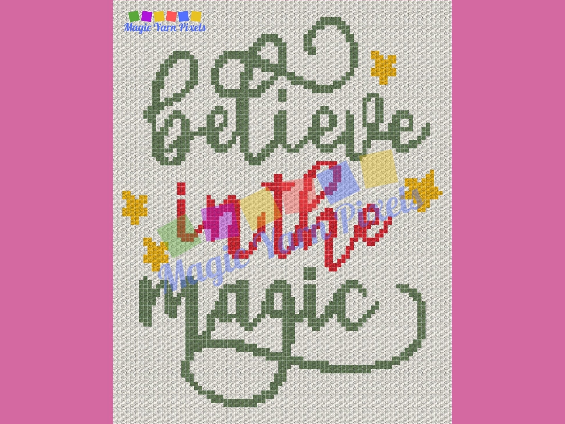 Believe In The Magic Graph and Pattern C2C & Tapestry Crochet- Quote Graphgan Word Blanket Crochet - Inspirational Gifts C2C Message Blanket