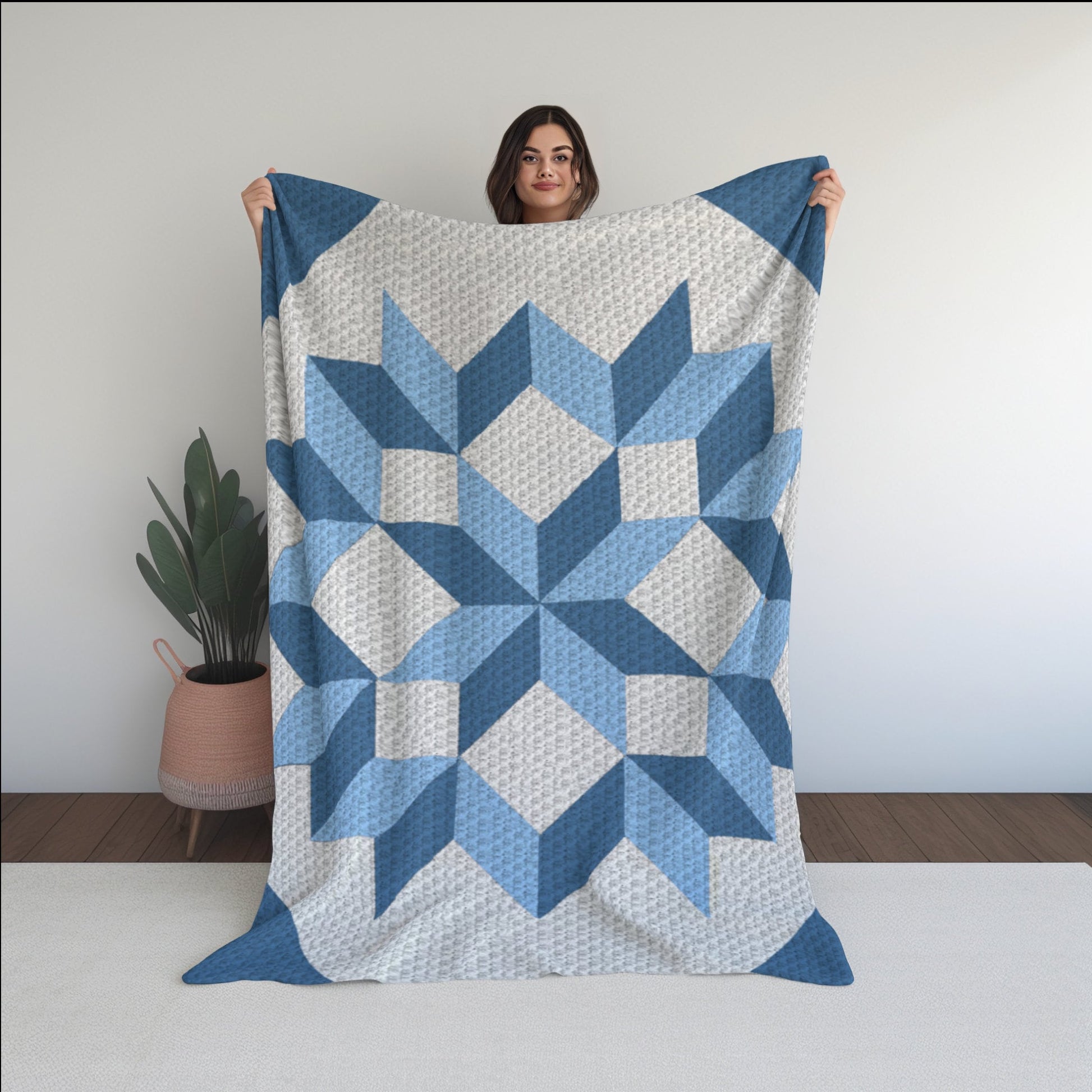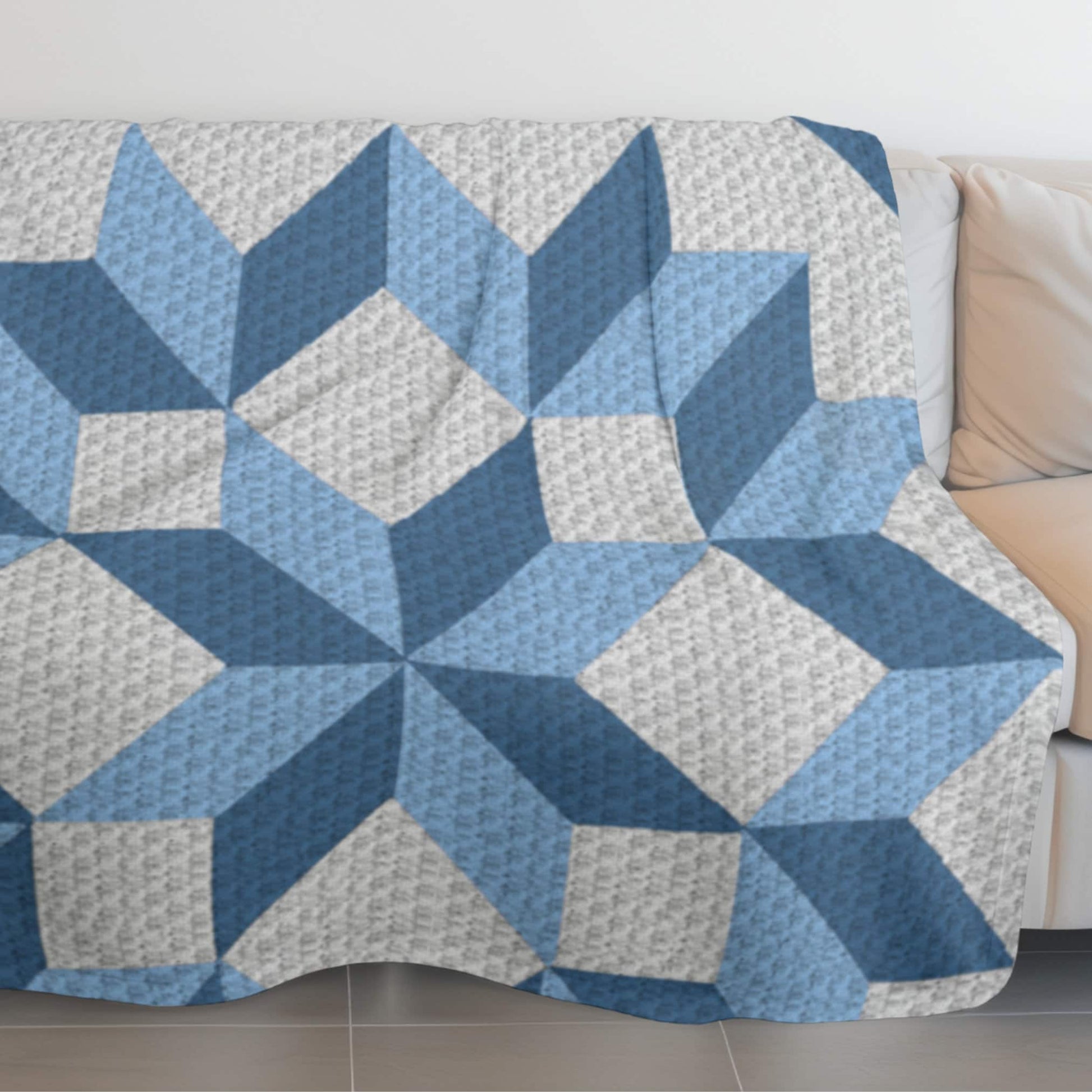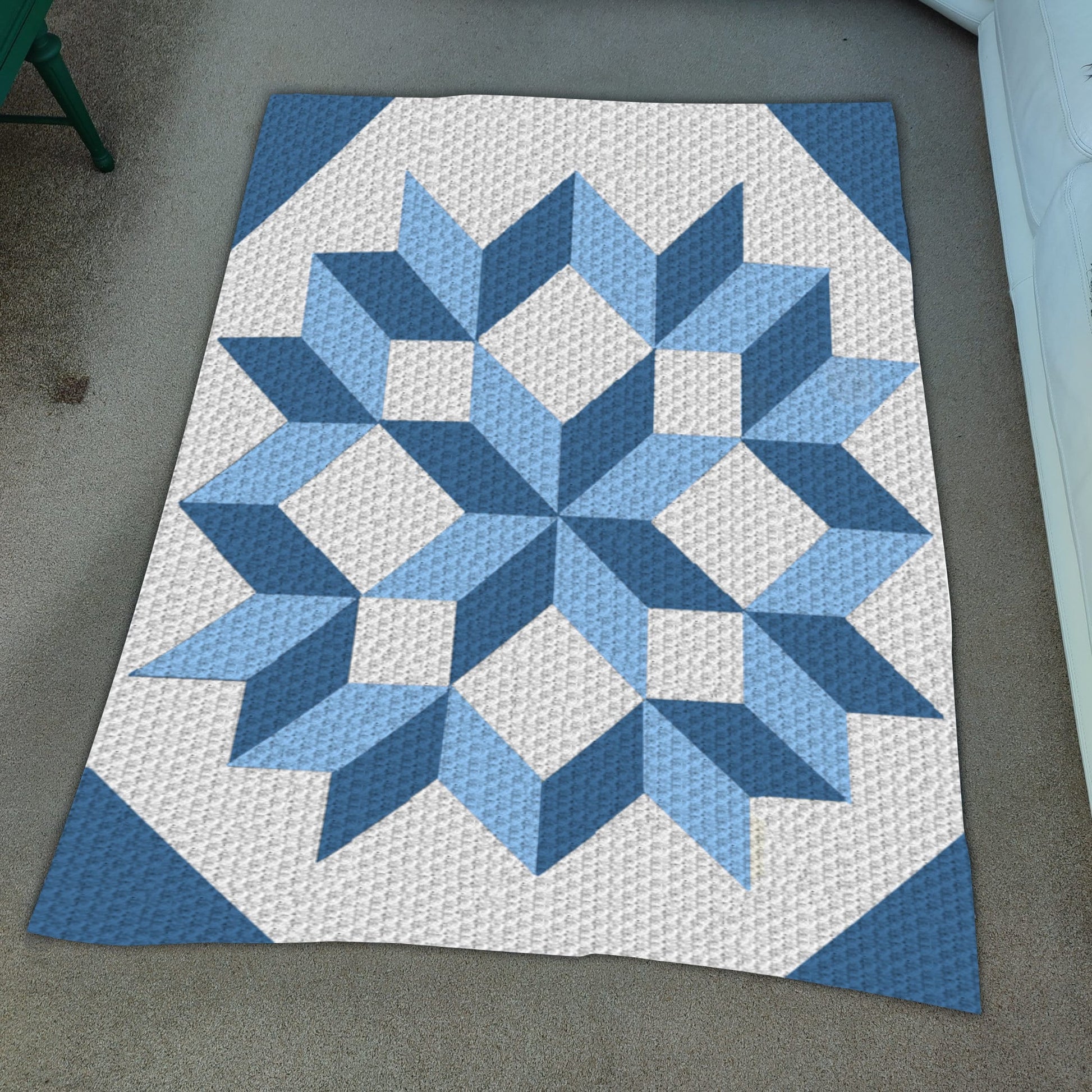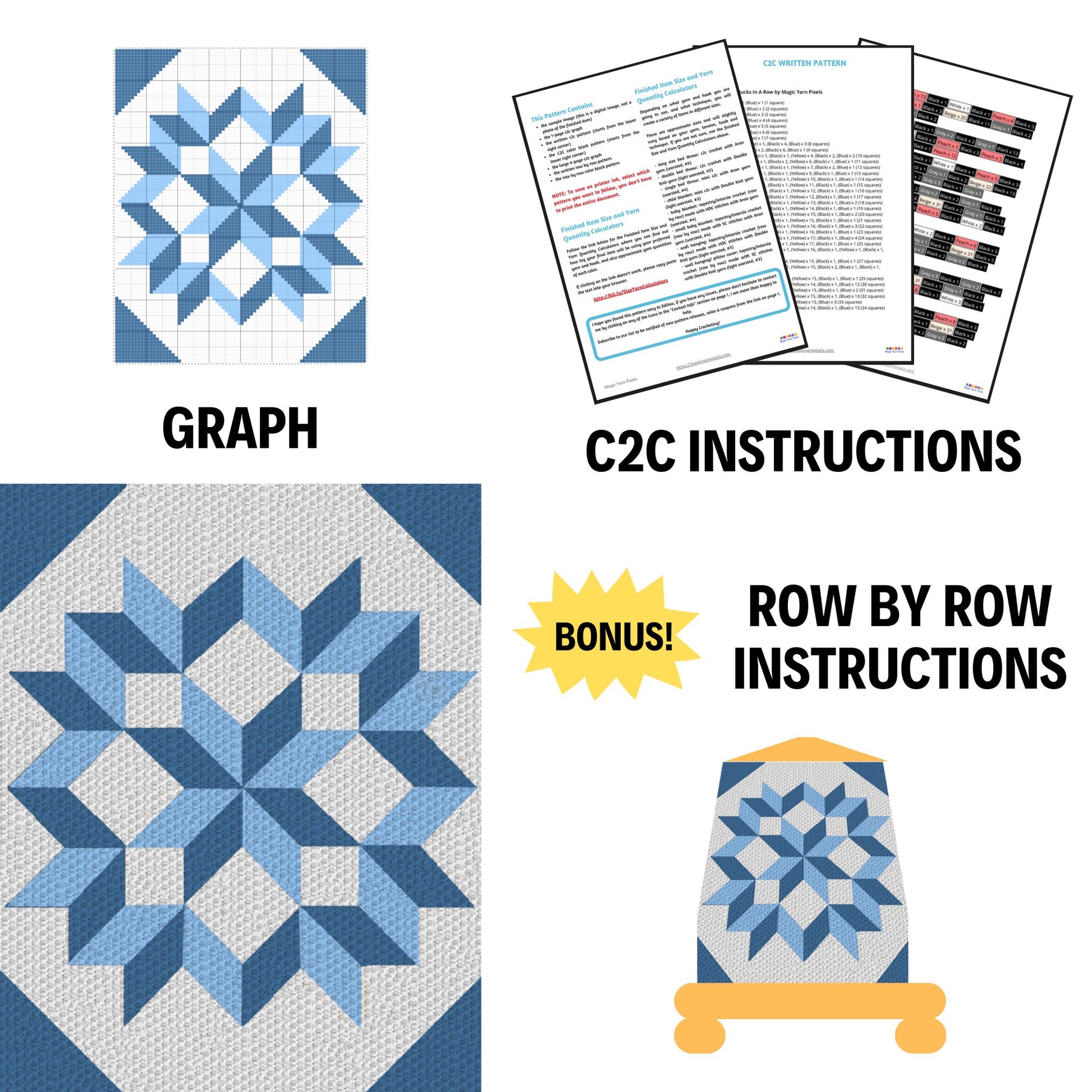 Blue Carpenter Wheel Print Graph + Pattern C2C Tapestry Crochet | C2C Crochet Geometrical Afghan, C2C Carpenter Wheel Baby Blanket C2C Graph