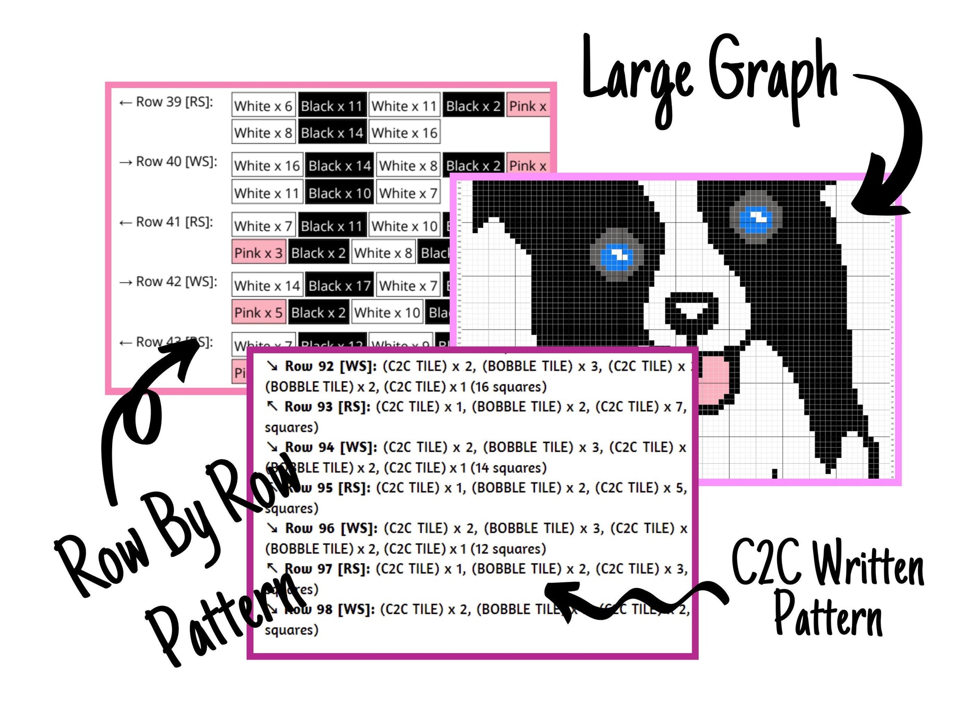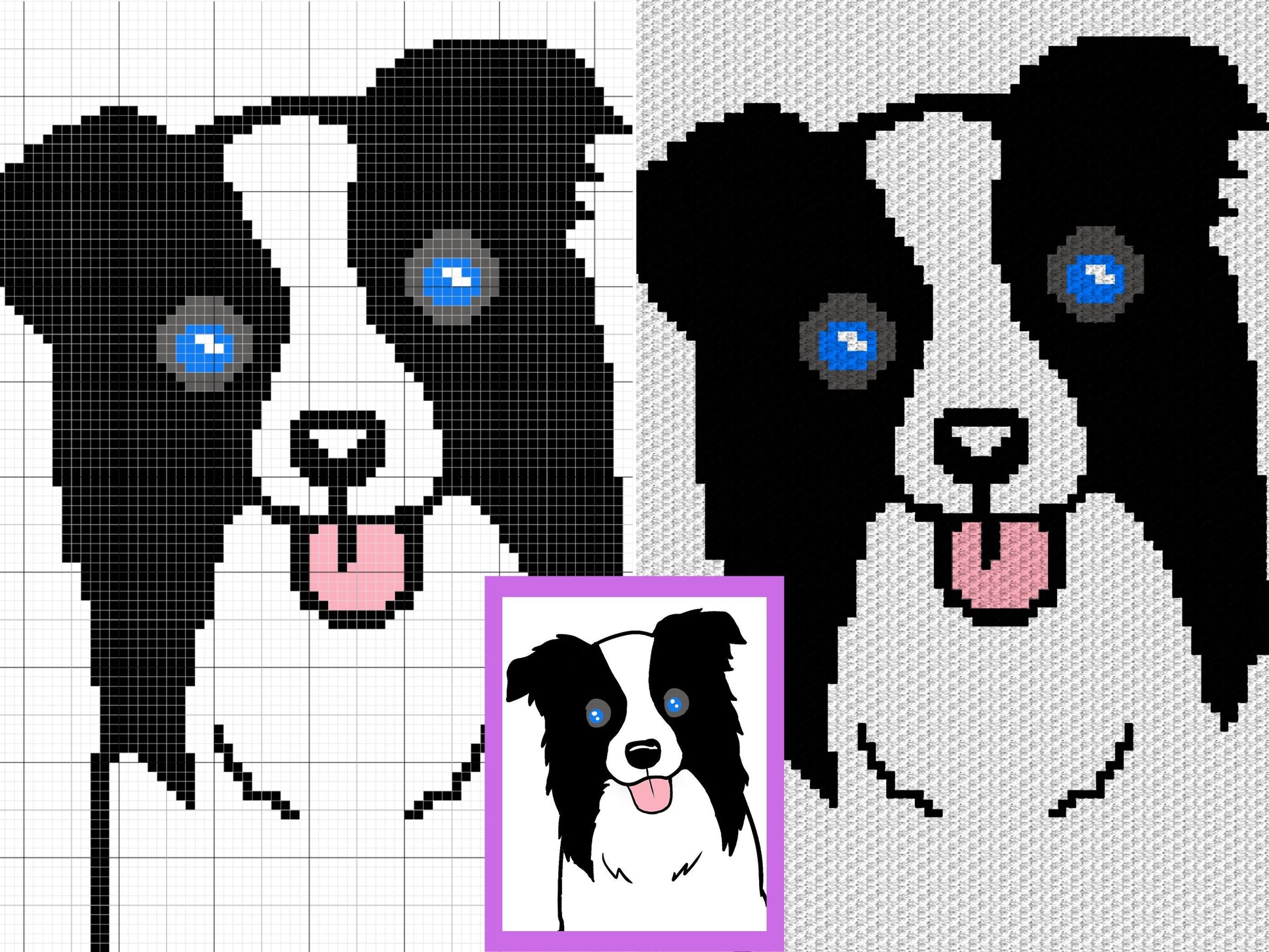 Border Collie Graph + Written Pattern For C2C & Tapestry Crochet - Crochet Border Collie C2C Graphs - Dog Crochet Blankets - C2C Dog Afghans