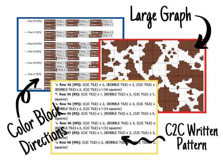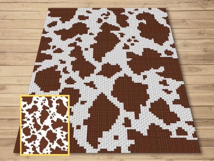 Brown Spotted Cow Hide Graph + Written Pattern For C2C & Tapestry Crochet - C2C Graph Cow Pattern - Crochet Cow Blanket Animal Baby Blanket