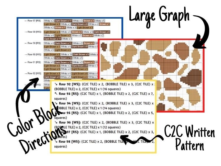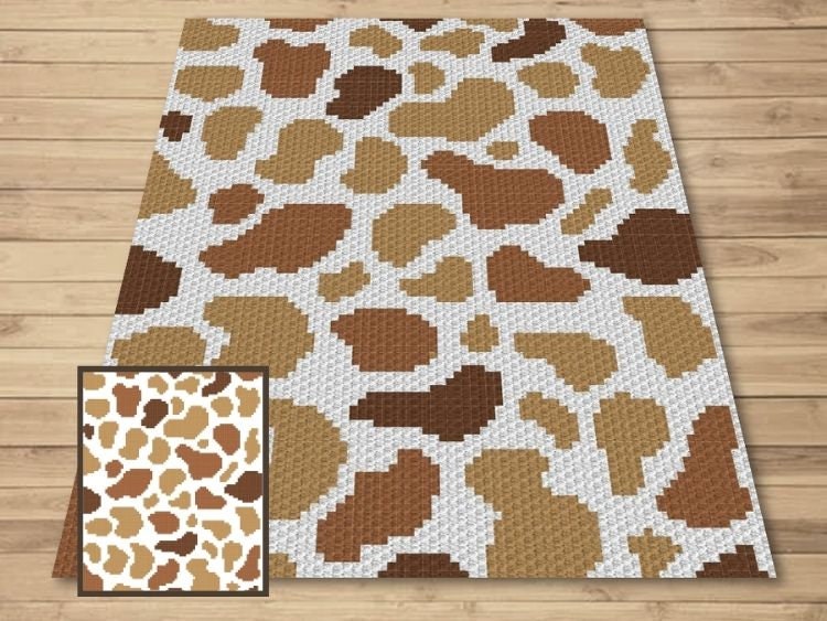 Brown Spotted Cow Print Graph + Written Pattern For C2C & Tapestry Crochet - Crochet Cow Pattern - Crochet Cow Blanket Animal Print blanket