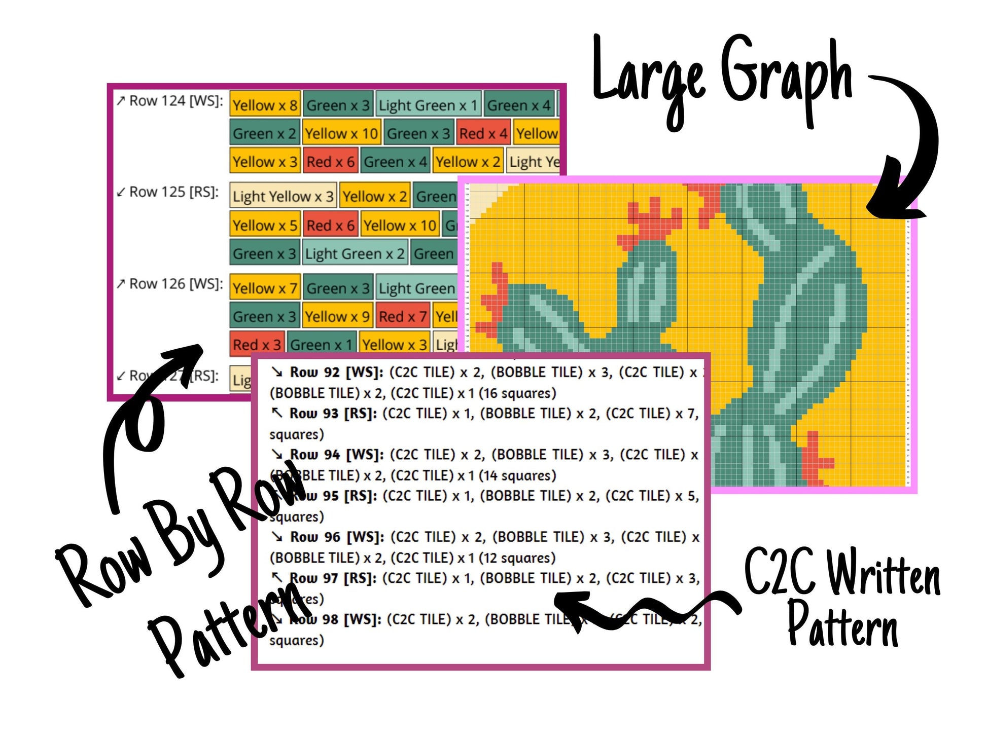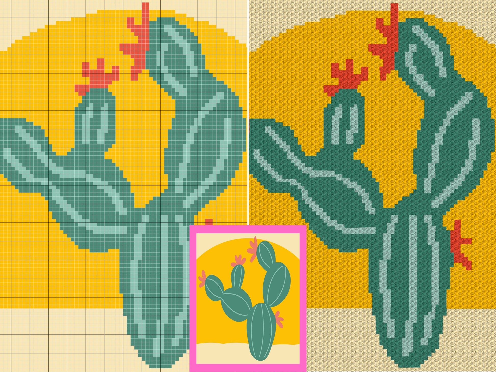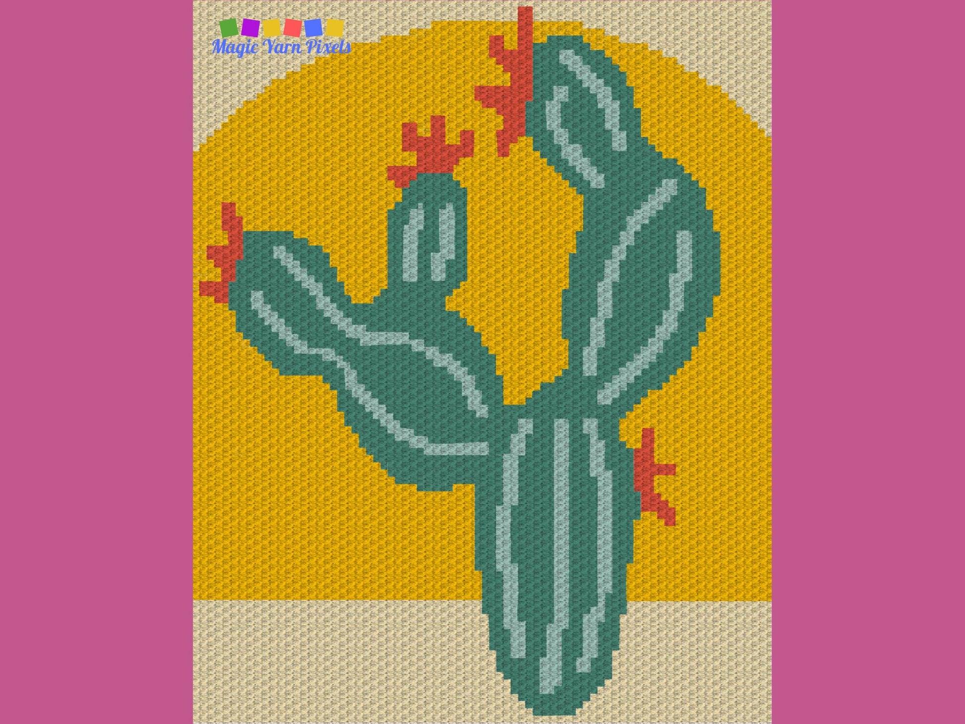 Cactus In The Sun Graph and Pattern C2C & Tapestry Crochet - C2C Cactus Graphgans - Crochet Cactus Blanket C2C Floral Baby Blankets Patterns