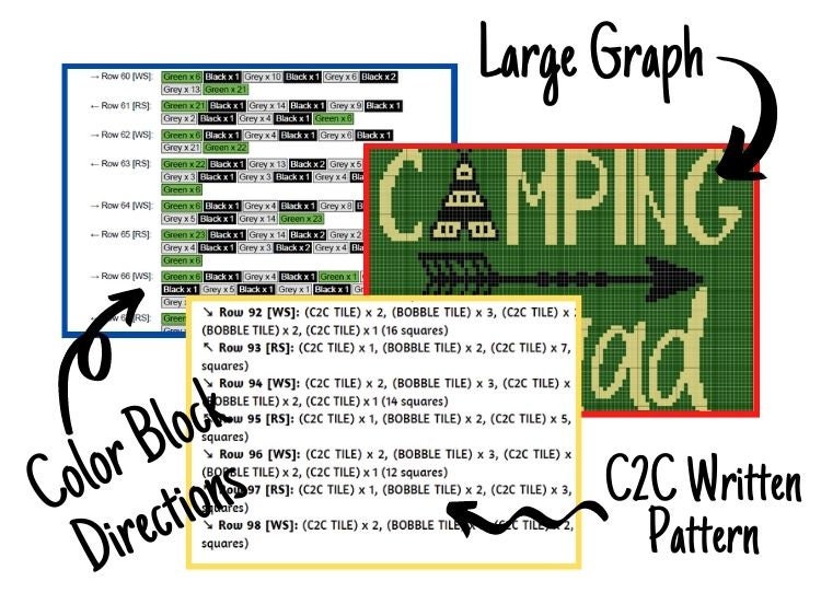 Camping Squad Graph + Written Pattern For C2C & Tapestry Crochet - C2C Camper Graph - Crochet Camping Blanket - Picnic Blanket Camping Gift