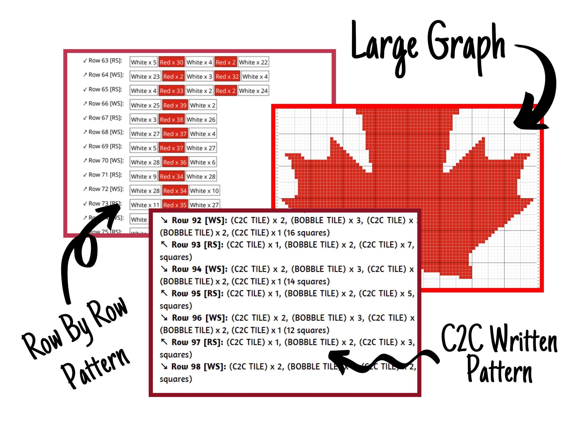 Canada Maple Flag Graph + Written Pattern For C2C & Tapestry Crochet - Canada C2C Crochet Patterns - Canada Crochet Blankets - Flag Blankets