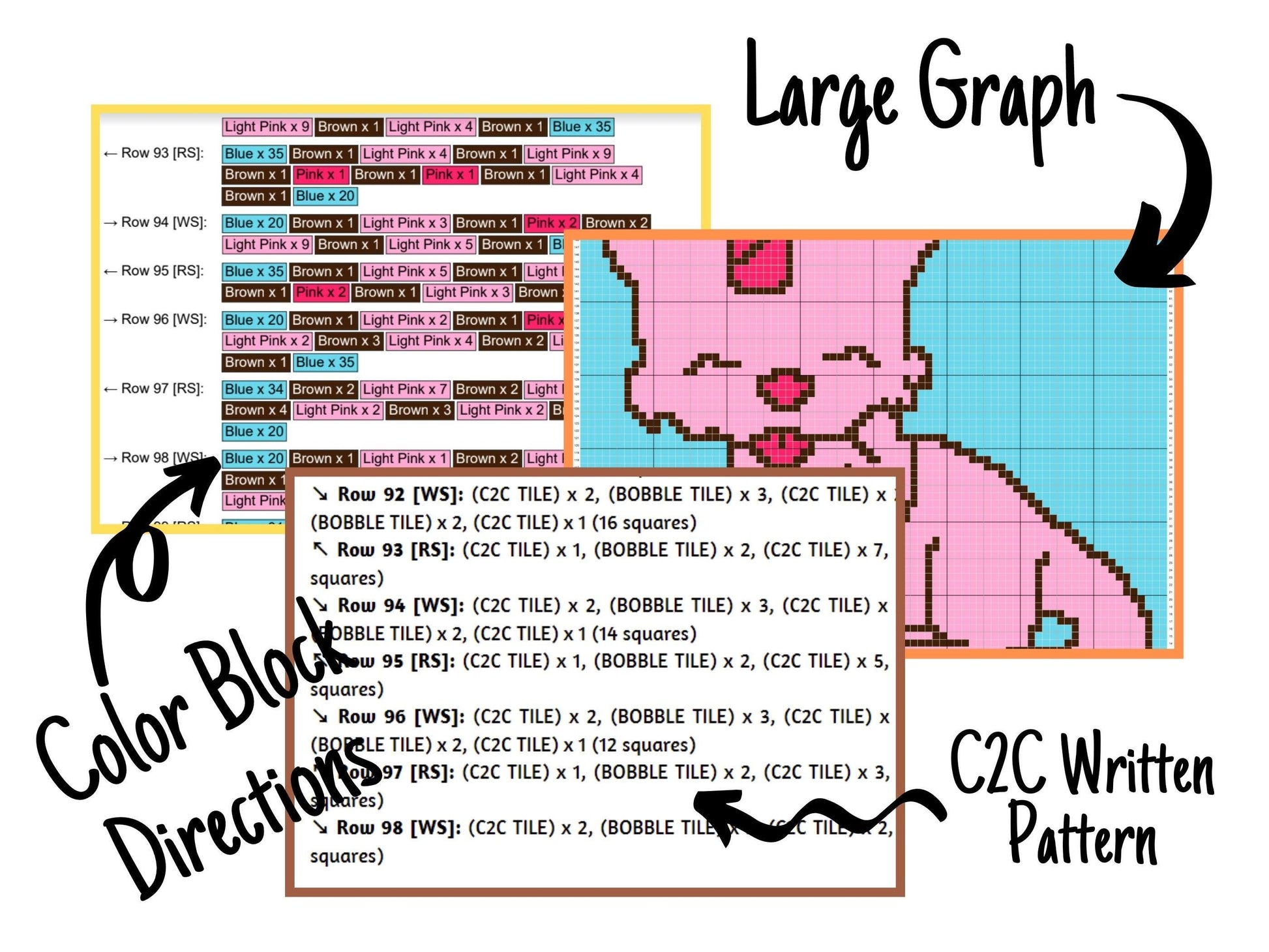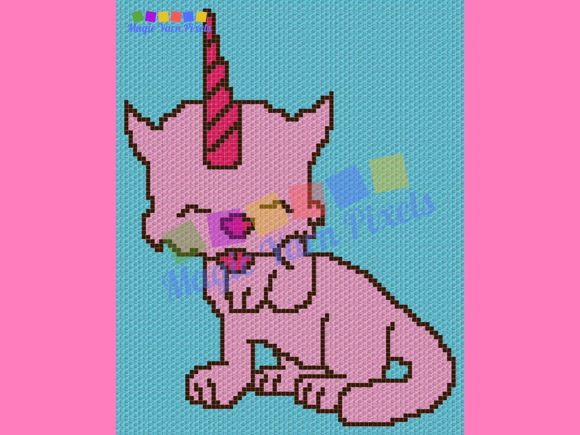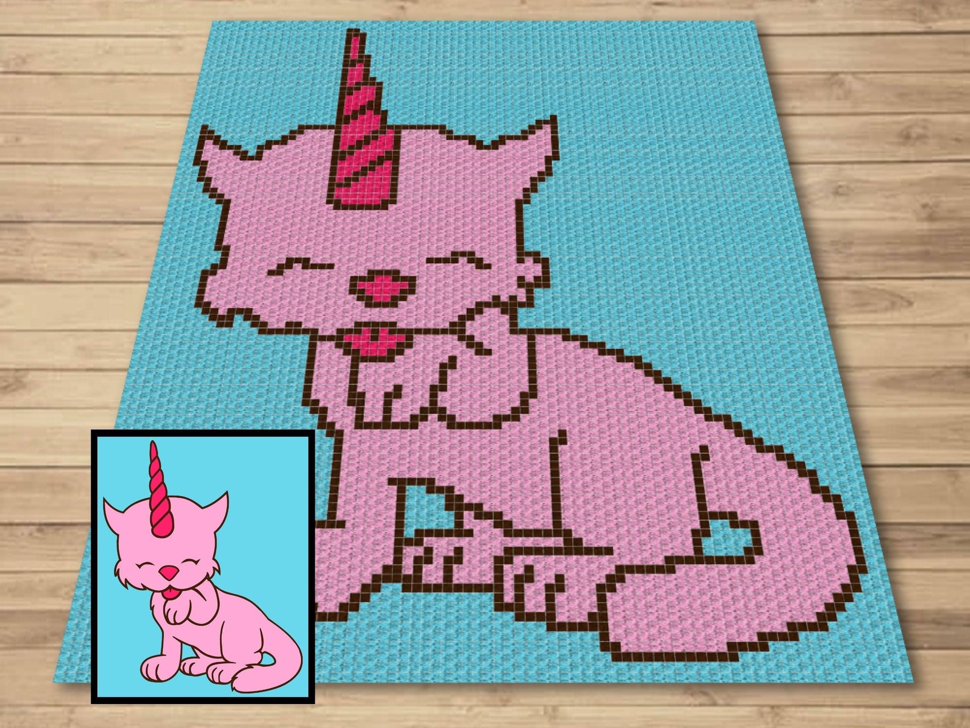 Caticorn Cat Unicorn Graph & Pattern C2C and Tapestry Crochet - Crochet Unicat Graphgan Cute Cat Crochet Blanket - C2C Cat Blanket Gift Baby