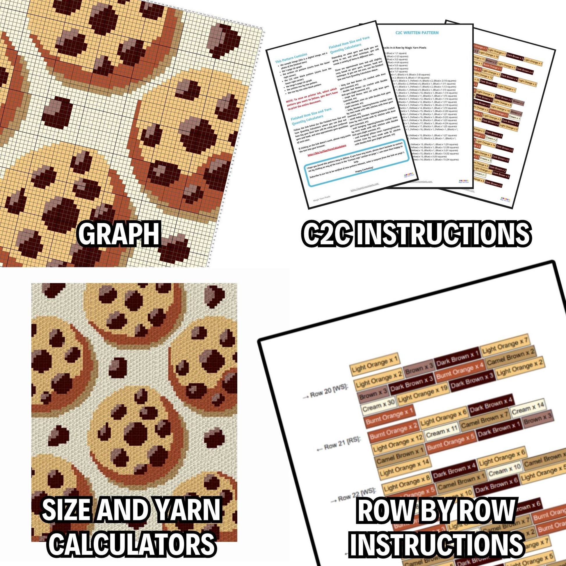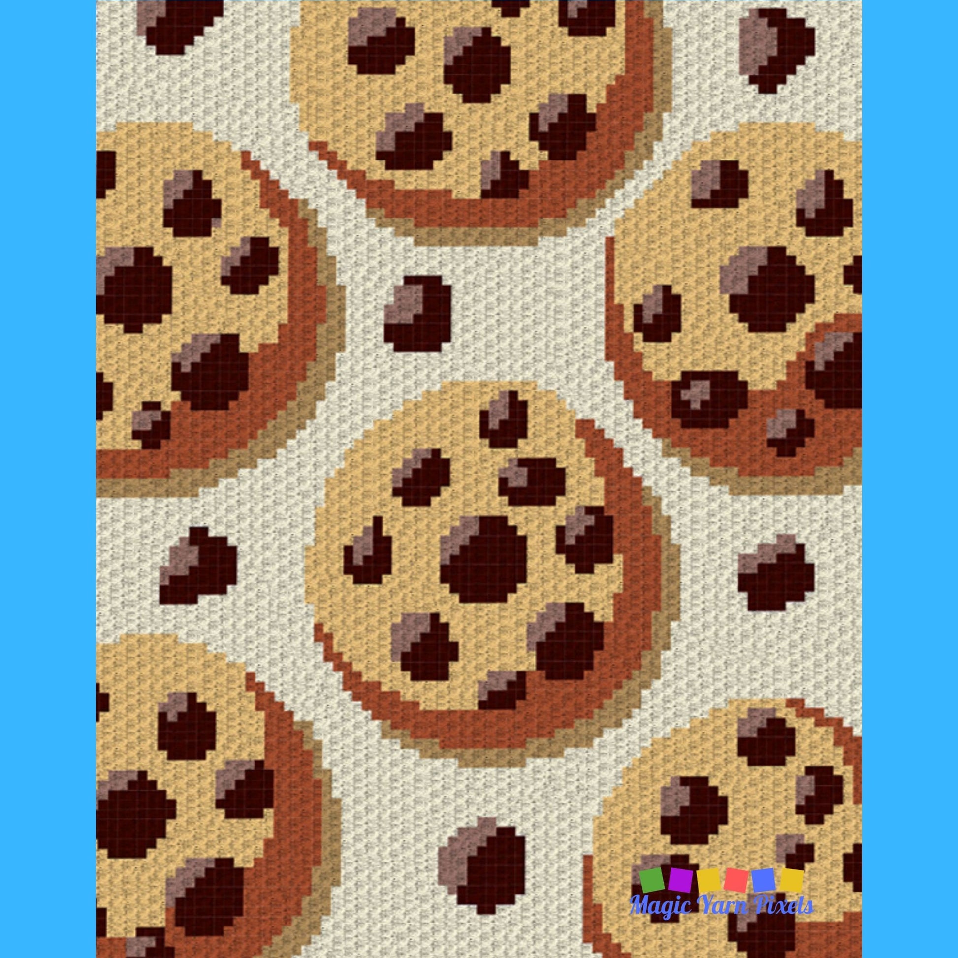 Chocolate Chip Cookie Blanket Graph + Written Pattern | Crochet Blanket C2C Cookie Patterns Gift For Bakers Cookie Graph Crochet Afghan Gift