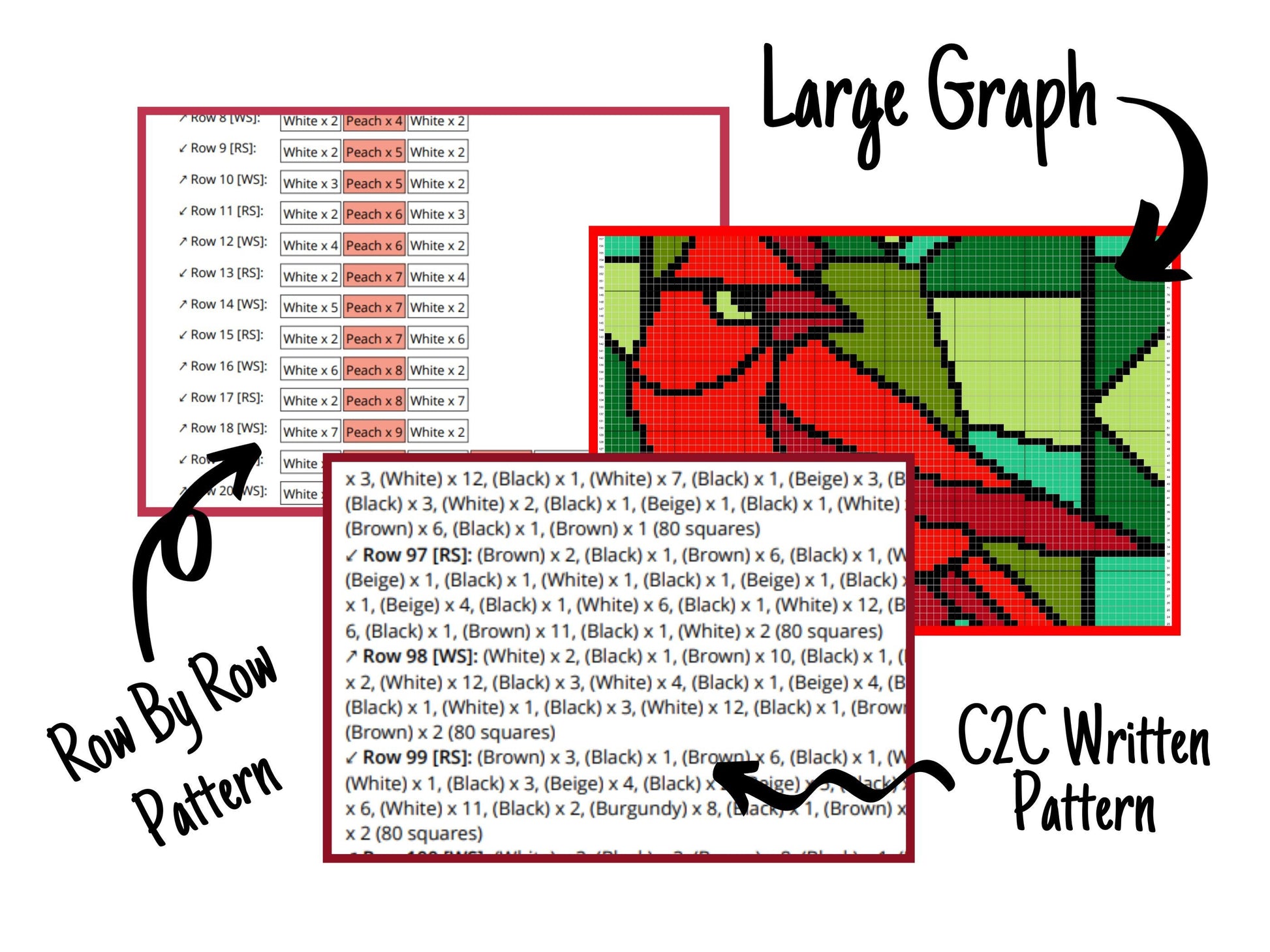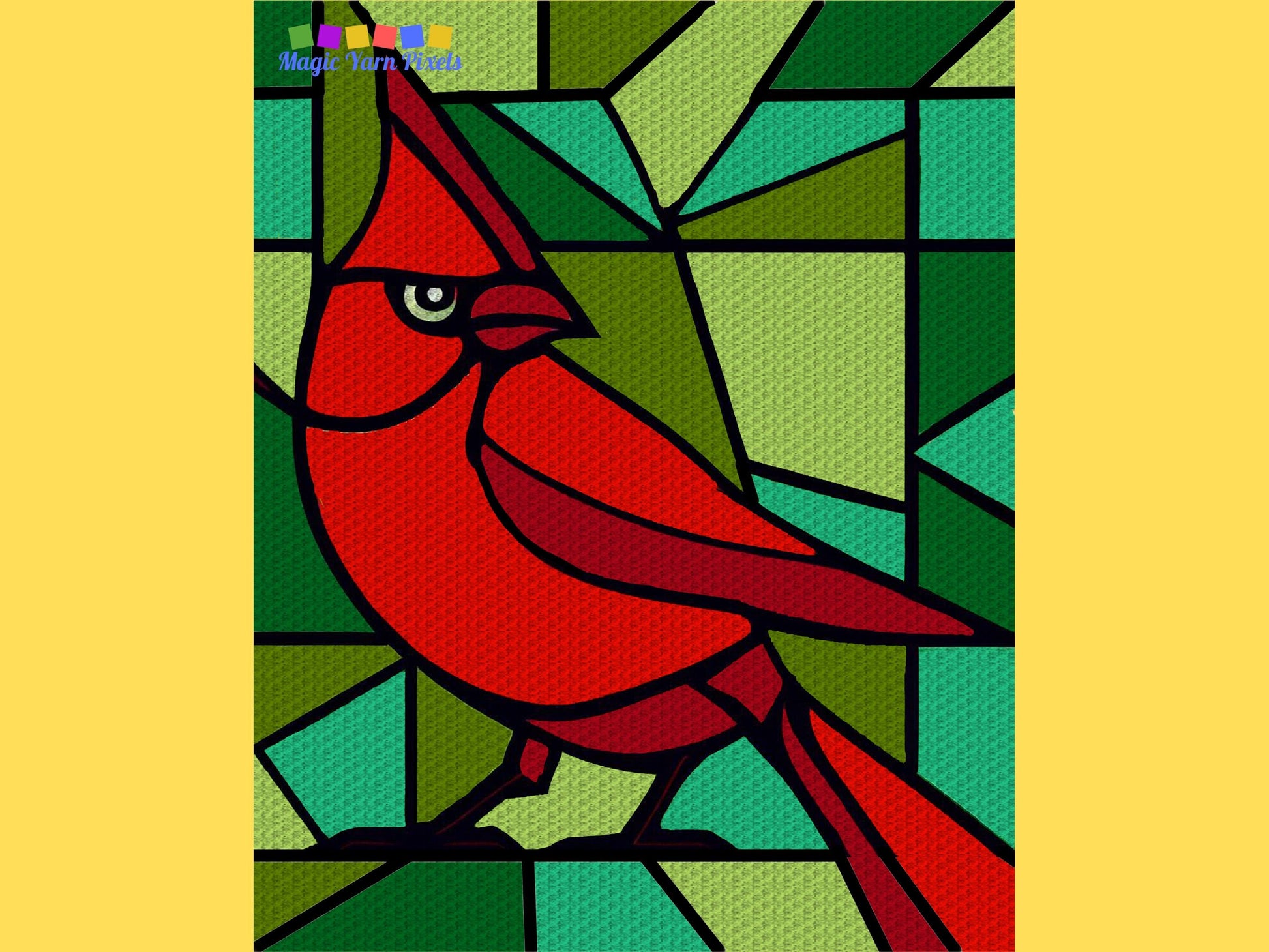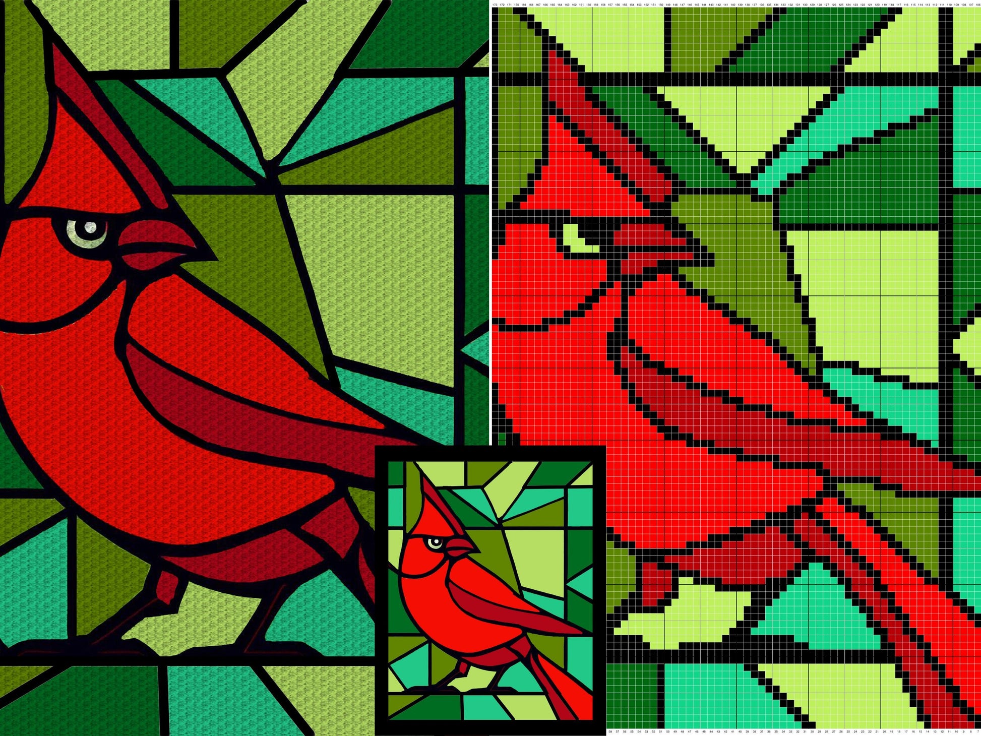 Christmas Cardinal Stained Glass Graph + Pattern C2C & Tapestry Crochet - Cardinal C2C Graphgan - Crochet Bird Chart - C2C Cardinal Blanket