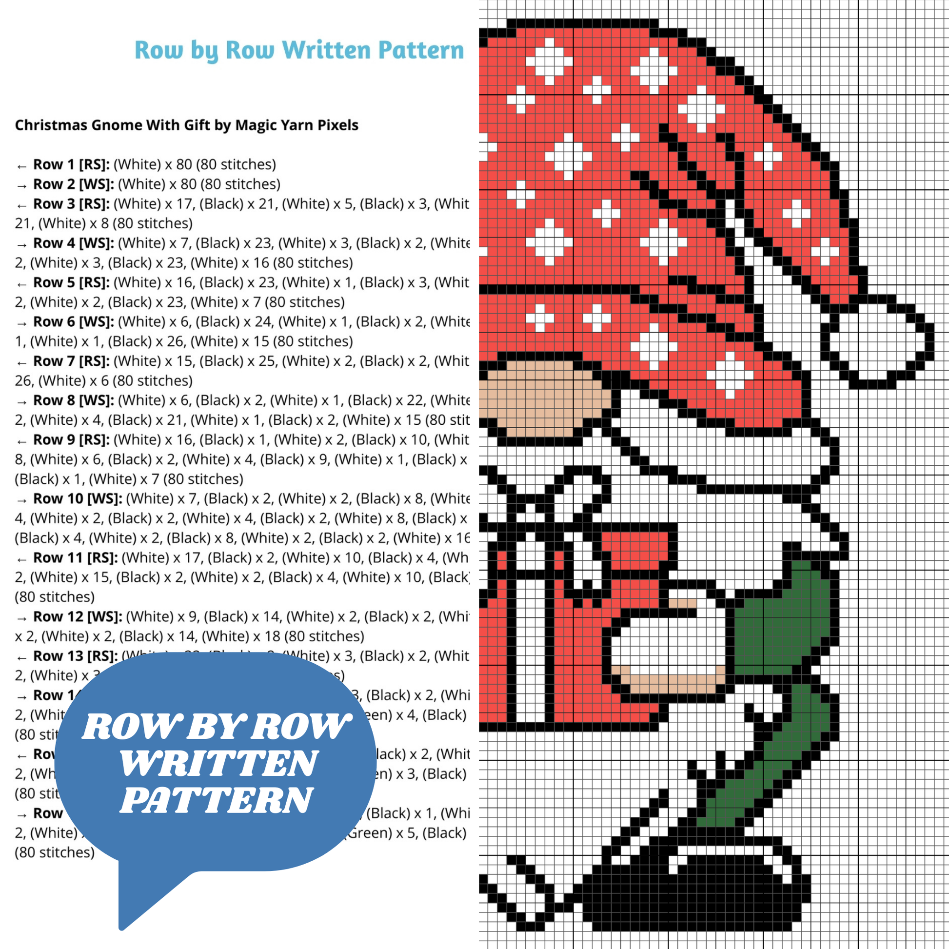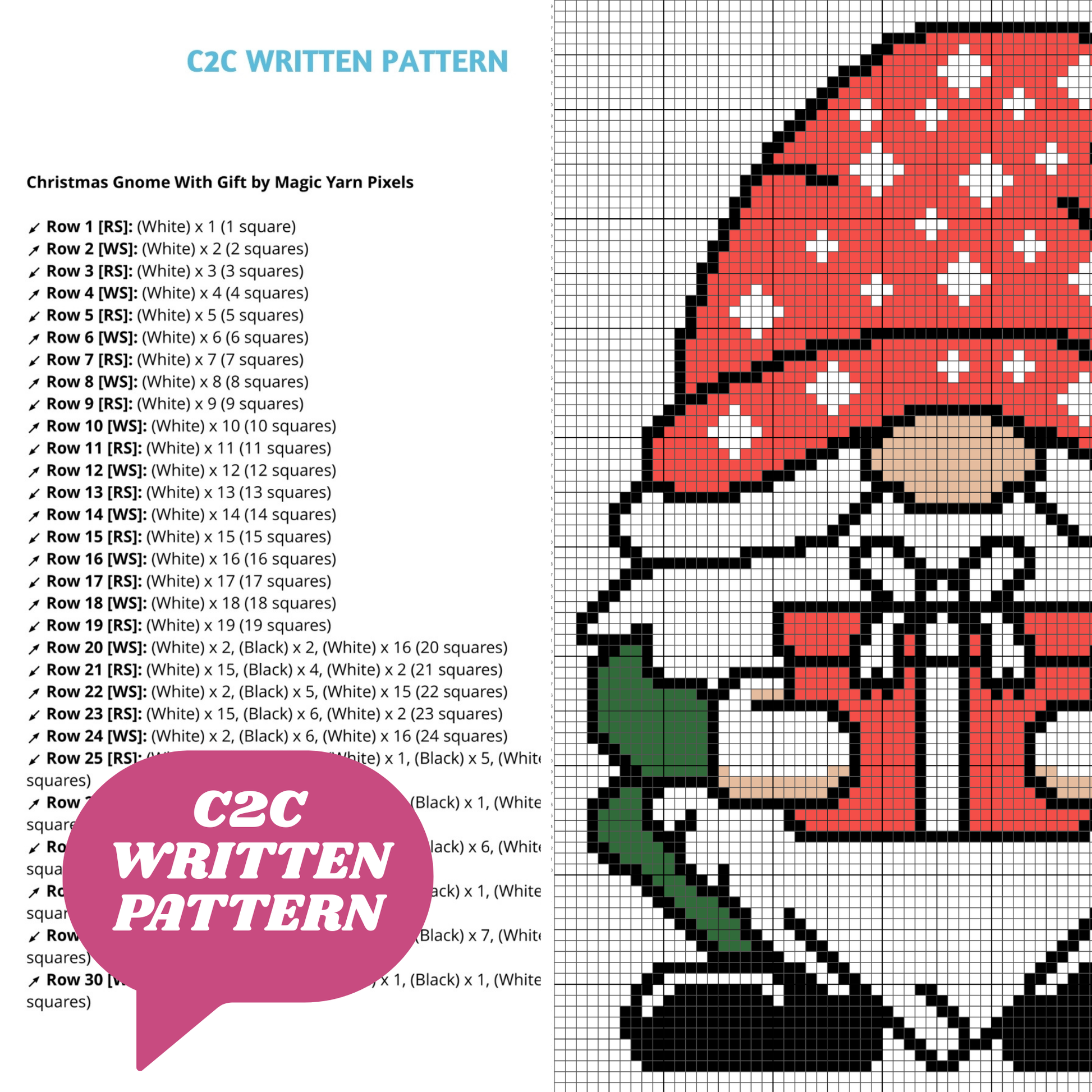 Christmas Gnome With Gift C2C Crochet Pattern by Magic Yarn Pixels