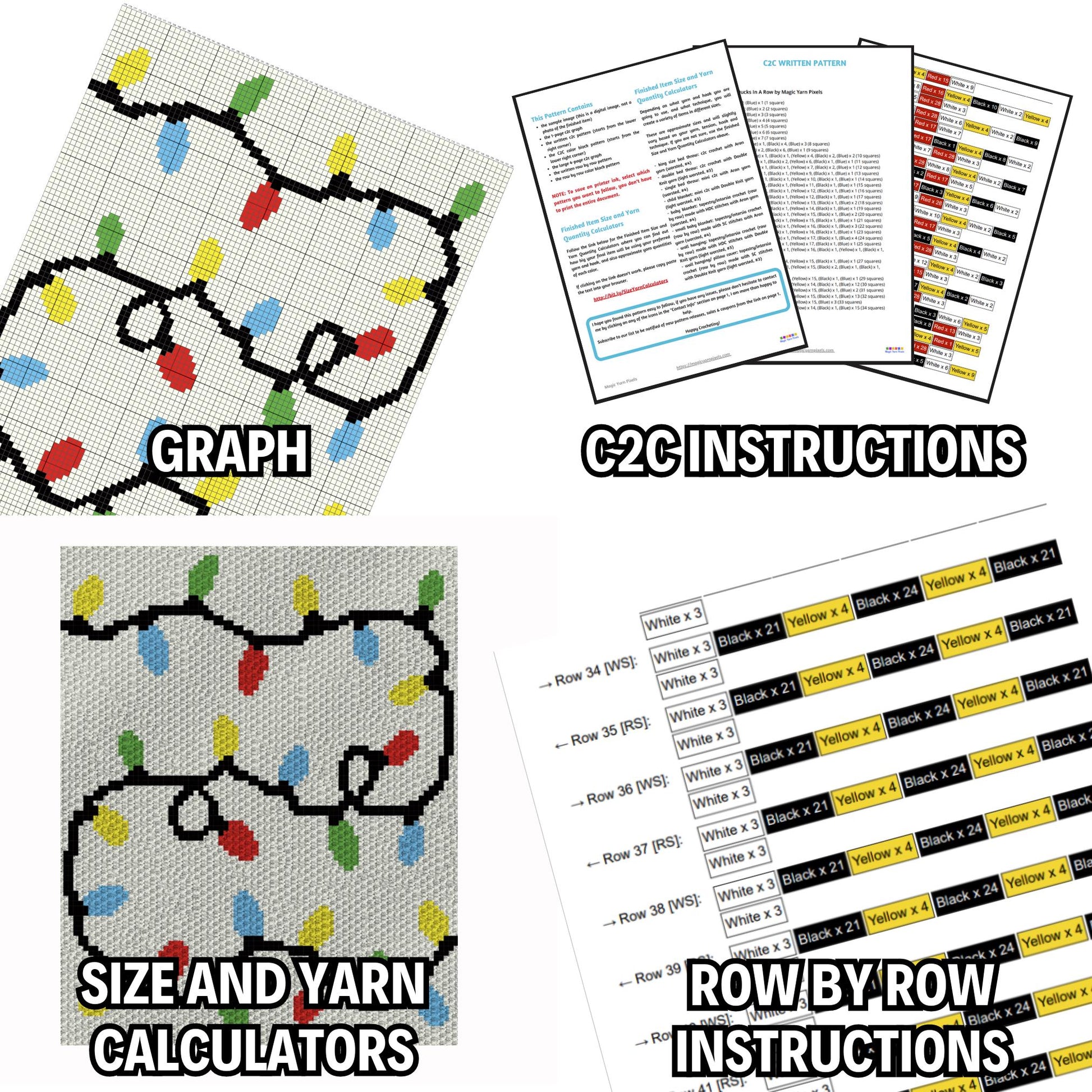 "Christmas Lights String" is a DIGITAL DOWNLOAD (available in PDF format only), written in ENGLISH ONLY that can be used to crochet a blanket using various techniques, such as C2C, Mini C2C, SC, HDC, DC, Tapestry Crochet etc.