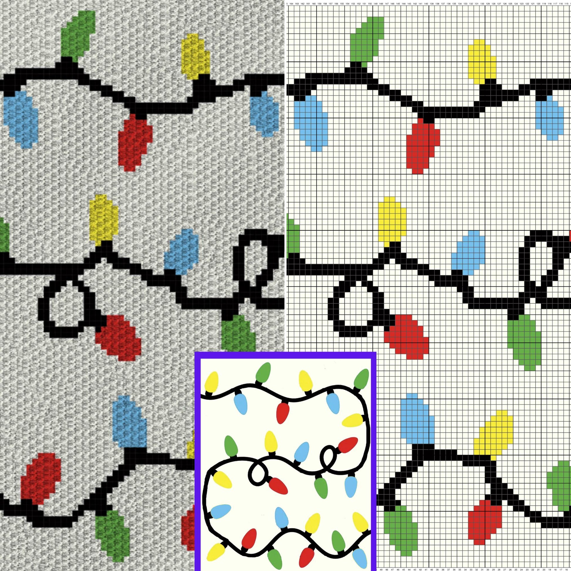 Christmas Lights Crochet Pattern + Graph C2C & Tapestry Crochet | Christmas Blanket Pattern C2C Throw Xmas Afghan Baby Shower Gift Birthday