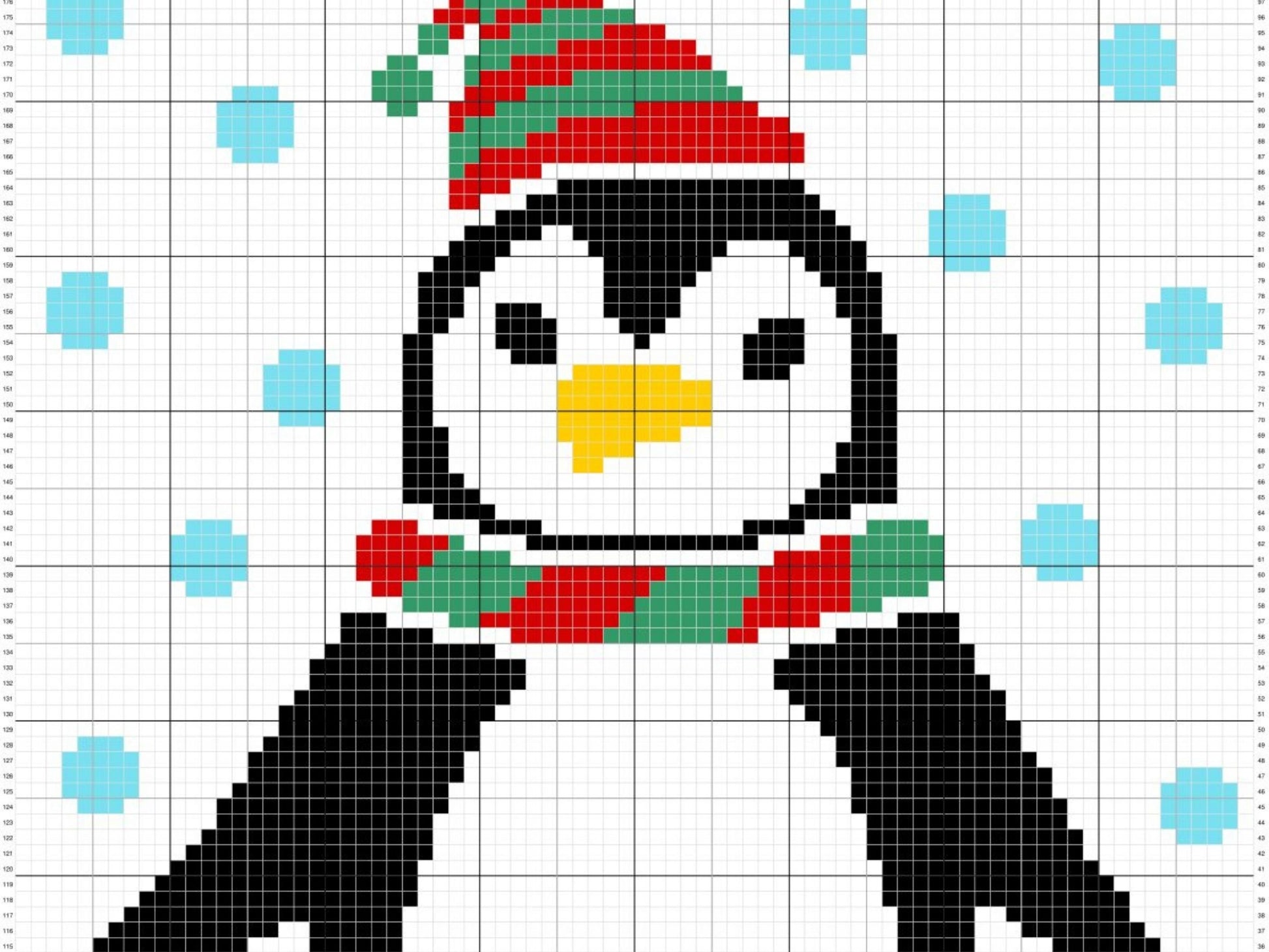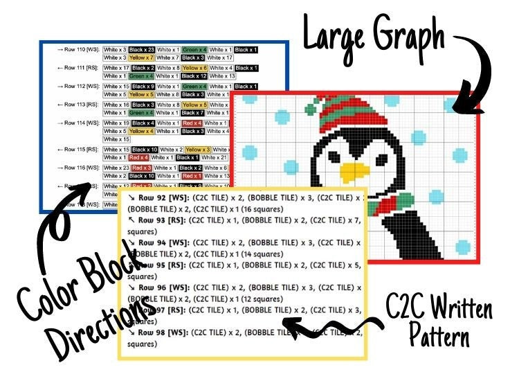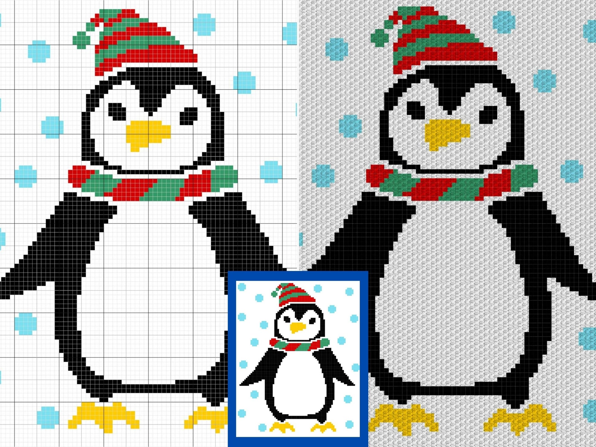Christmas Penguin Graph + Written Pattern For C2C & Tapestry Crochet - Crochet Penguin C2C Graphgan - Christmas Crochet Blanket - Baby Gift