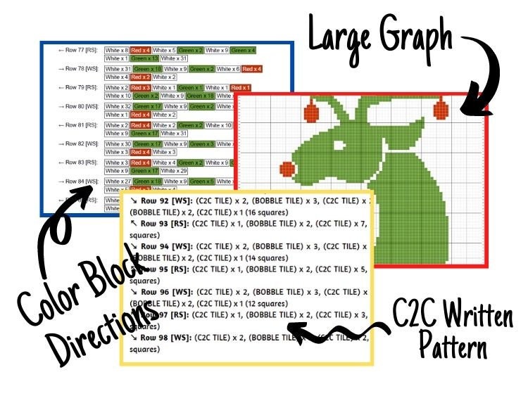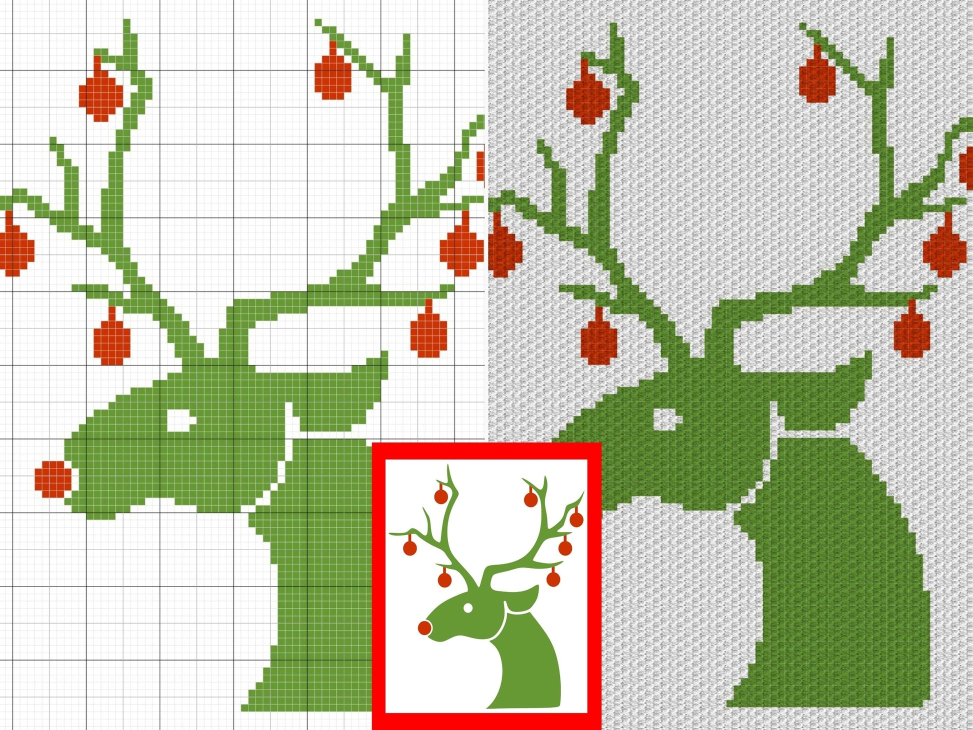 Christmas Reindeer With Baubles Graph + Written Pattern For C2C & Tapestry Crochet Reindeer C2C Crochet Pattern Christmas Crochet Blanket