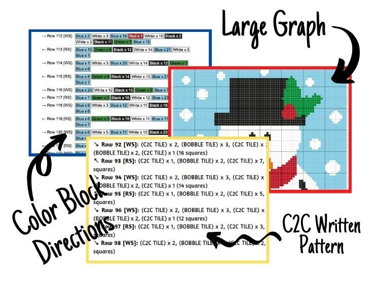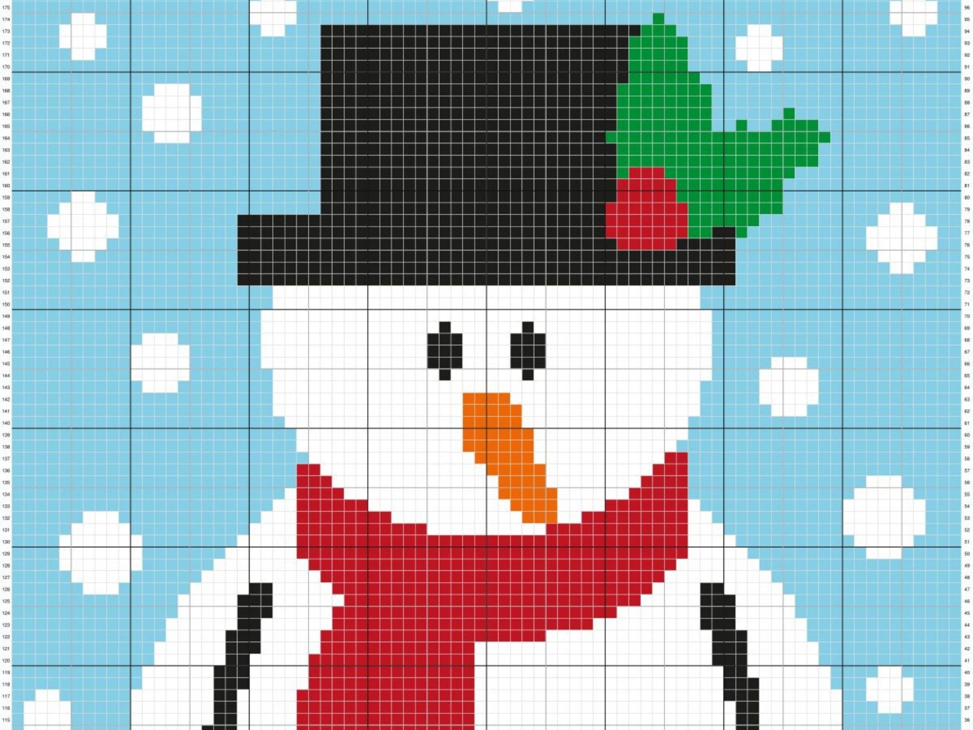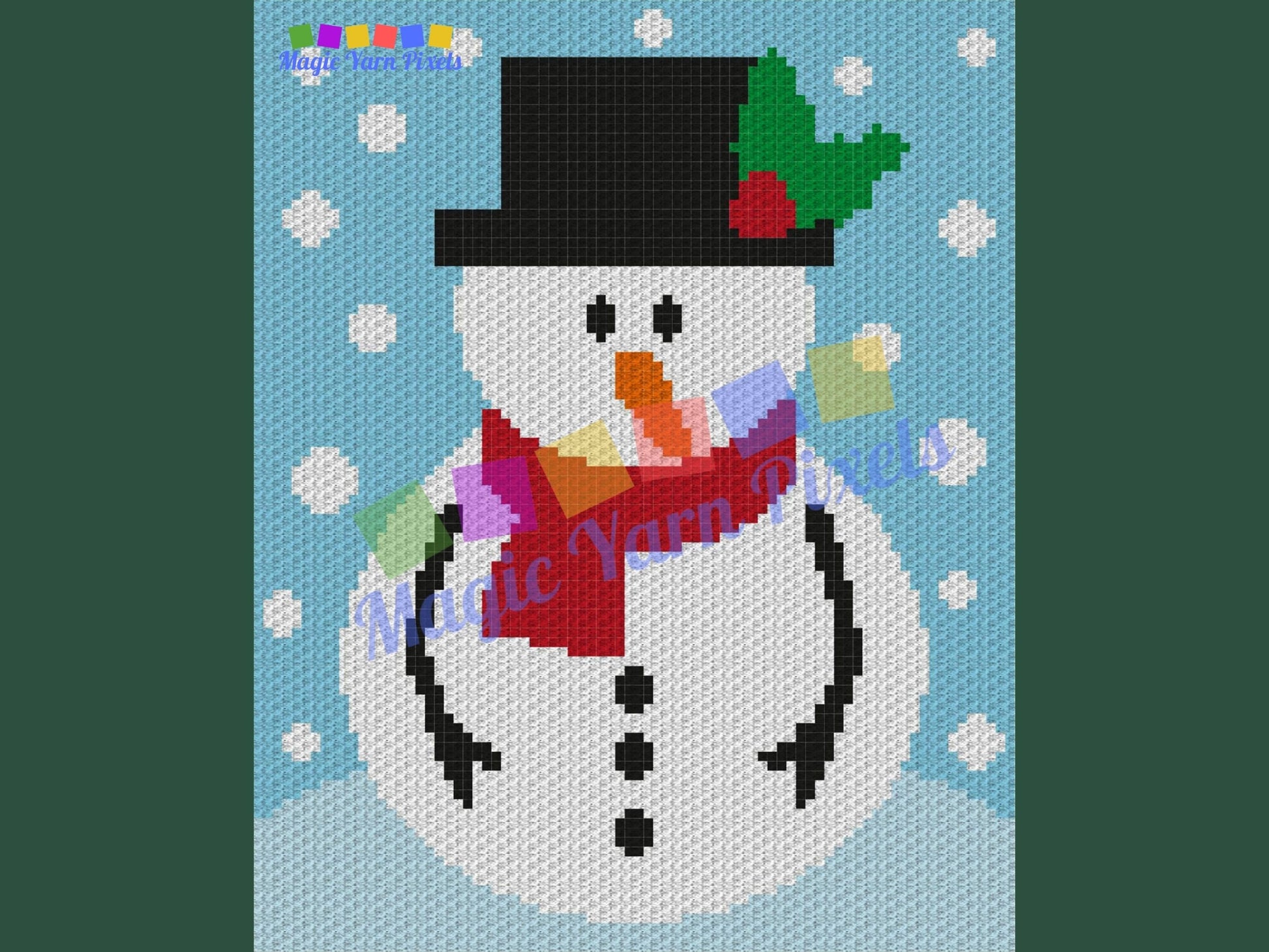 Christmas Snowman Graph + Written Pattern For C2C & Tapestry Crochet - Christmas C2C Crochet Patten - Crochet Snowman Blanket Winter Afghan