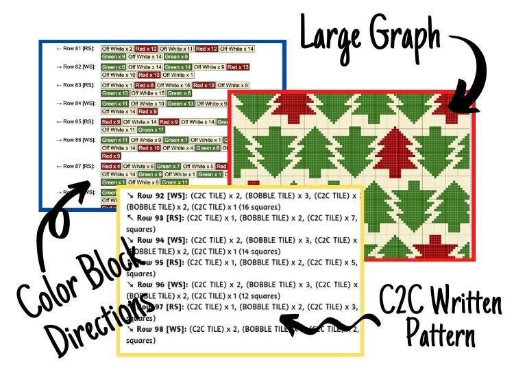 Christmas Tree Pattern Graph + Written Pattern For C2C & Tapestry Crochet - Christmas Tree C2C Crochet Pattern - Crochet Christmas Blanket