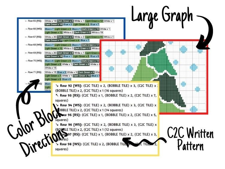 Christmas Tree With Snow Pattern Graph + Written Pattern For C2C & Tapestry Crochet - Christmas Crochet Pattern - Christmas Tree C2C Blanket