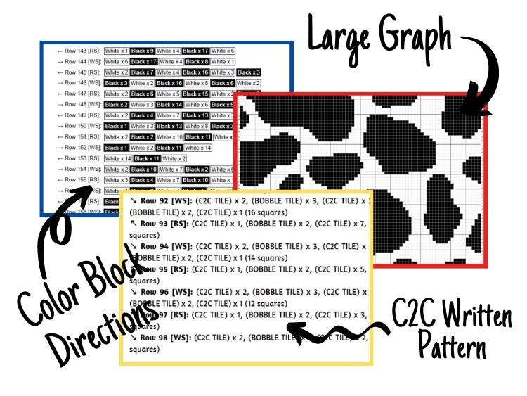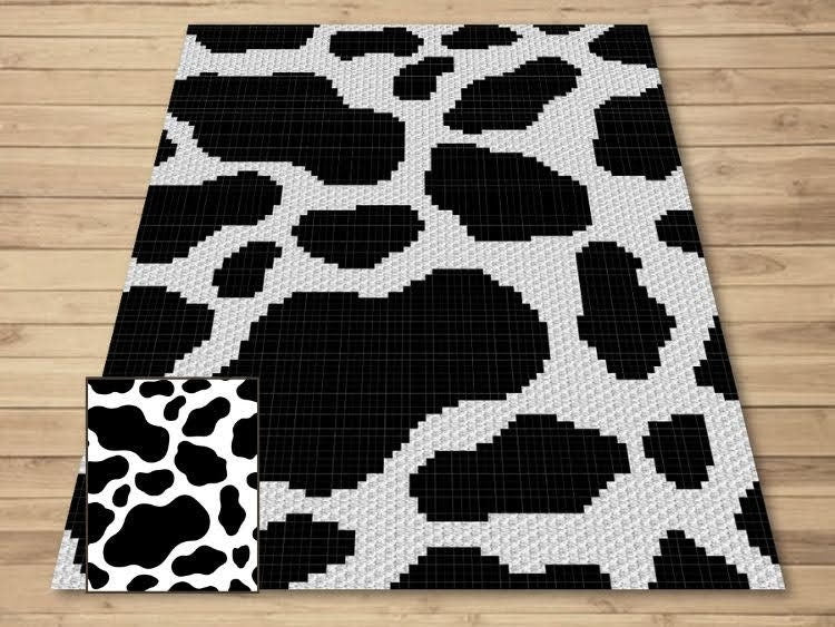 Cow Print Graph + Written Pattern For C2C & Tapestry Crochet - C2C Graph Cow Pattern - Crochet Animal Print Cow Blanket Baby C2C Cow Afghan