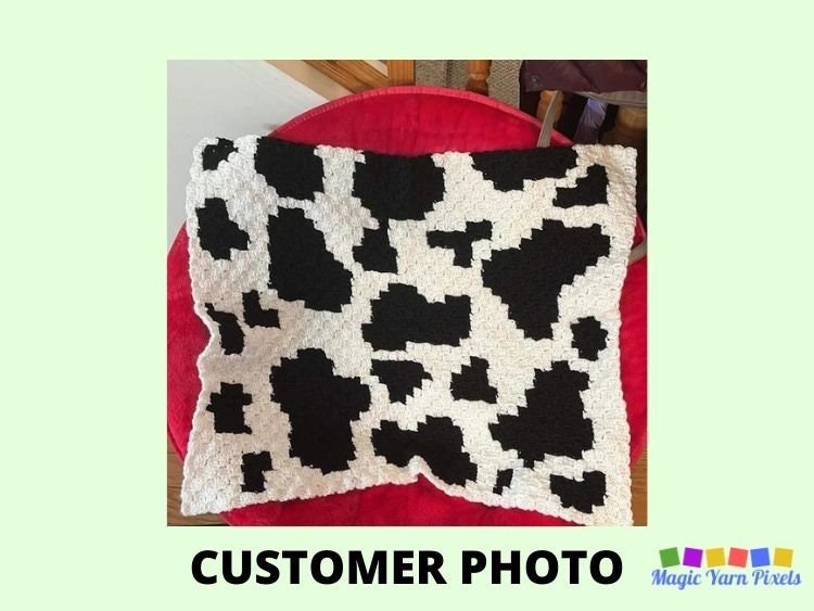 "Cow Print" is a DIGITAL DOWNLOAD (available in PDF format only), written in ENGLISH ONLY that can be used to crochet a blanket using various techniques, such as C2C, Mini C2C, SC, HDC, DC, Tapestry Crochet etc.