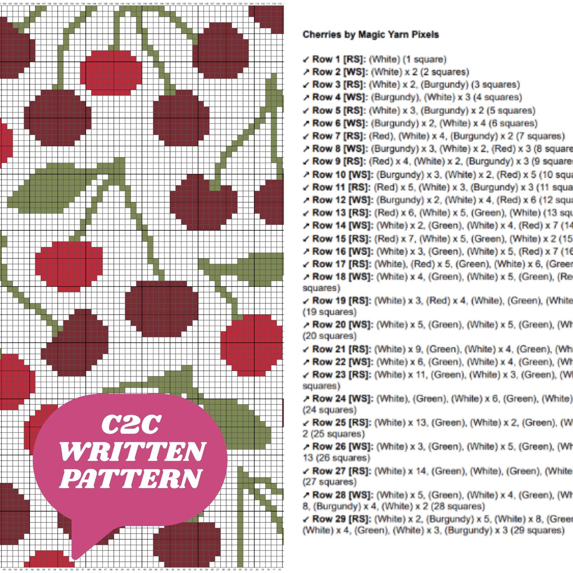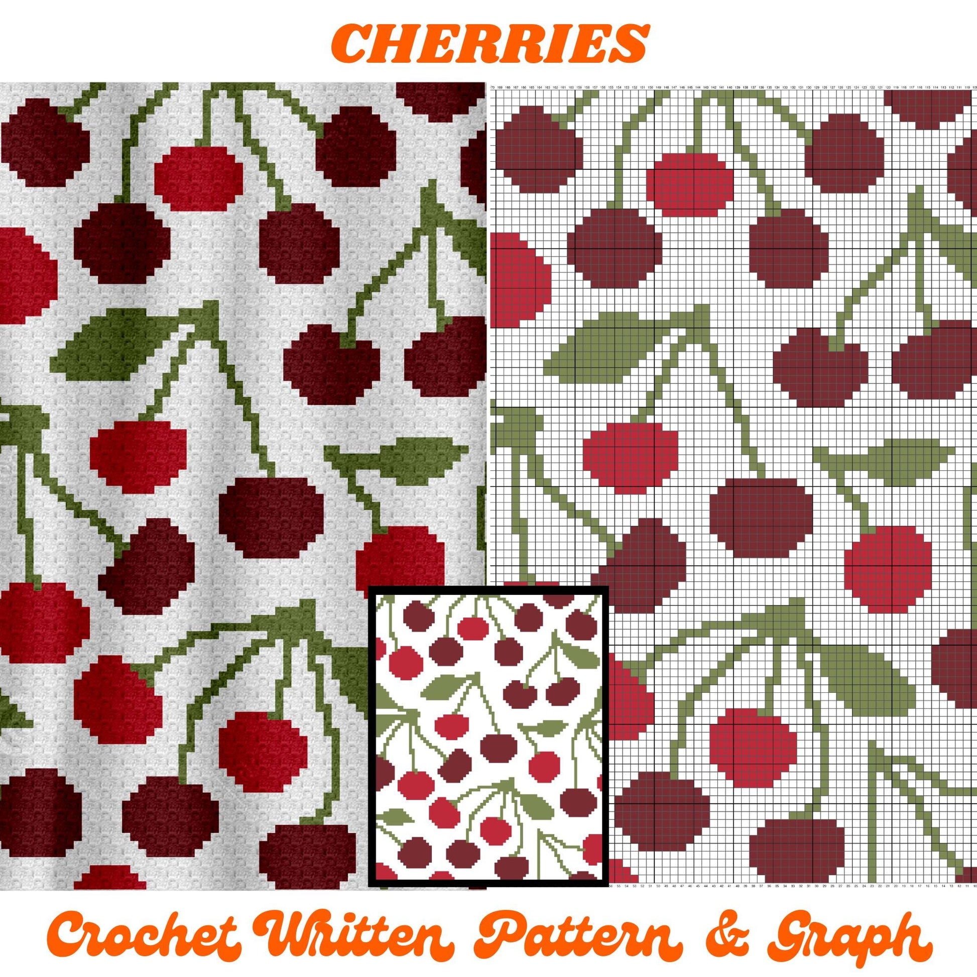 Crochet Cherry Blanket Graph + Pattern for C2C & Tapestry Crochet | C2C Crochet Cherry Print, Cherries Afghan, Gift For Mums, Baby Blanket