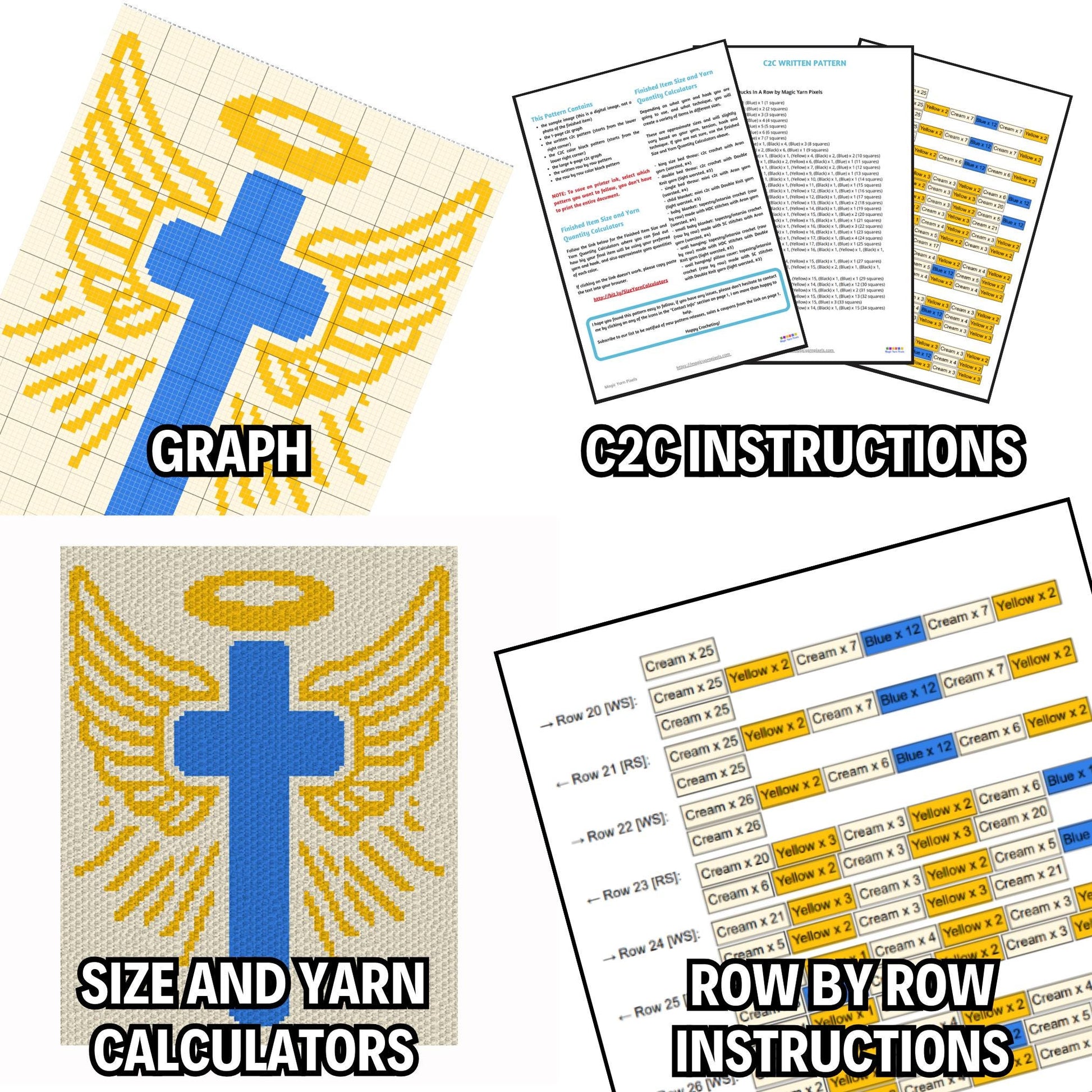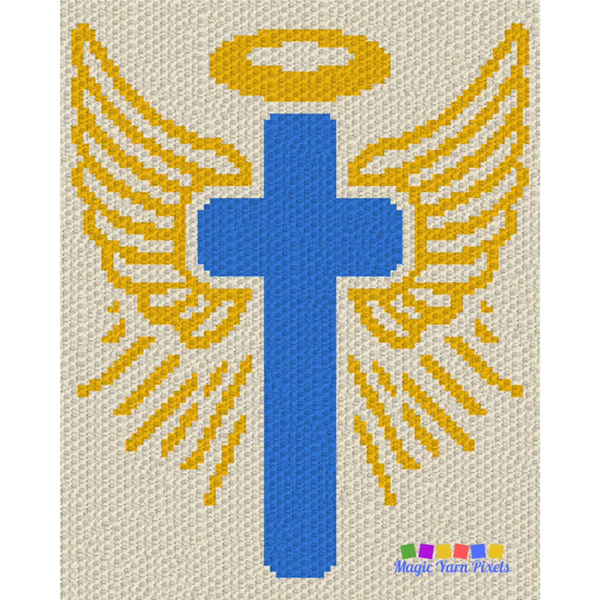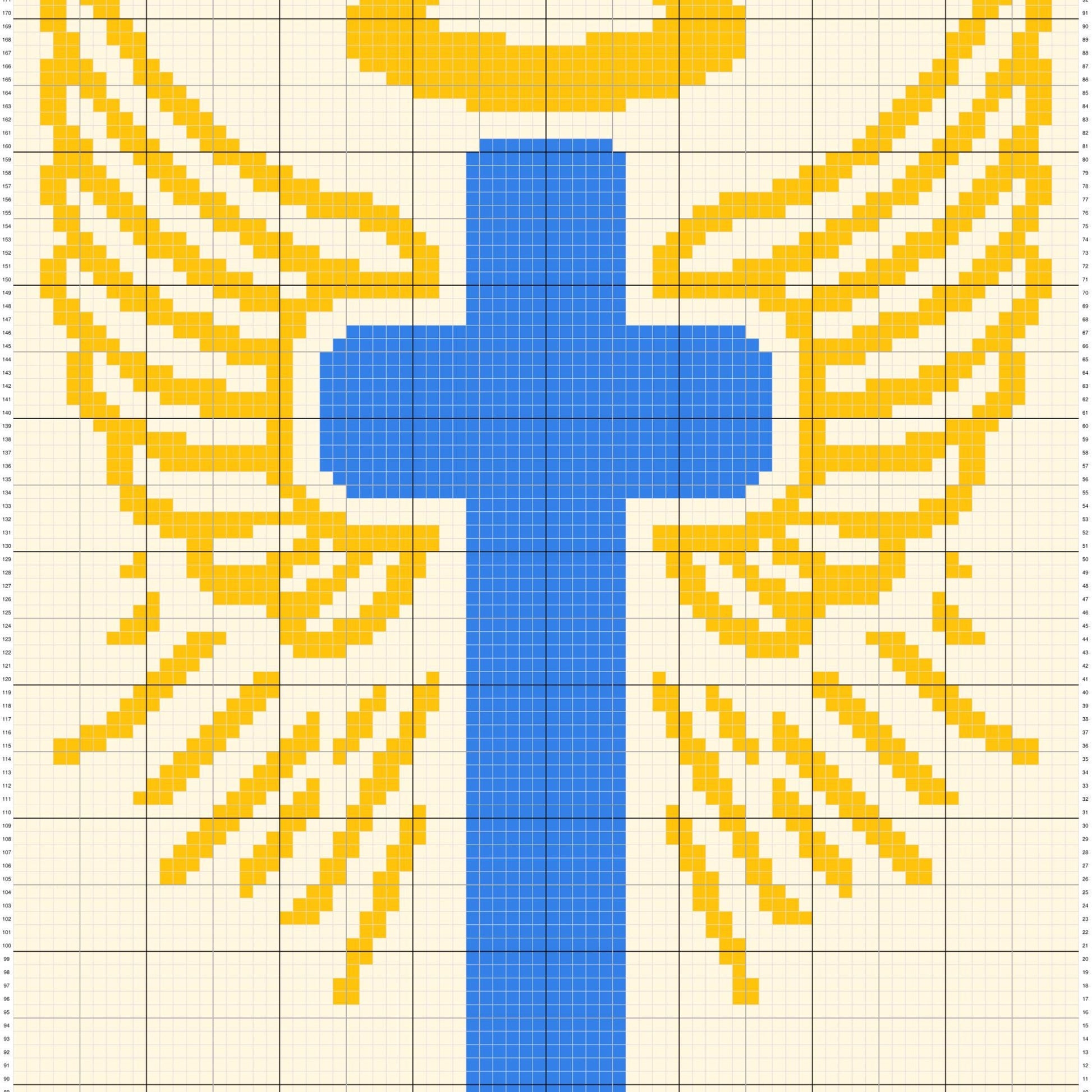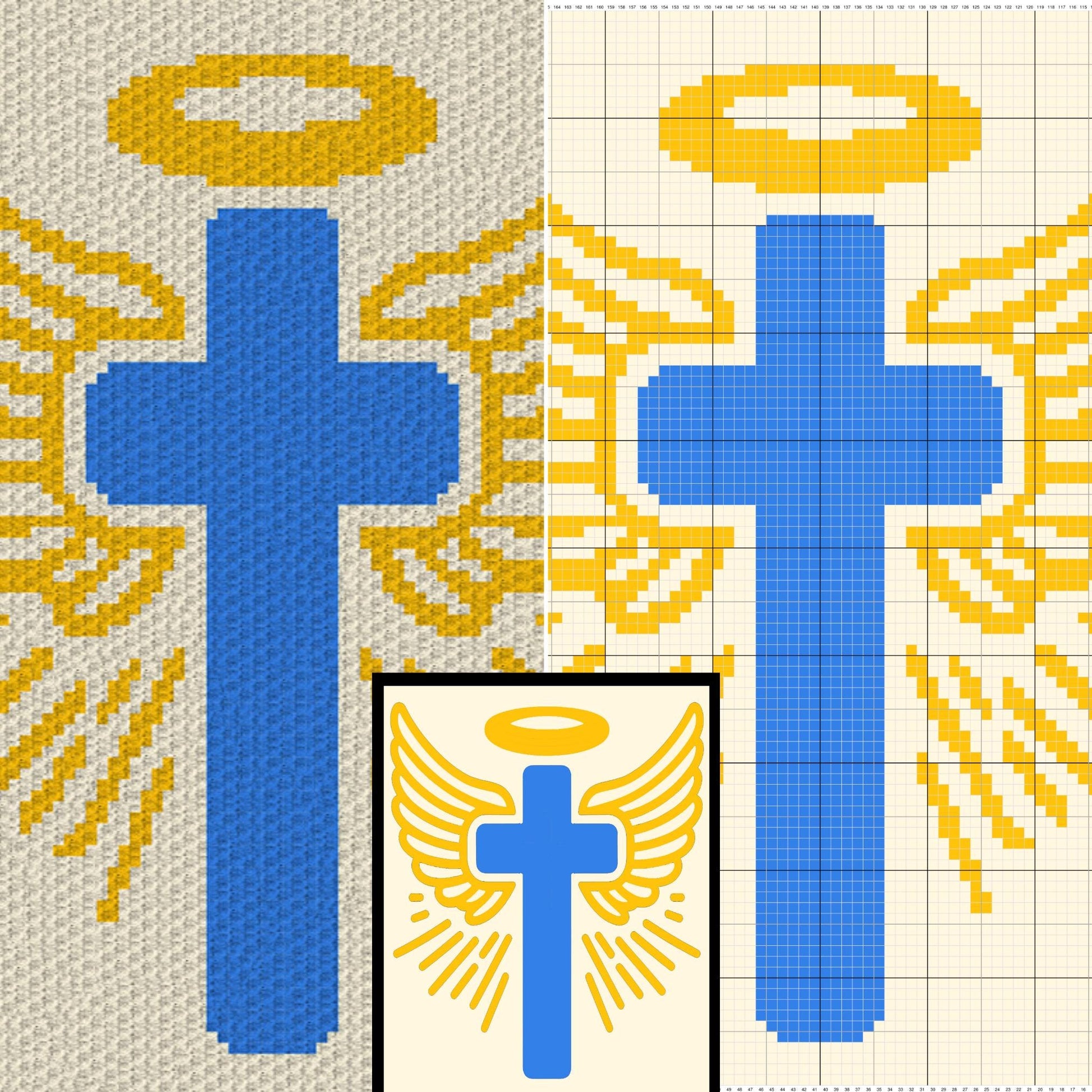 Cross With Wings And Halo Graph + Pattern C2C & Tapestry Crochet | C2C Cross Blanket, Church Angel Afghan, Christian Faith Crochet Blanket