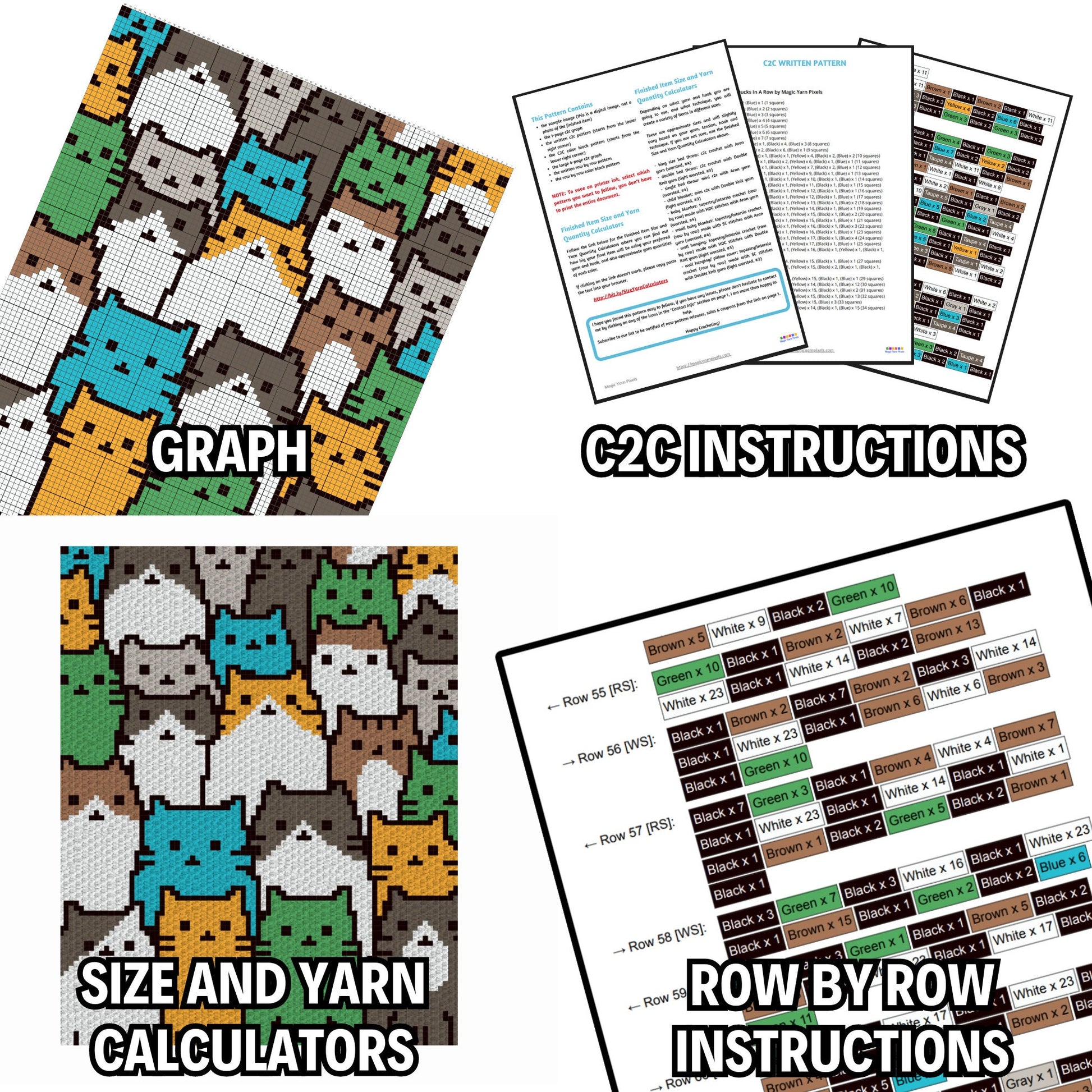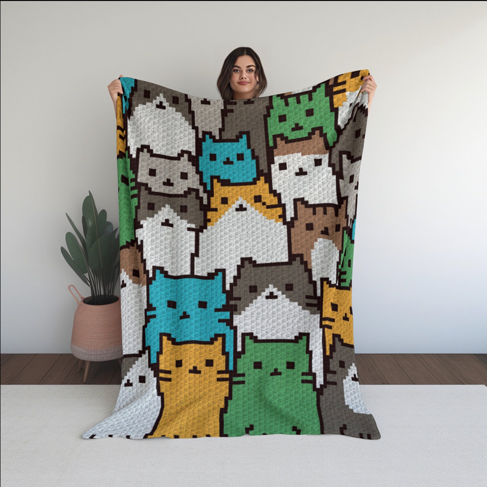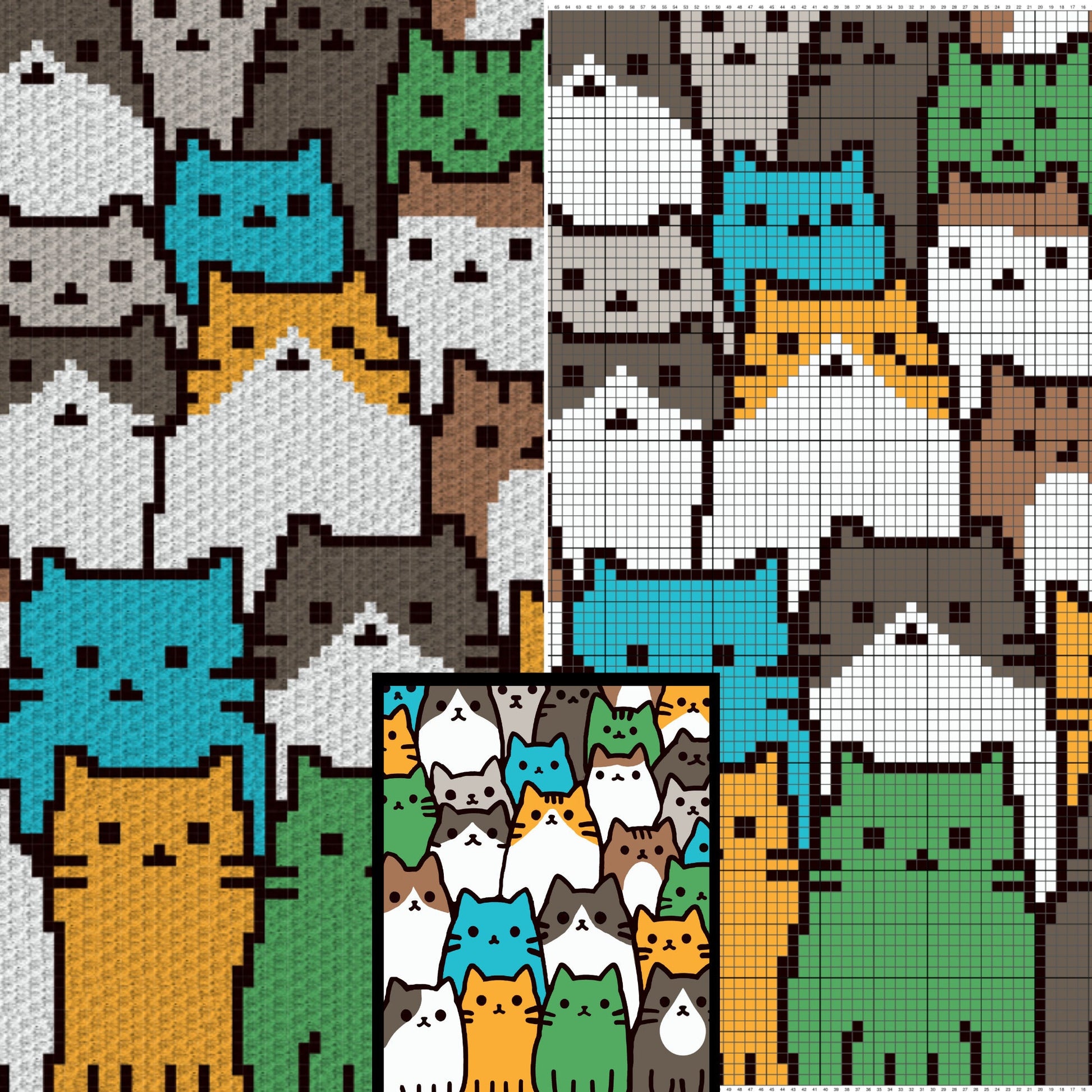 Crowded Cats Graph + Pattern C2C and Tapestry Crochet | Crochet Cat Blanket Cat Lady Crochet Afghan Cat Mama Gifts C2C Blanket Fur Baby Cats