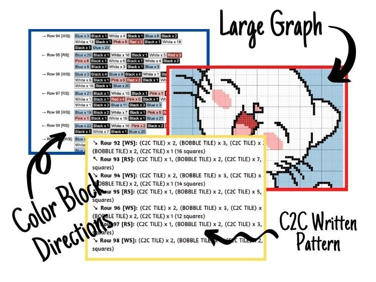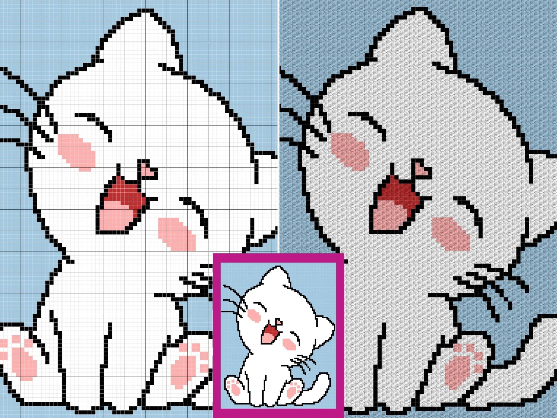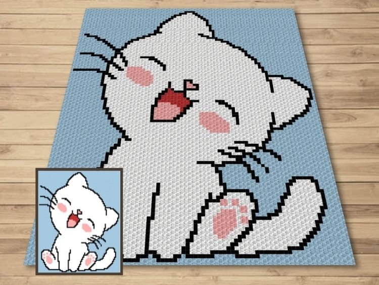 Cute Baby Cat Graph + Written Pattern For C2C & Tapestry Crochet - Crochet Cat C2C Graphgan - Crochet Cat Baby Blanket - Animal Baby Blanket