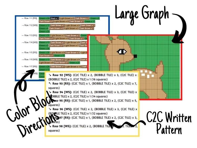 Cute Baby Deer Graph + Written Pattern For C2C & Tapestry Crochet - Deer C2C Graphgan - Deer C2C Crochet Blanket Animal Baby Blanket Afghan