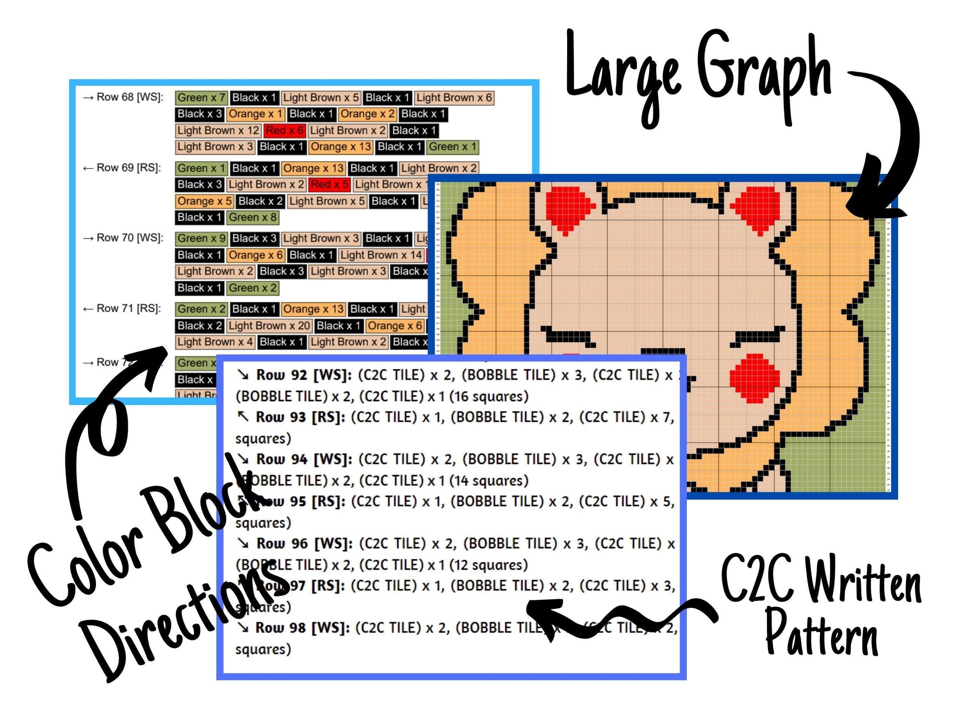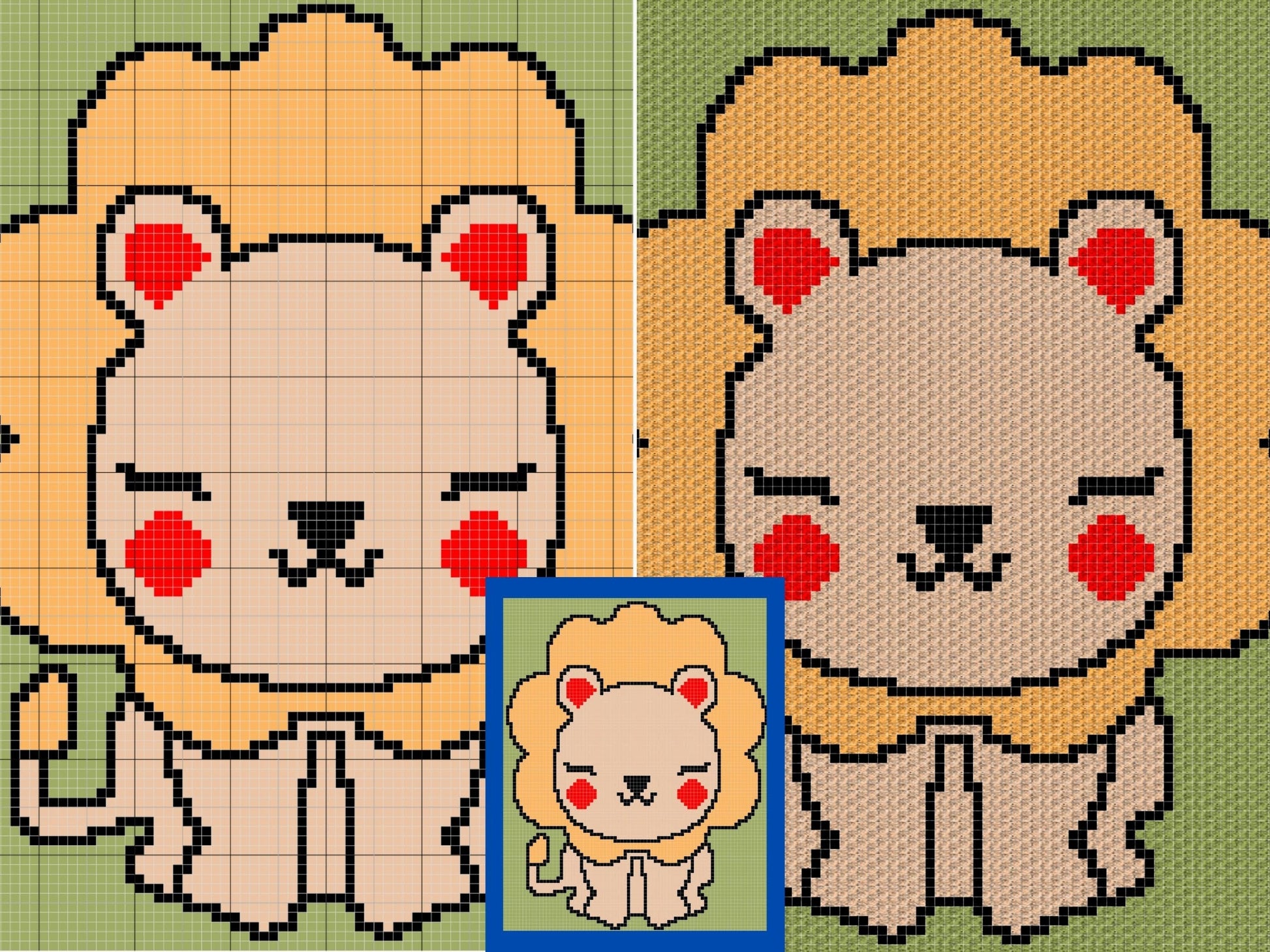 Cute Baby Lion Graph & Pattern C2C Tapestry Crochet Lion Crochet Graphgan Safari Nursery Crochet Blanket C2C Safari Baby Blanket DIY Gifts