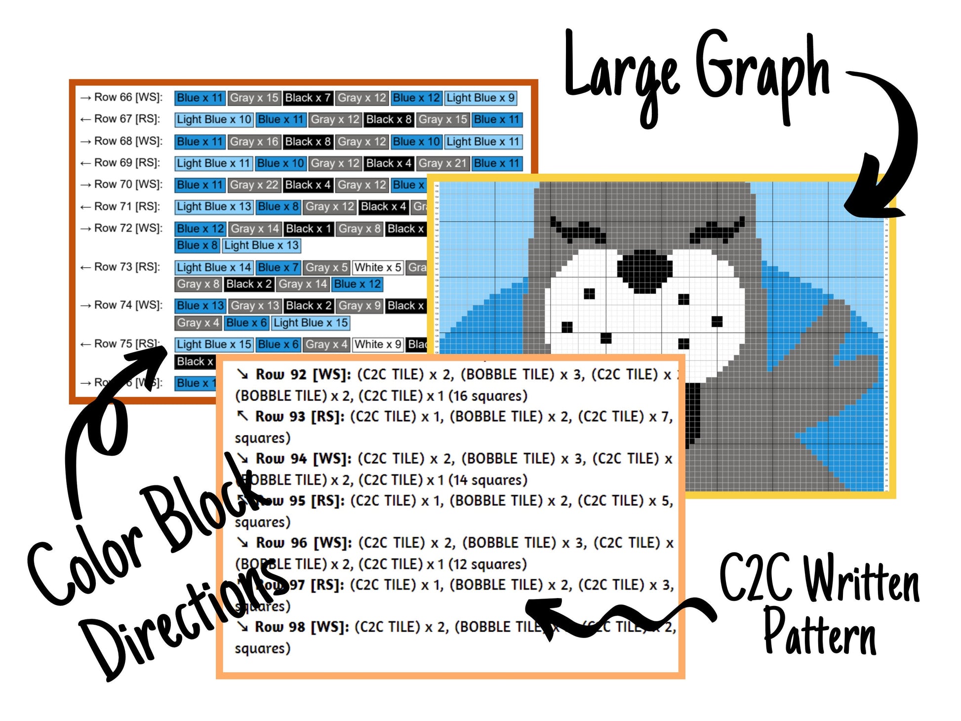 Cute Baby Seal Graph & Pattern C2C and Tapestry Crochet-Seal Crochet Graphgan-Seal Animal Crochet Blanket-Cute Animals C2C Blanket Gift Baby