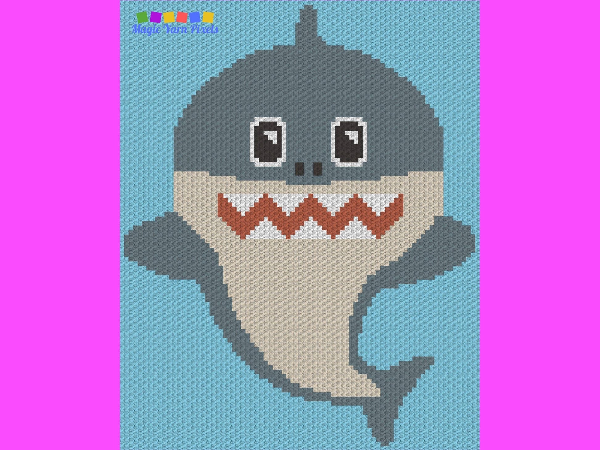 Cute Baby Shark Graph and Pattern C2C & Tapestry Crochet- Great White Shark Graphgan Crochet Shark Blanket - Ocean Theme Nursery C2C Blanket