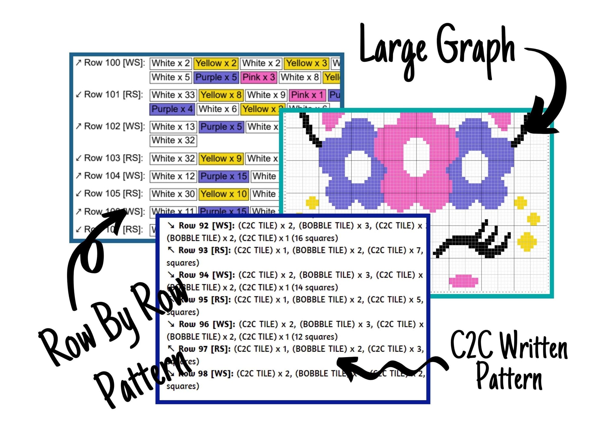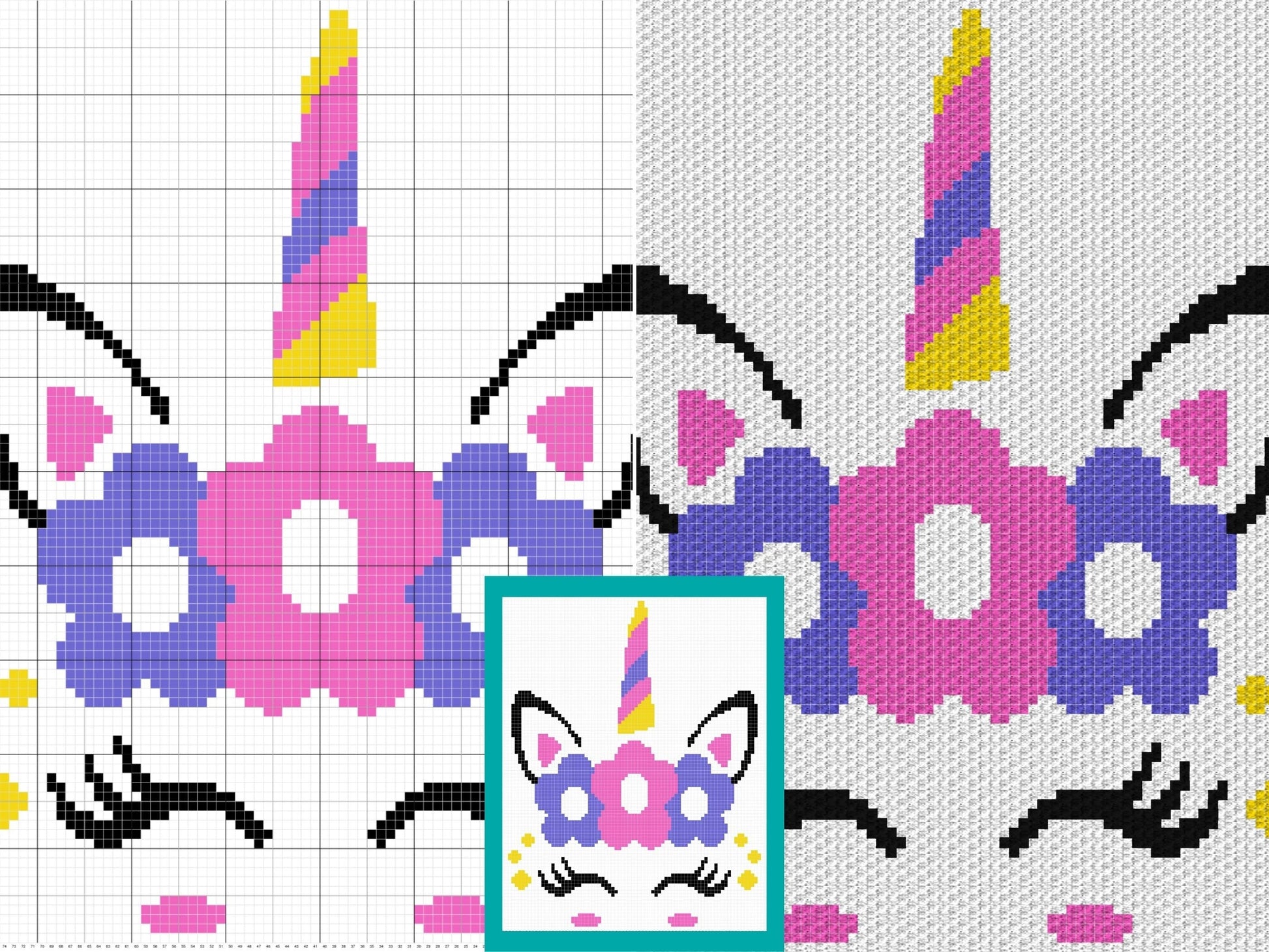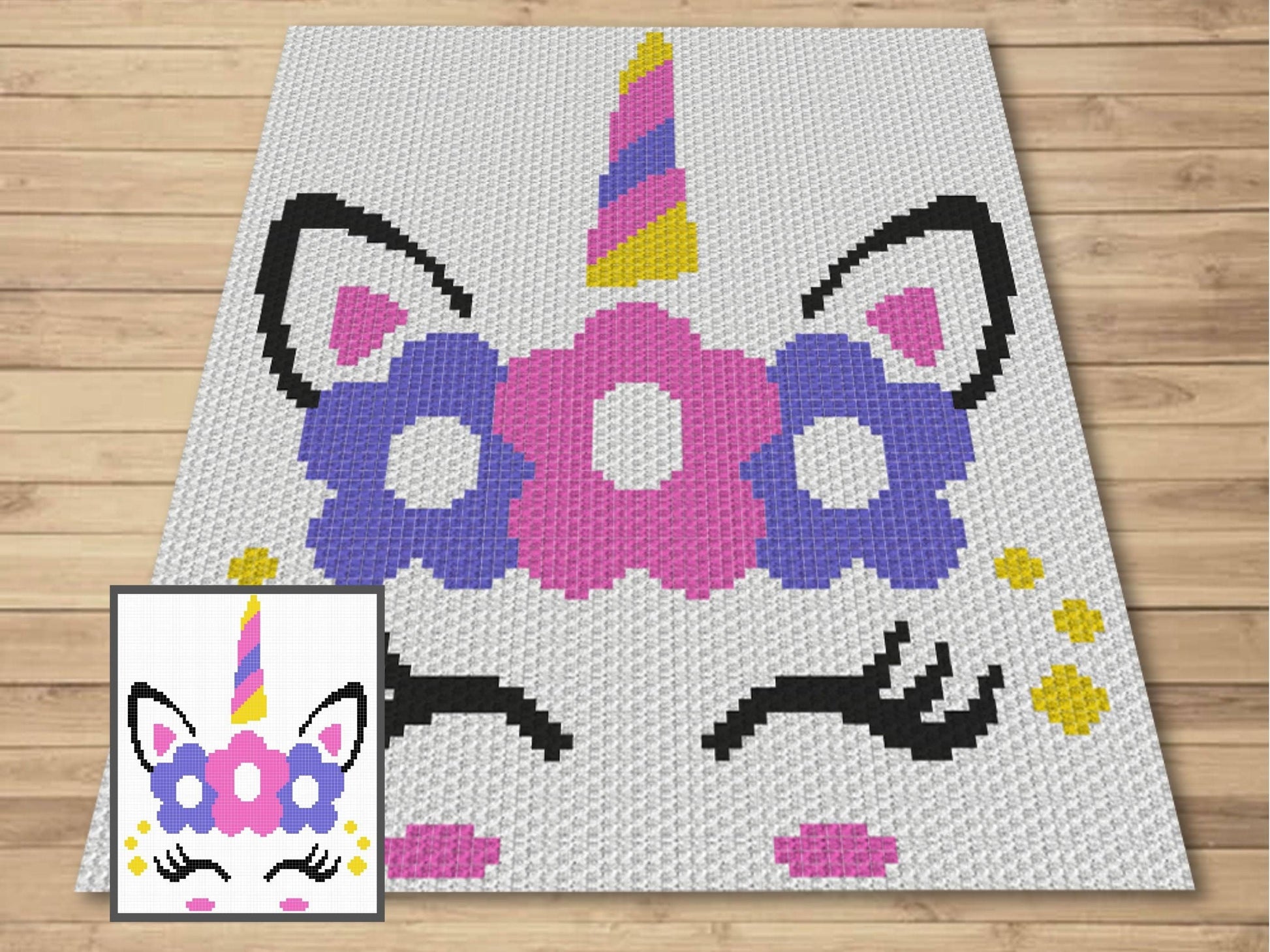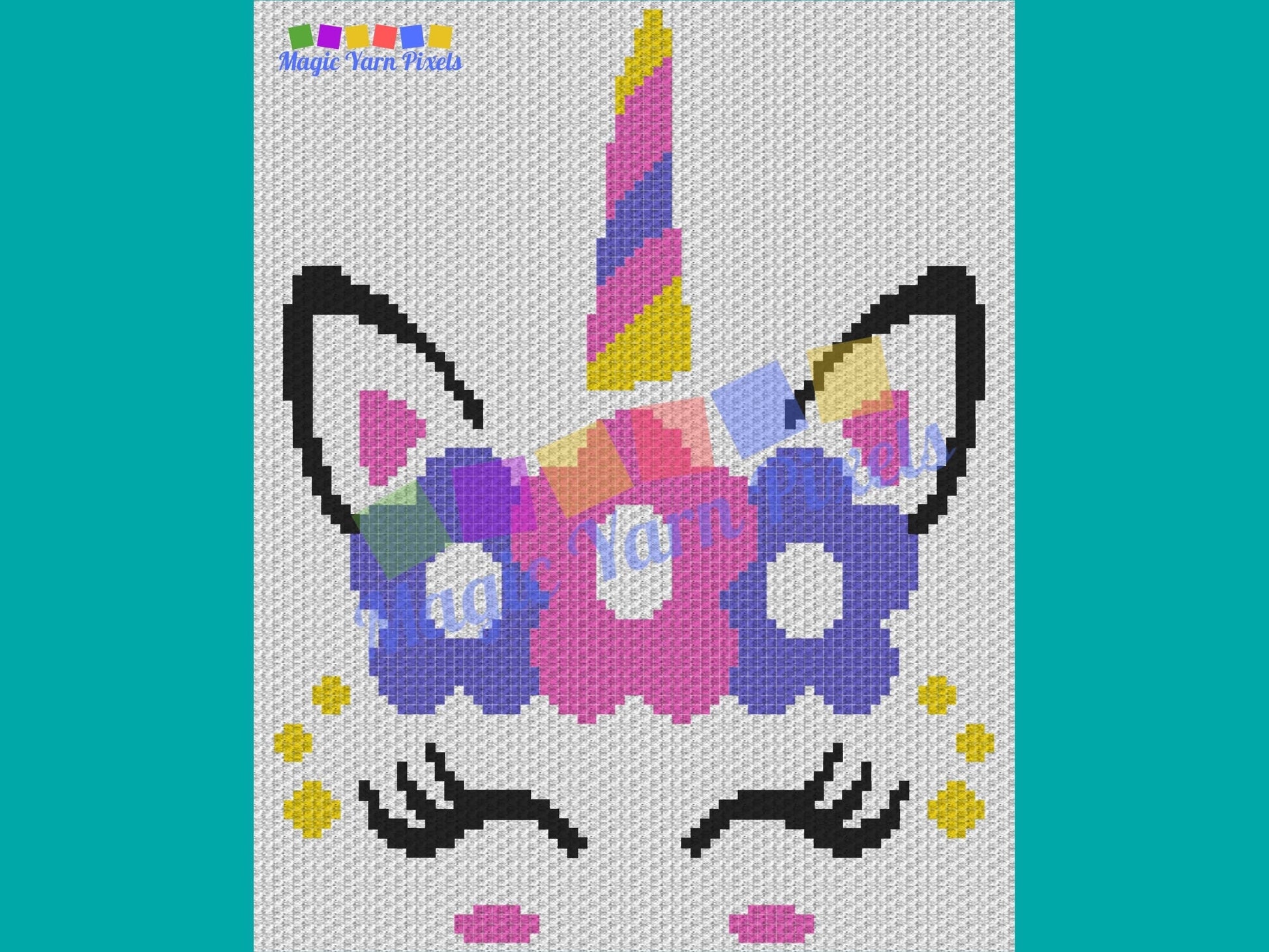 Cute Rainbow Unicorn Face Graph and Pattern C2C & Tapestry Crochet - Unicorn C2C Graphgan - Crochet Unicorn Blanket - Rainbow Blanket Gift