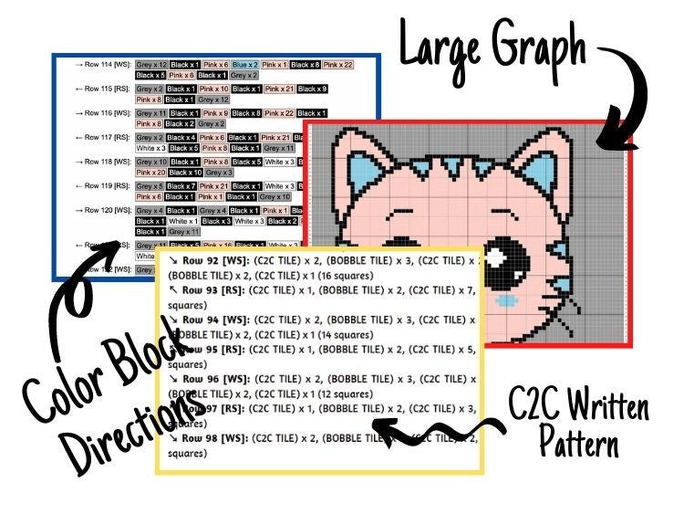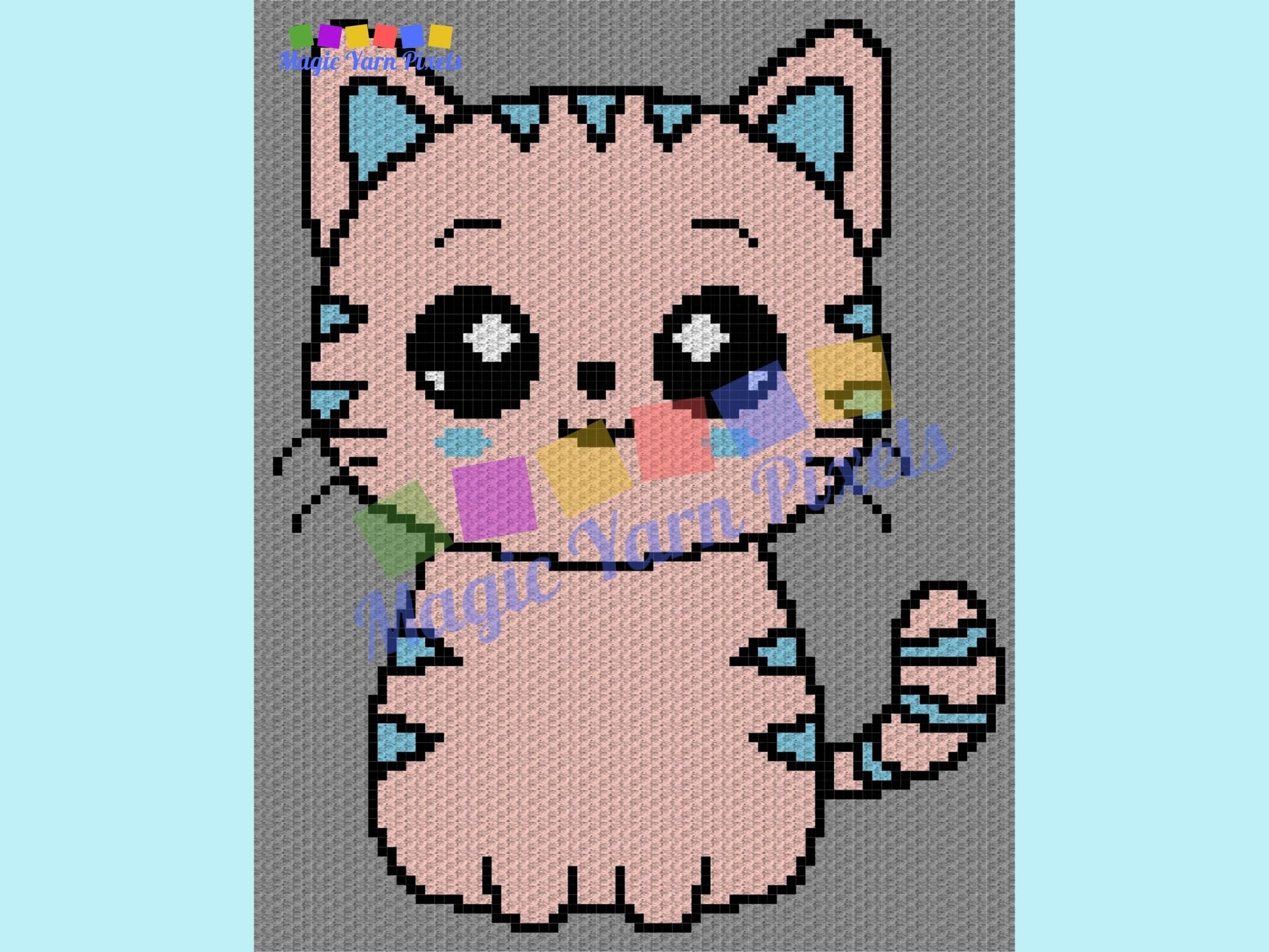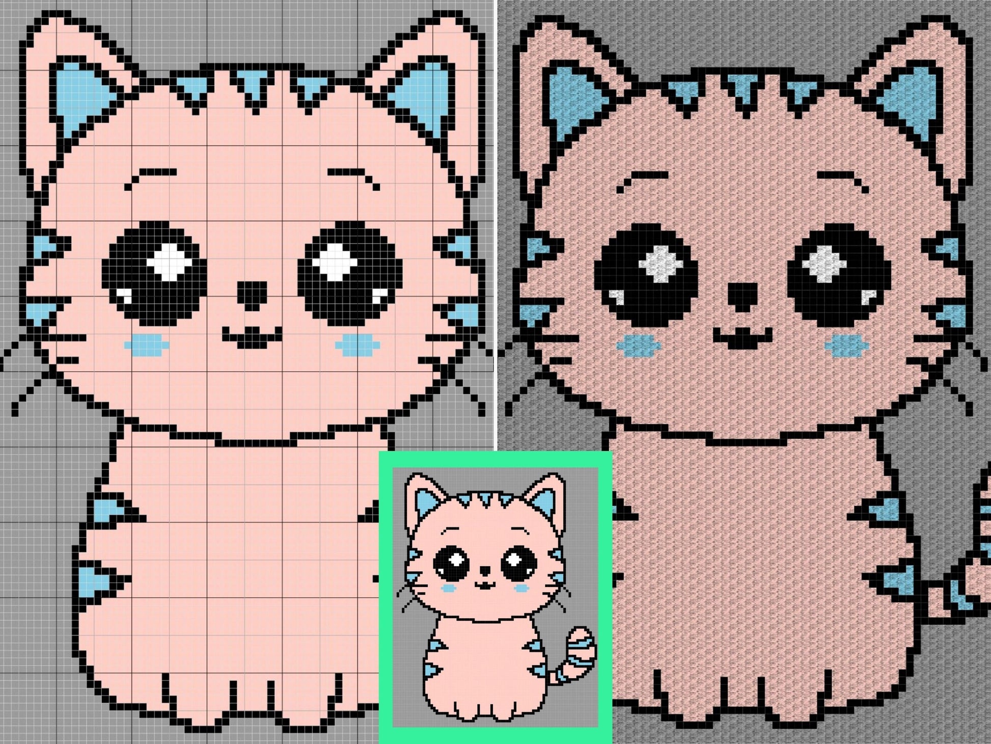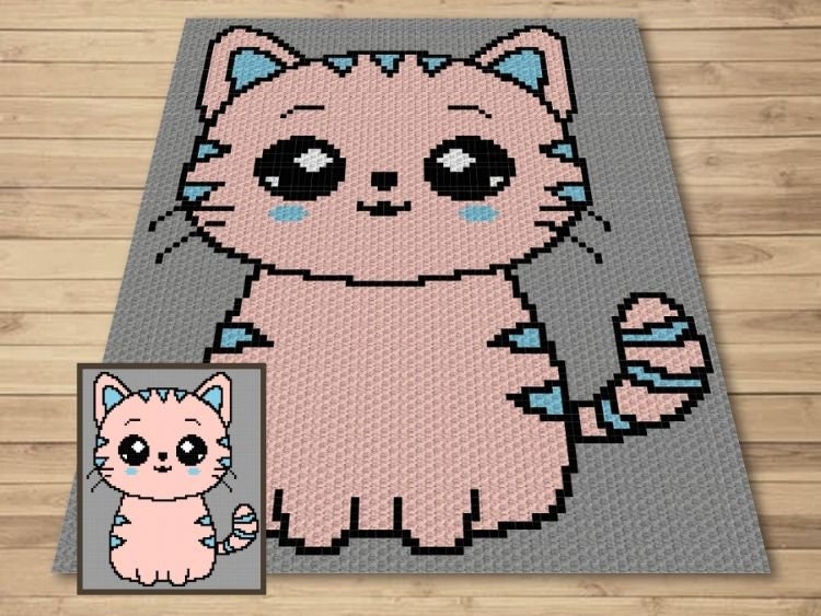 Cute Strawberry Cat Graph + Written Pattern For C2C & Tapestry Crochet - Cat C2C Graphgan - Crochet Cat Blanket - Animal Blanket Baby Shower