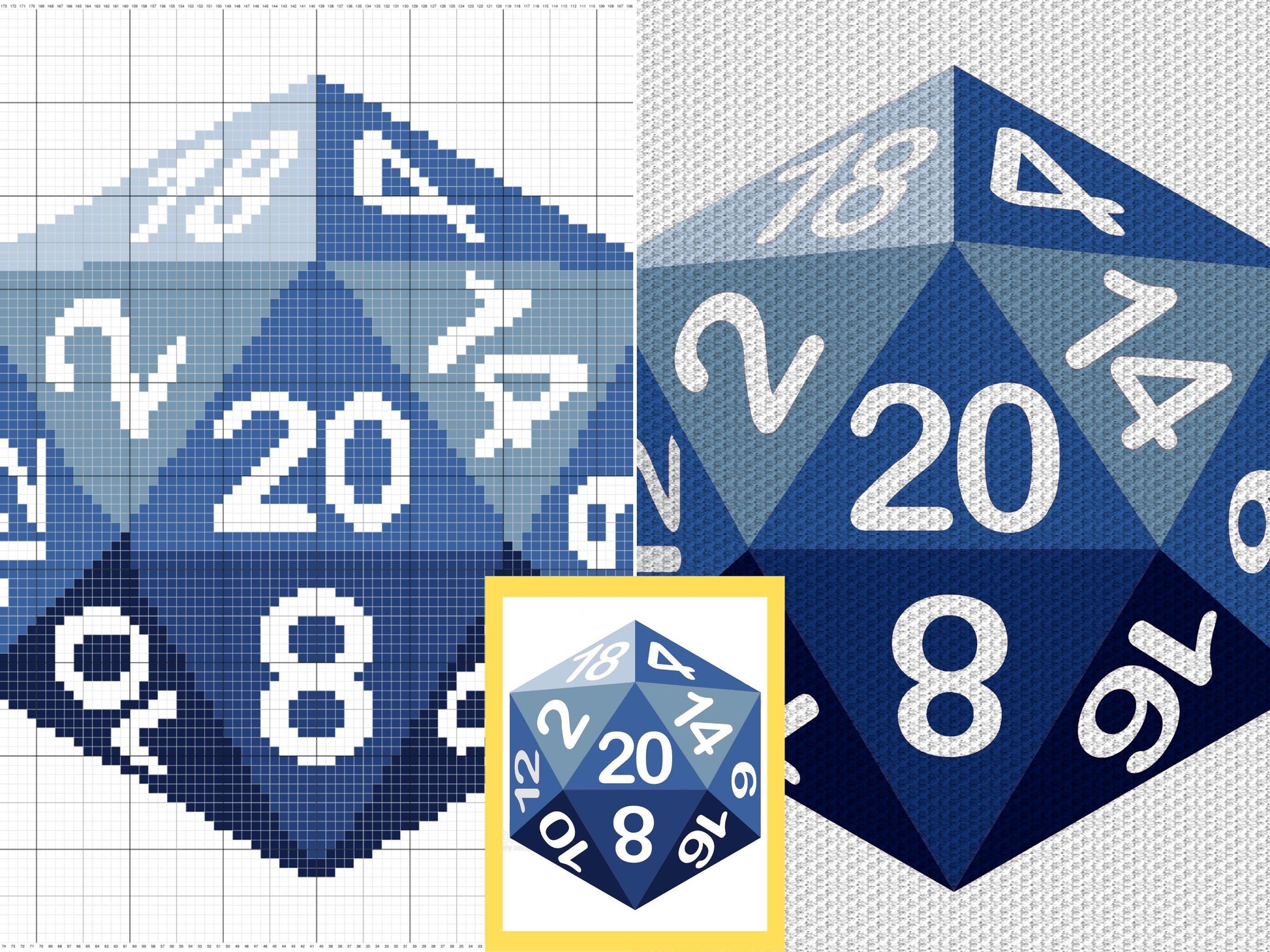 D&D D20 Dice Graph + Pattern C2C And Tapestry Crochet - 20 sided Die D20 Crochet Afghan Patterns C2C Fantasy Gaming Dice C2C Baby Blankets