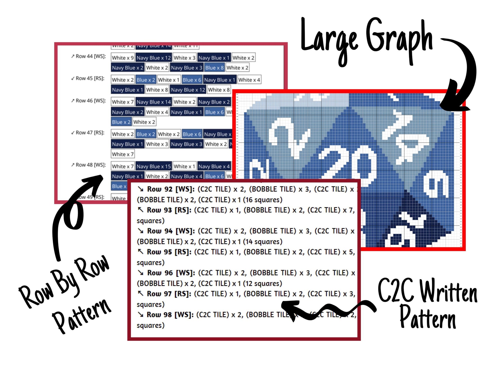 - the written c2c pattern (starts from the lower right corner)