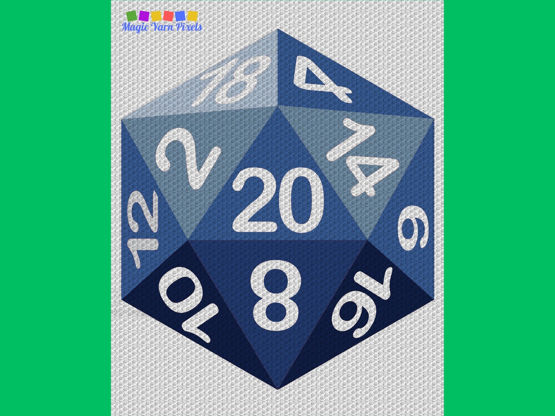 "D&D D20 Dice" is a DIGITAL DOWNLOAD (available in PDF format only), written in ENGLISH ONLY that can be used to crochet a blanket using various techniques, such as C2C, Mini C2C, SC, HDC, DC, Tapestry Crochet etc.