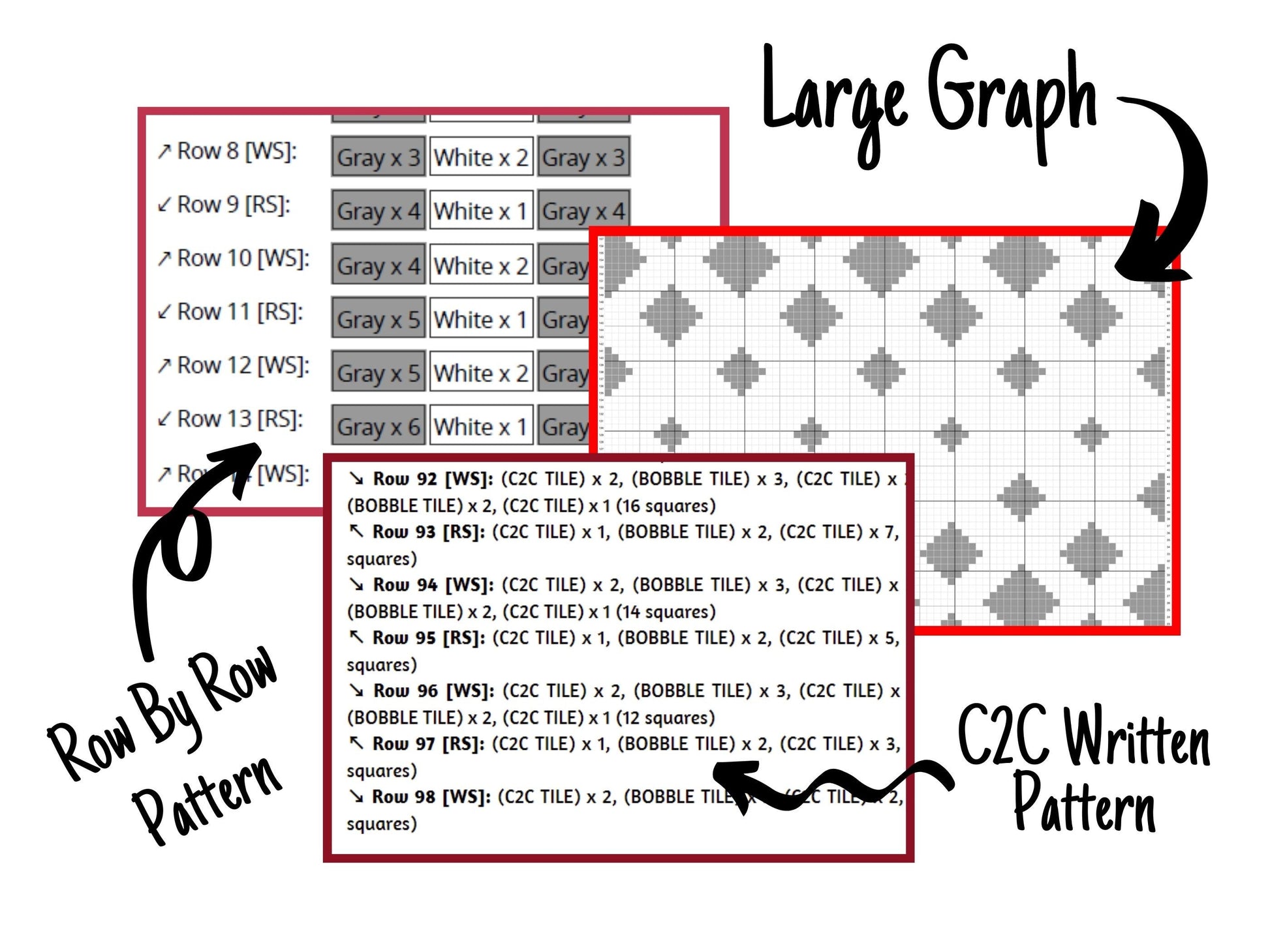 Fading Diamonds Print Graph and Pattern C2C & Tapestry Crochet - Diamonds Pattern Graphgan - C2C Diamond Blanket - C2C Diamond Blanket Gifts
