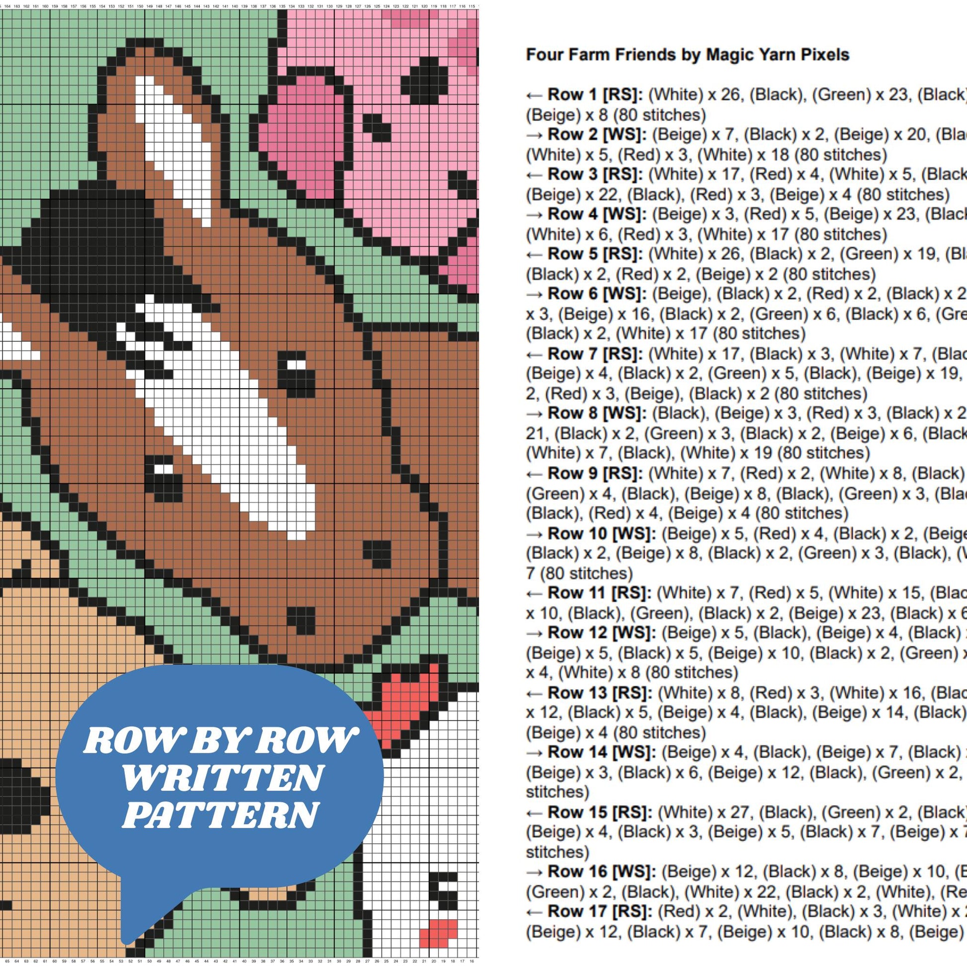 Farm Animal Friends Afghan Graph & Pattern C2C Tapestry Crochet - Farm Baby Blanket Pattern Horse Dog Puppy Chicken Pig - Crochet Baby Gifts