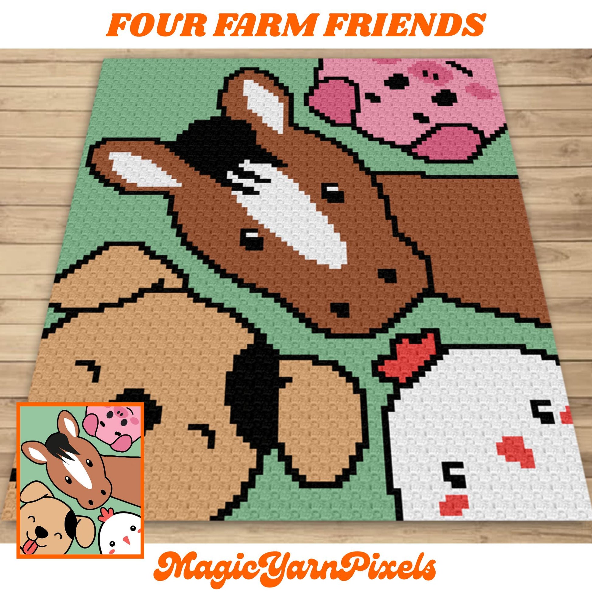"Four Farm Friends" is a DIGITAL DOWNLOAD (available in PDF format only), written in ENGLISH ONLY that can be used to crochet a blanket using various techniques, such as C2C, Mini C2C, SC, HDC, DC, Tapestry Crochet etc.