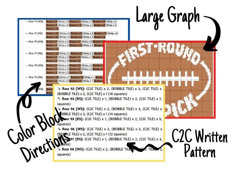 First Round Dad Pick Graph + Written Pattern For C2C & Tapestry Crochet - College Football C2C Graphgan - Crochet Baby Blanket - Baby Shower