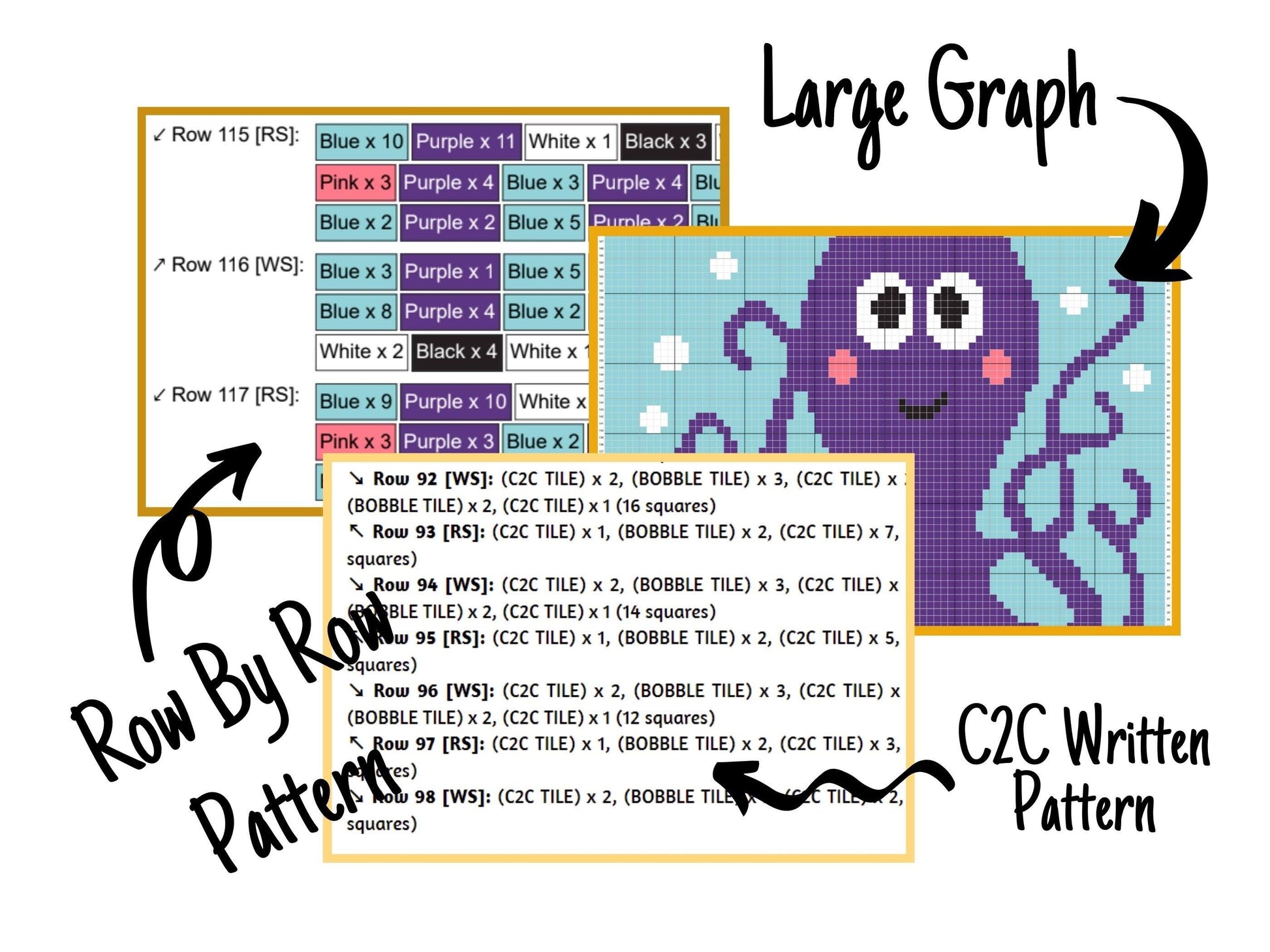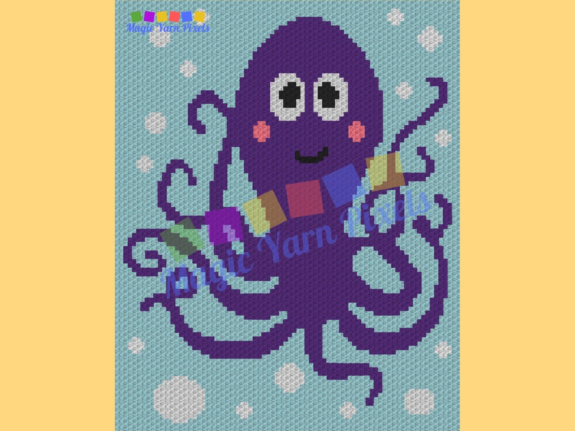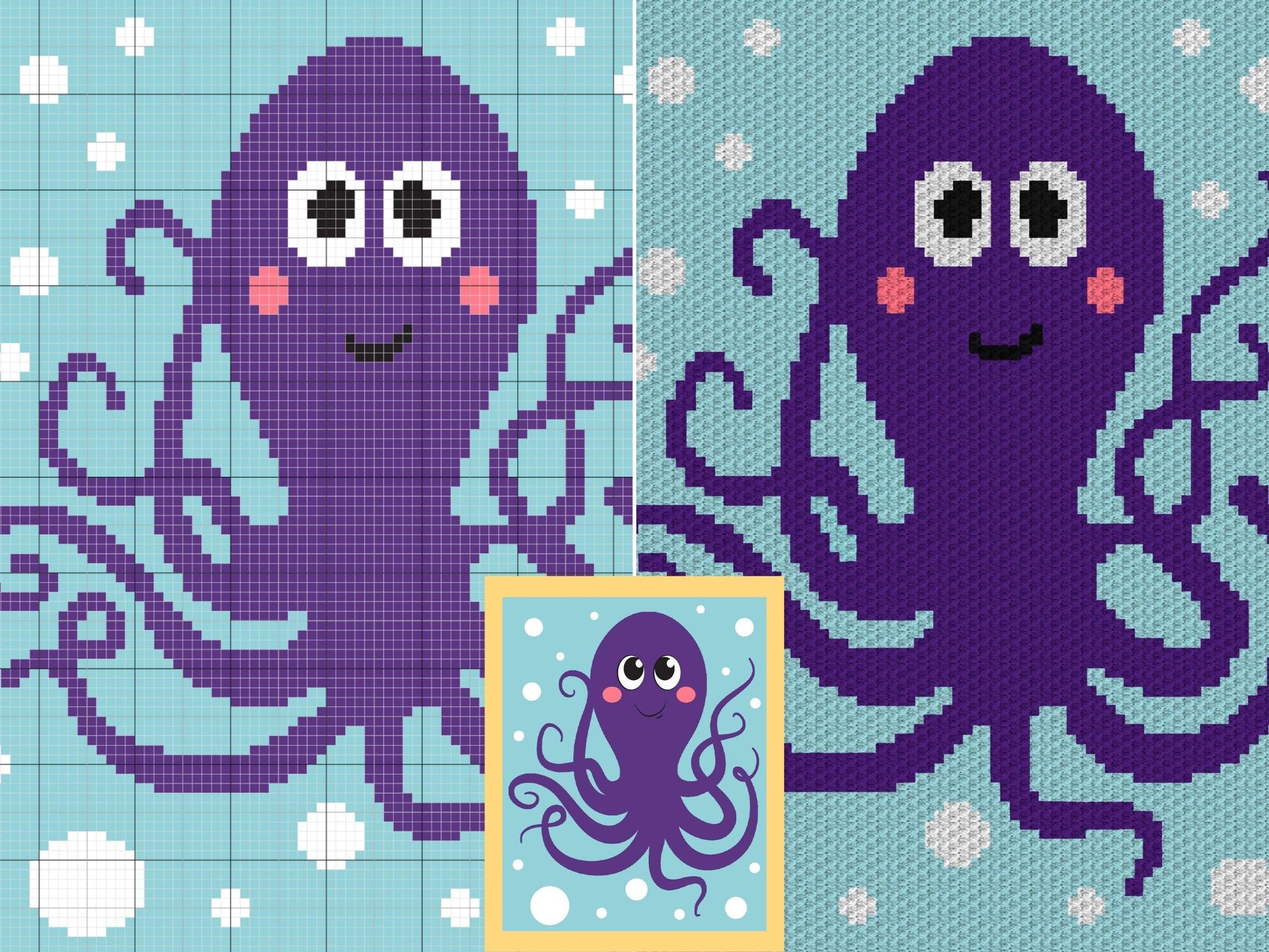 Funny Octopus Graph and Pattern C2C & Tapestry Crochet - Crochet Ocean Animals Graphgan Octopus Blanket - Crochet Octopus Blanket Baby Gifts