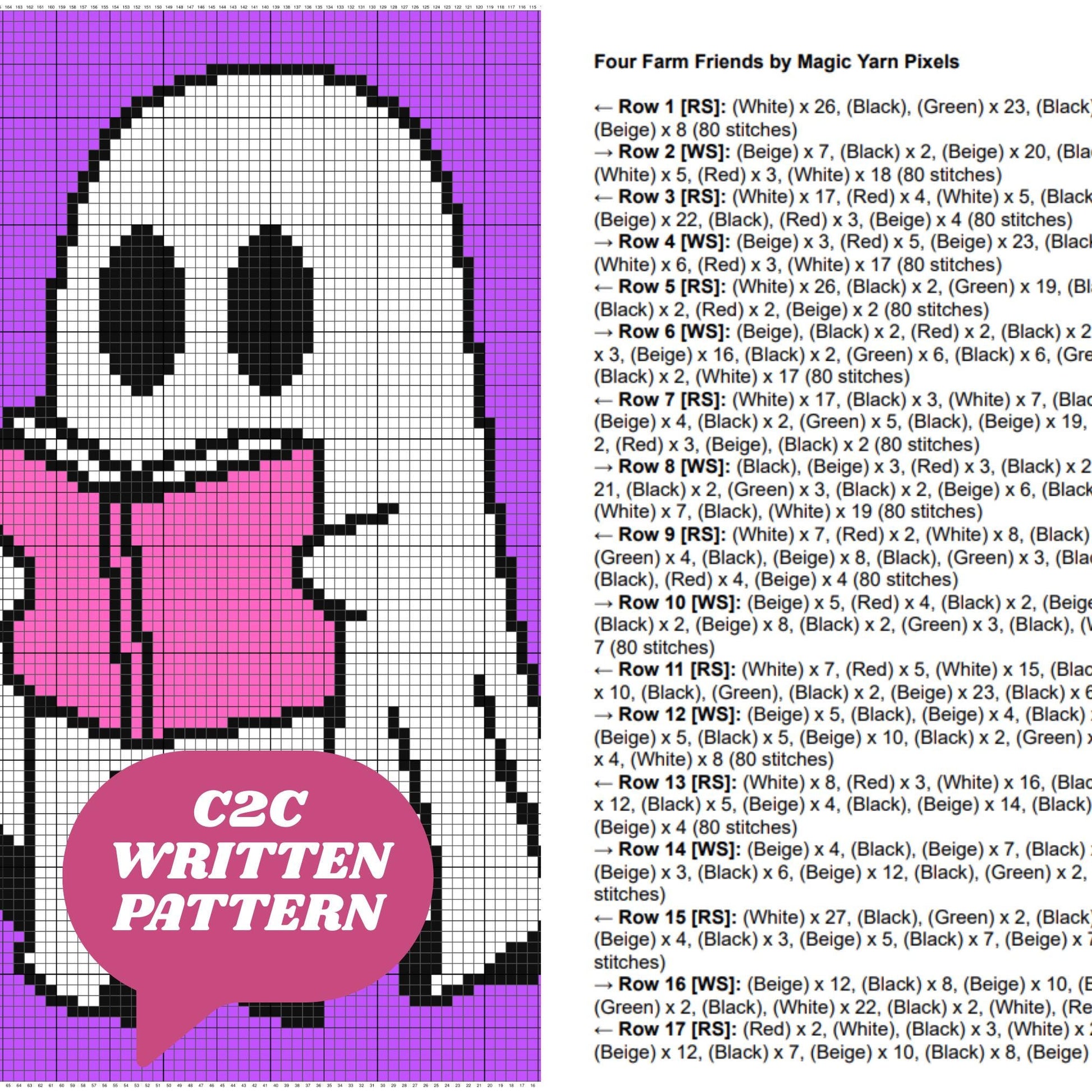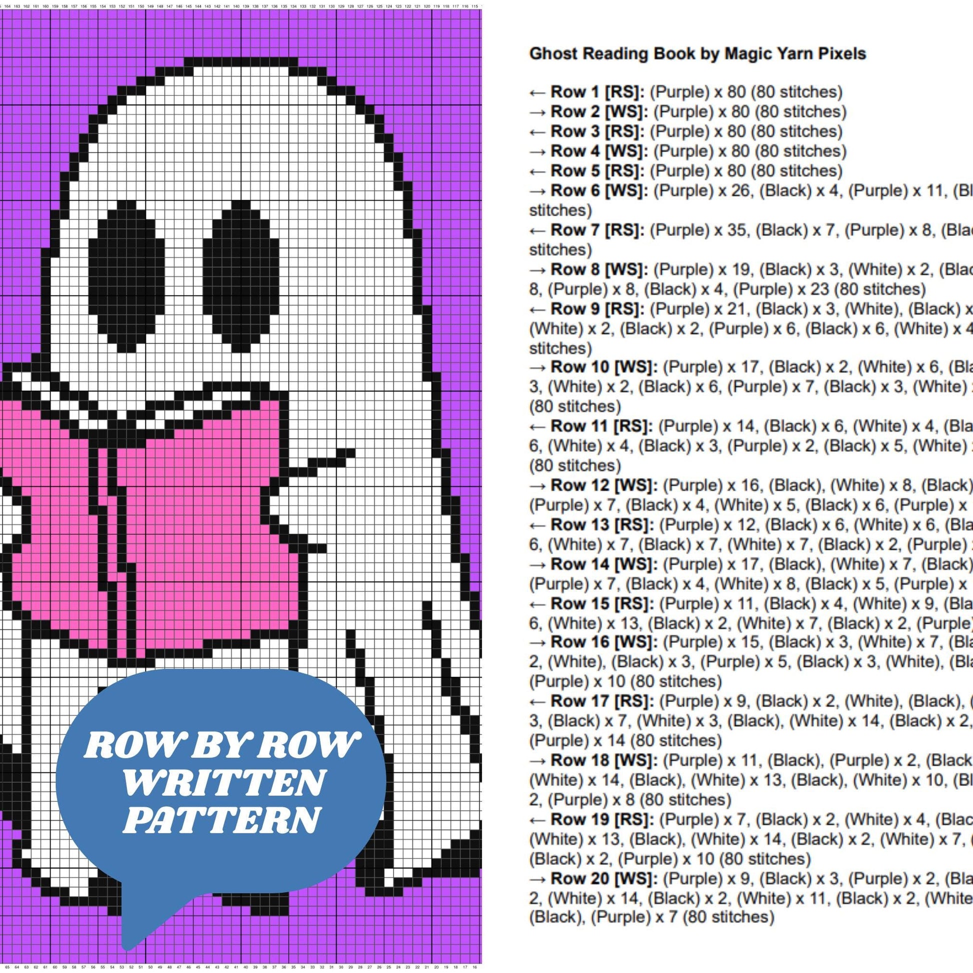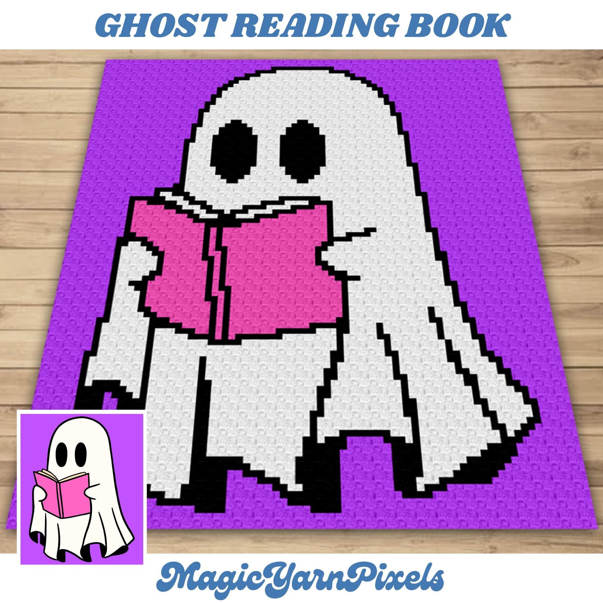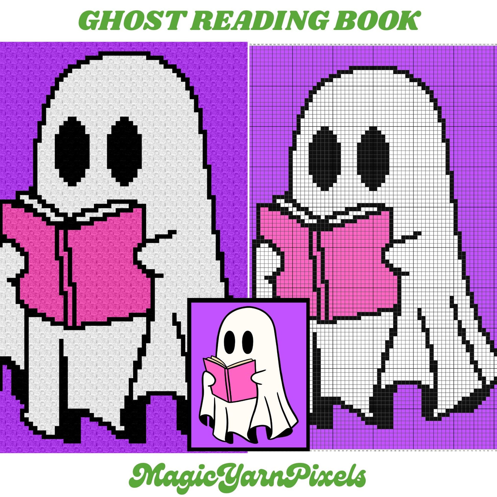 Ghost Reading Book Graph + Written Pattern For C2C & Tapestry Crochet | Crochet Halloween Pattern Book Lover Afghan School Blanket Baby Gift
