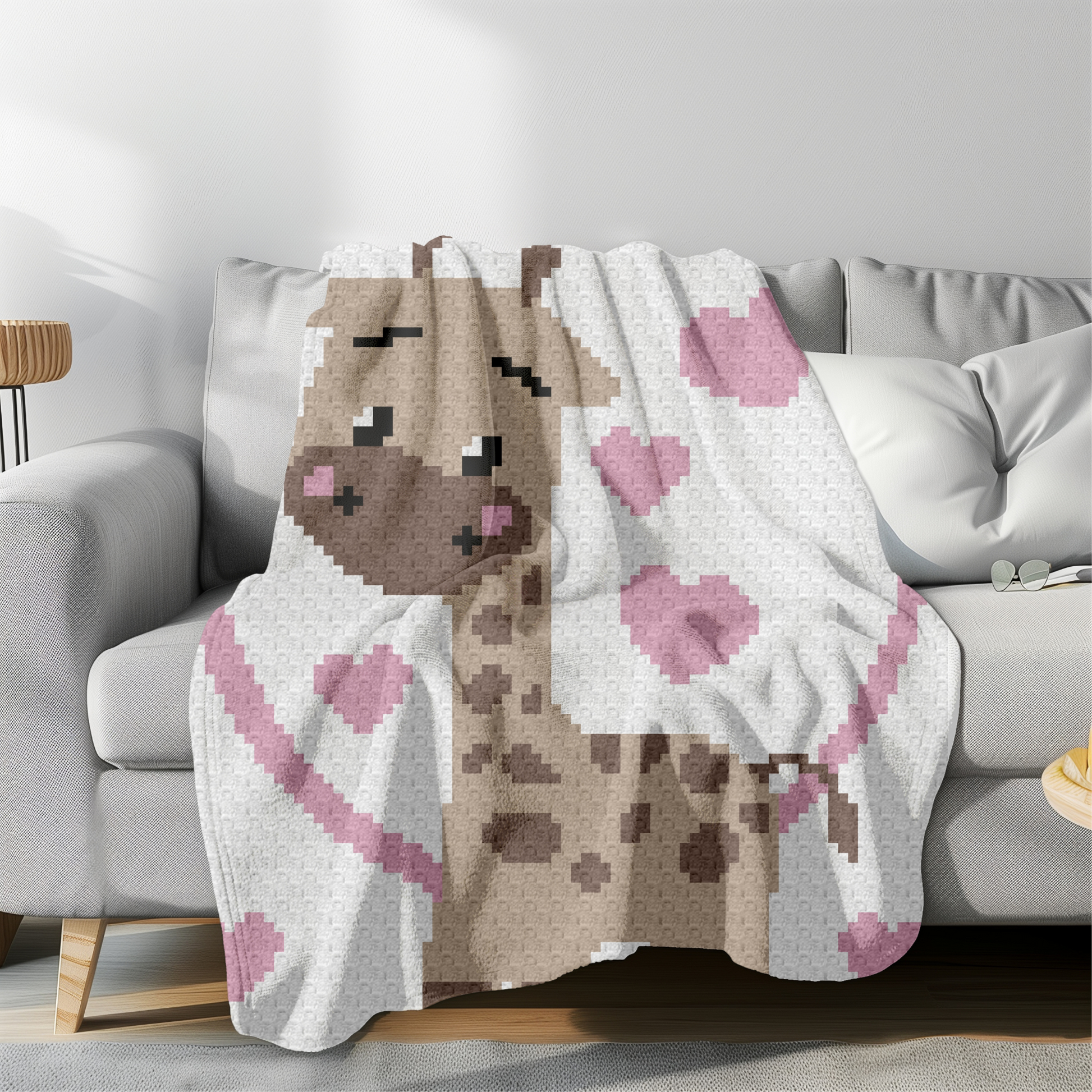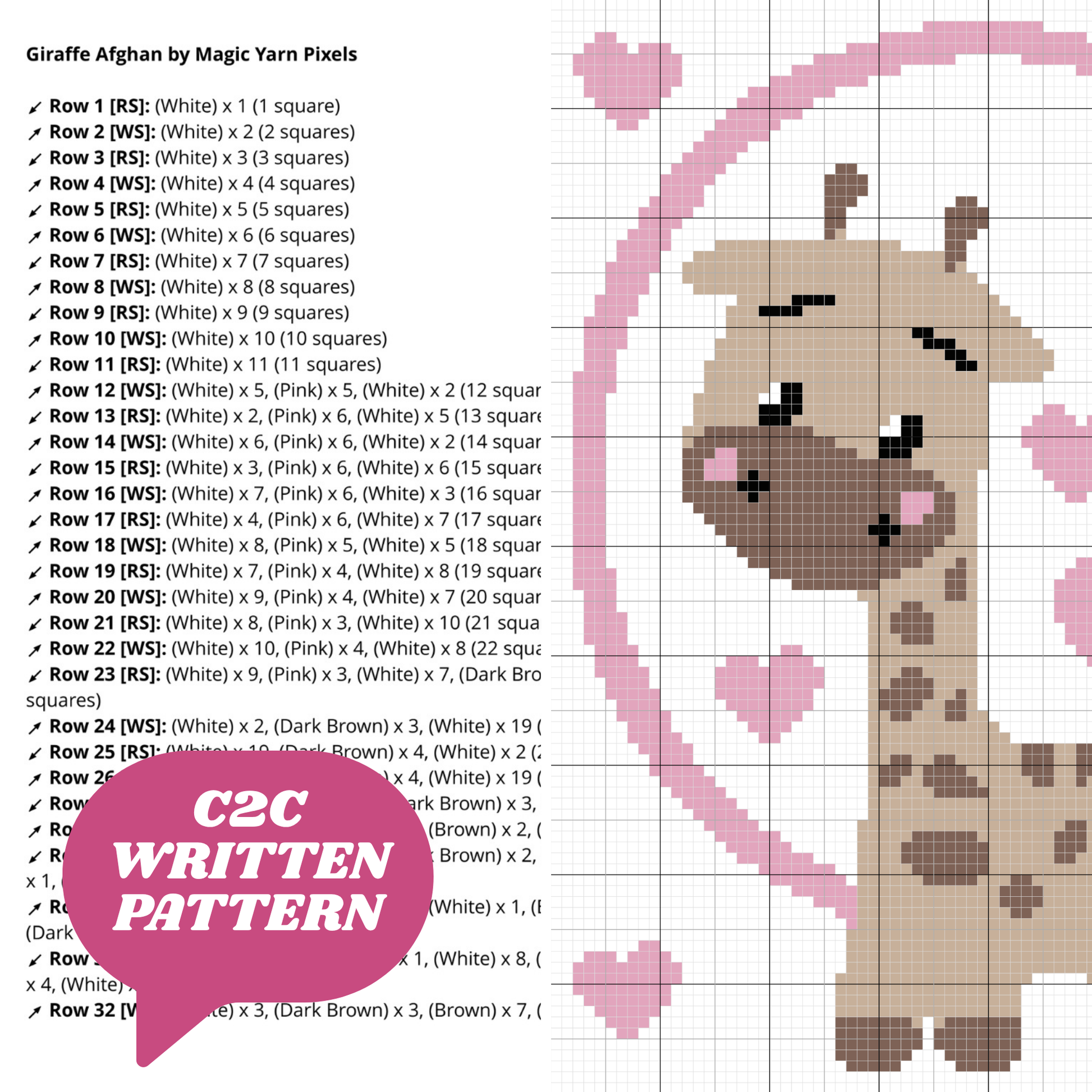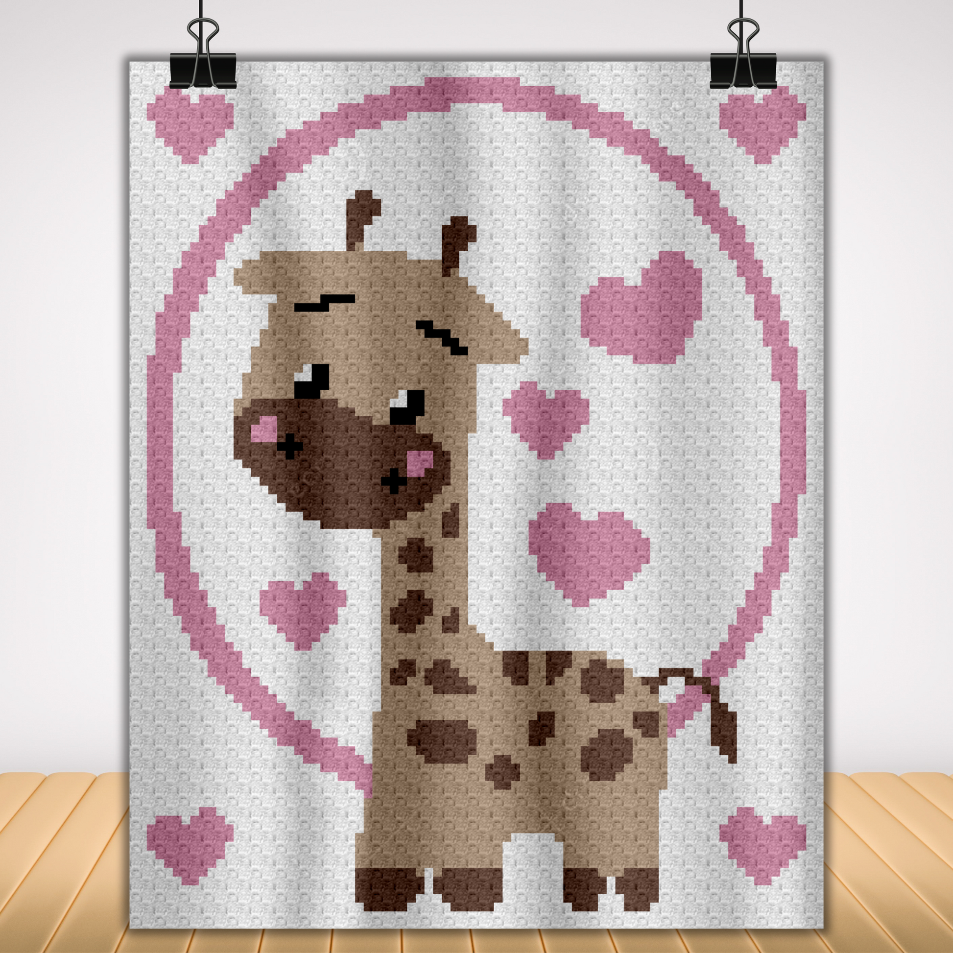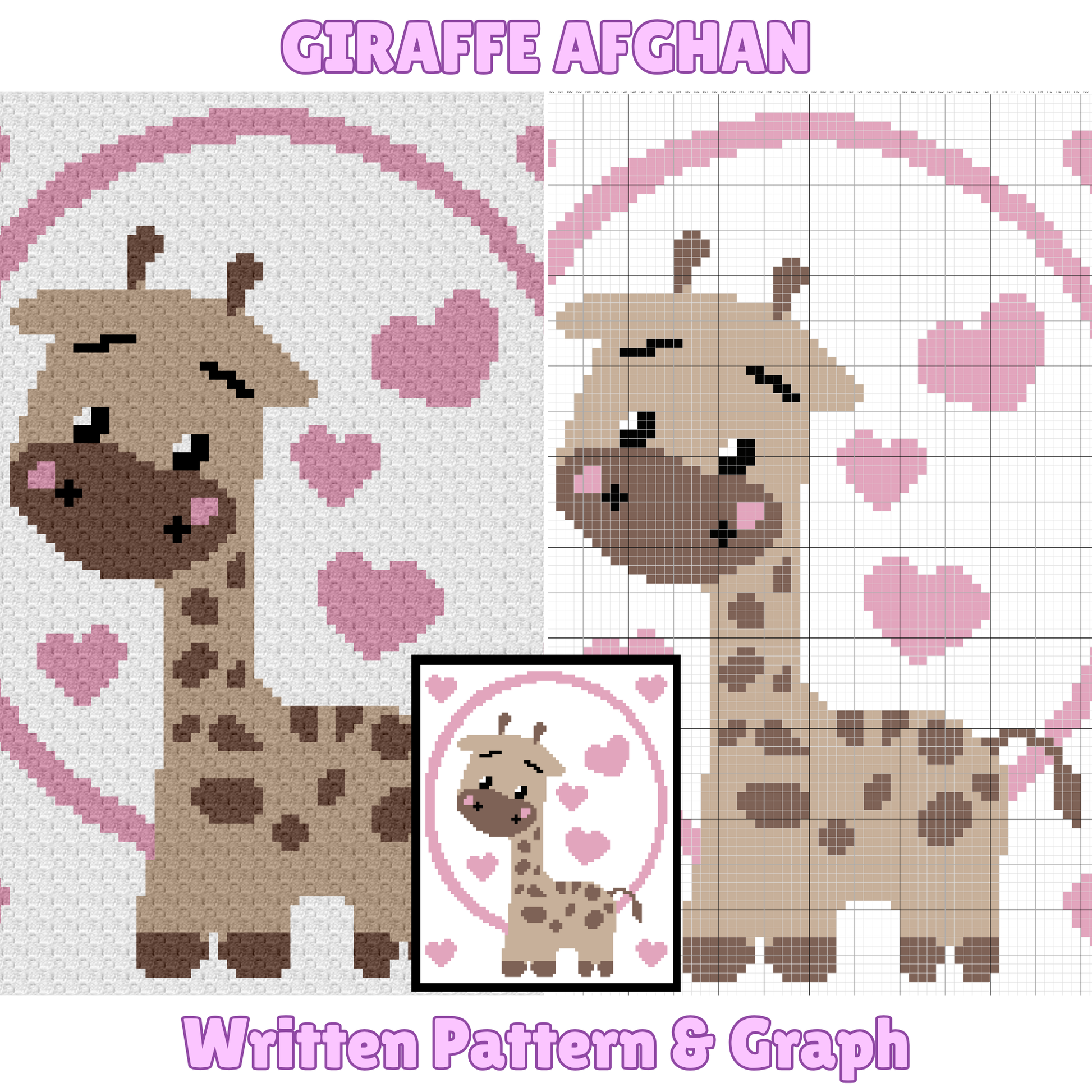 Giraffe With Hearts Graph + Written Pattern For C2C & Tapestry Crochet - Crochet Valentines Baby Blanket Pattern - C2C Jungle Themed Nursery